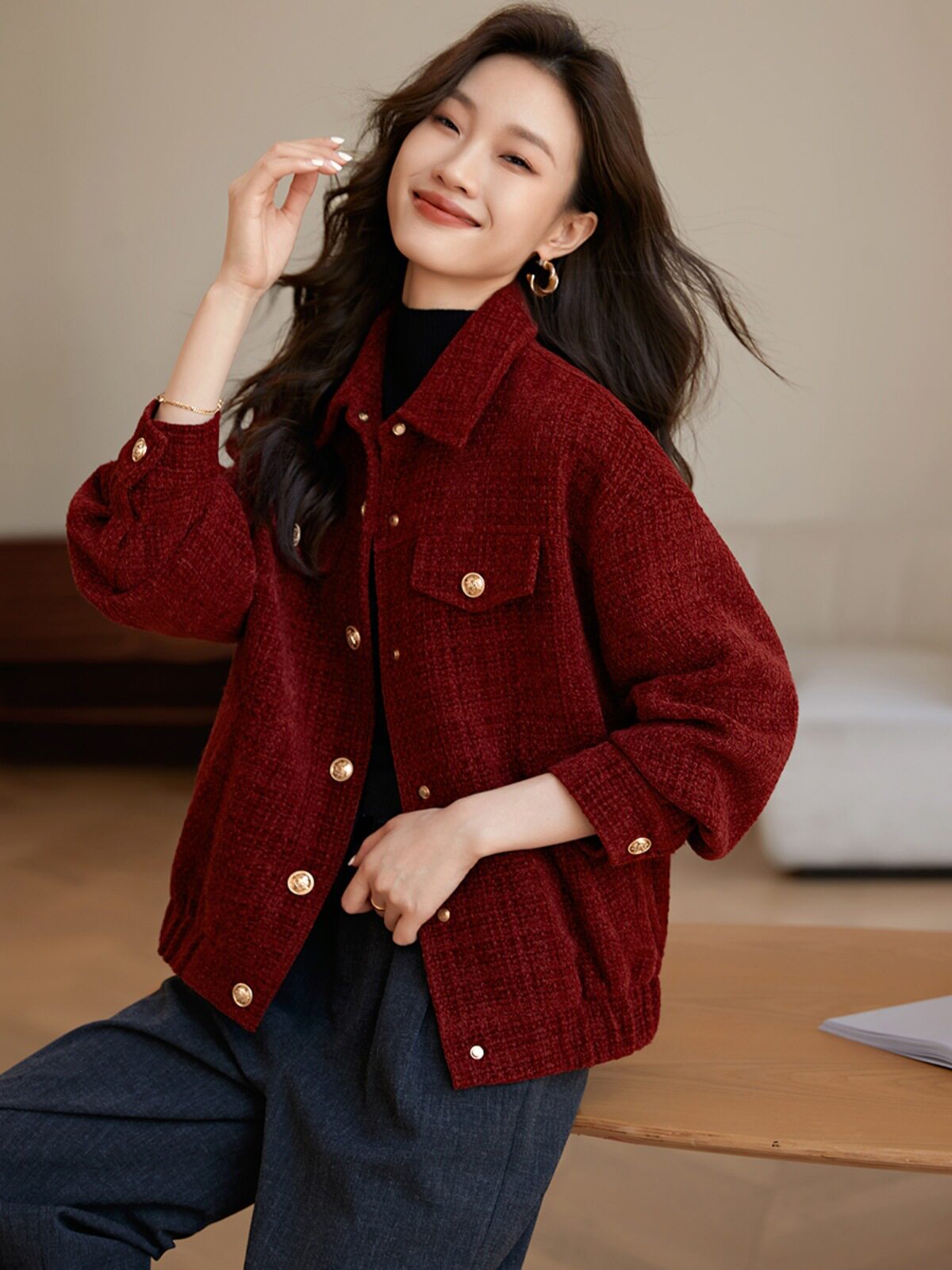 Áo khoác nữ dáng ngắn cổ bẻ là sản phẩm thời trang nữ được thiết kế theo phong cách tiểu thư thanh lịch. Áo khoác nữ này có dáng ngắn trẻ trung, cổ bẻ chỉn chu, mang đến vẻ ngoài thời trang. Áo được làm dày dặn, phù hợp với thời tiết se lạnh. Màu đỏ của áo khoác dáng ngắn này rất tôn da, dễ phối đồ. Đây là mẫu áo khoác nữ lý tưởng cho các cô nàng yêu thích phong cách thanh lịch, duyên dáng. | Tên sản phẩm: Áo Khoác Nữ Dáng Ngắn Cổ Bẻ Phong Cách Tiểu Thư Dày Dặn Màu Đỏ. | Mã sản phẩm: K2613 - Giá: 990000đ. | Mã nhà sản xuất: SHREIA - G03 | Danh mục sản phẩm: Áo khoác Nữ - Áo khoác dáng ngắn Nữ.Hình ảnh sản phẩm