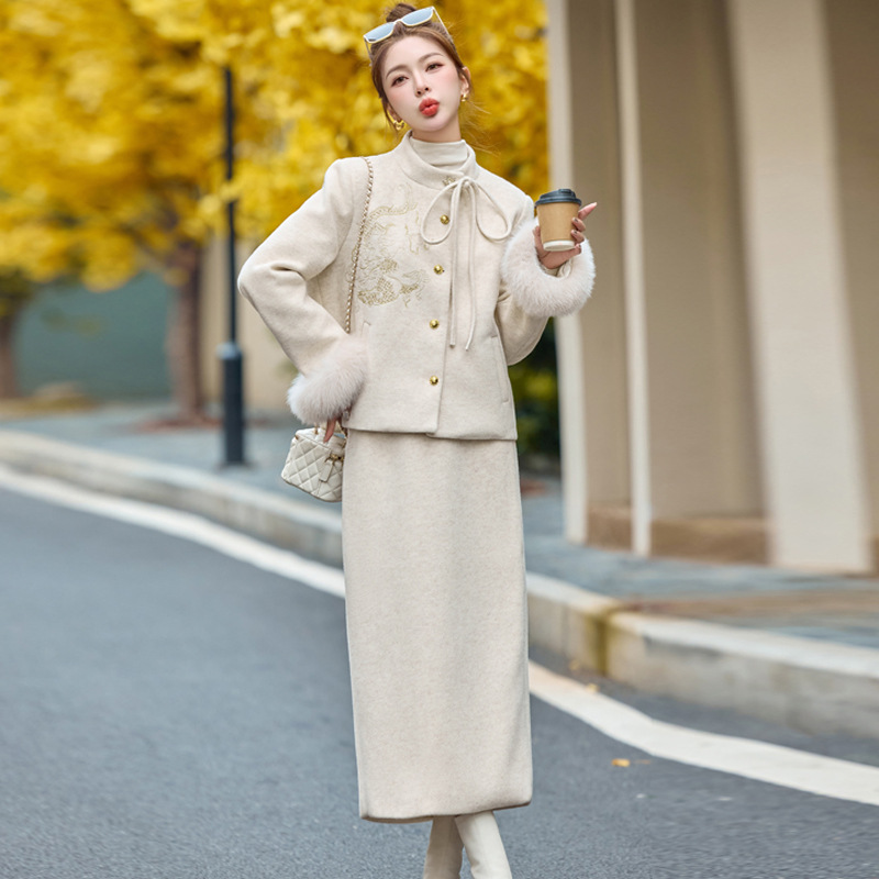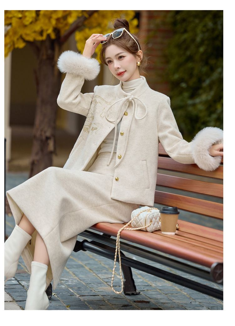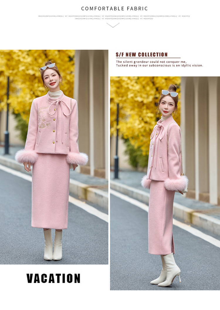 Bộ trang phục mùa đông này kết hợp áo khoác lông vũ với chân váy, tạo nên một bộ hoàn chỉnh. Áo được điểm xuyết lớp lông mềm mại quanh cổ, giữ ấm tốt. Kiểu dáng pha trộn nét truyền thống và hiện đại, phù hợp cho nhiều dịp. Có thể mặc nguyên bộ hoặc phối với trang phục khác. Chất liệu nhẹ, ấm áp, mang lại sự thoải mái và nữ tính cho người mặc trong tiết trời lạnh. | Tên sản phẩm: Đồ Bộ Nữ Hàng Mùa Xuân Thu Đông - Thời Trang Nữ | Mã sản phẩm: L1840 - Giá: 4.300.000đ | Mã nhà sản xuất: HADA-G06Hình ảnh sản phẩm