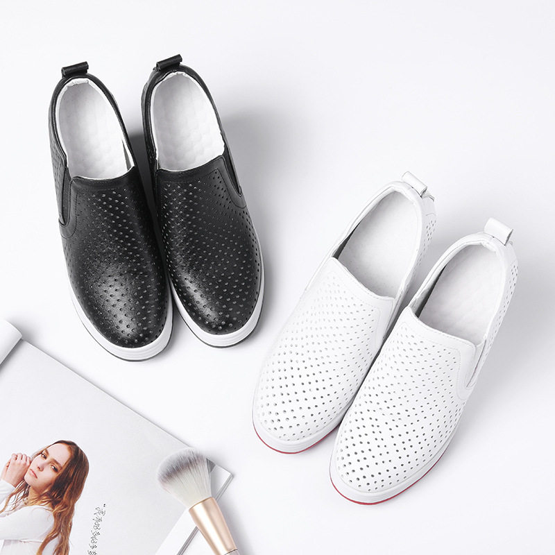Giày Lười Nữ Đế Xuồng là một sản phẩm thuộc danh mục Giày dép Nữ, kiểu dáng Giày Sneaker Nữ năng động. Thiết kế giày thể thao Nữ đế xuồng giúp tăng chiều cao lên đến 12cm, mang lại sự tự tin cho phái đẹp. Chất liệu thoáng khí với các lỗ nhỏ trên bề mặt, phù hợp cho mùa hè. Giày có hai màu trắng và đen cơ bản, dễ dàng phối đồ. Đây là lựa chọn tuyệt vời cho những cô nàng yêu thích sự thoải mái và phong cách trẻ trung trong dòng Giày sneaker Nữ. | Tên sản phẩm: Giày Lười Nữ Đế Xuồng Chiều Cao 12cm Thoáng Khí Màu Trắng, Đen. | Mã sản phẩm: B4119 - Giá: 1440000đ. | Mã nhà sản xuất: QIDNG - G04 | Danh mục sản phẩm: Giày Sneaker Nữ - Giày thể thao Nữ.Hình ảnh sản phẩm
