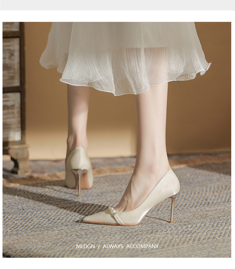 Giày Cao Gót Nữ Mũi Nhọn là một lựa chọn tuyệt vời thuộc dòng Giày dép Nữ, đặc biệt là Giày cao gót Nữ dành cho các dịp đặc biệt như cưới hỏi. Thiết kế mũi nhọn thanh lịch, kết hợp chi tiết đính hạt tinh tế, tạo nên vẻ đẹp sang trọng. Với chiều cao đế 8cm, đôi giày này không chỉ tôn dáng mà còn mang lại sự tự tin cho phái đẹp. Chất liệu bề mặt da bóng dễ dàng vệ sinh. Giày cưới Nữ cao gót này là phụ kiện không thể thiếu, giúp cô dâu thêm nổi bật trong ngày trọng đại. | Tên sản phẩm: Giày Cao Gót Nữ Mũi Nhọn Đính Hạt Chiều Cao Đế 8cm Màu Trắng. | Mã sản phẩm: A1084 - Giá: 800000đ. | Mã nhà sản xuất: HUDS - G02 | Danh mục sản phẩm: Giày cao gót Nữ - Giày cưới Nữ.Hình ảnh sản phẩm