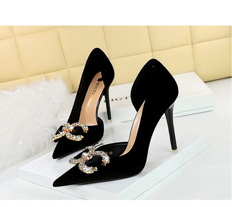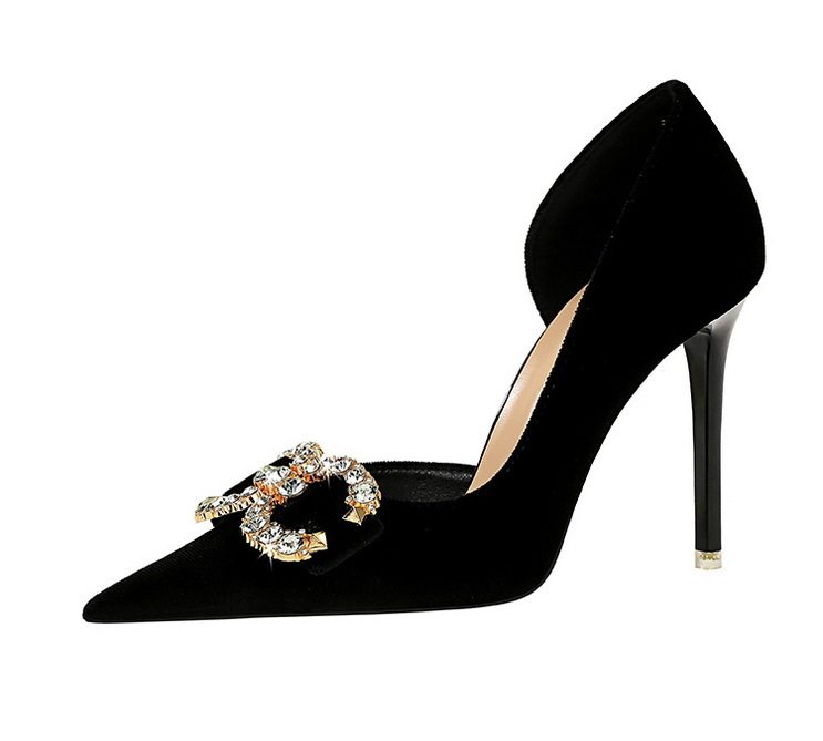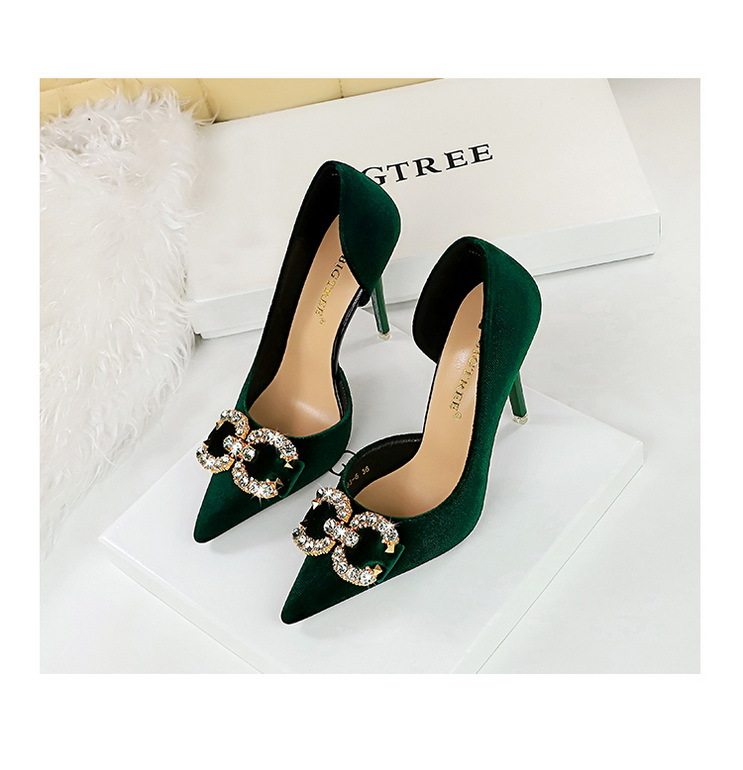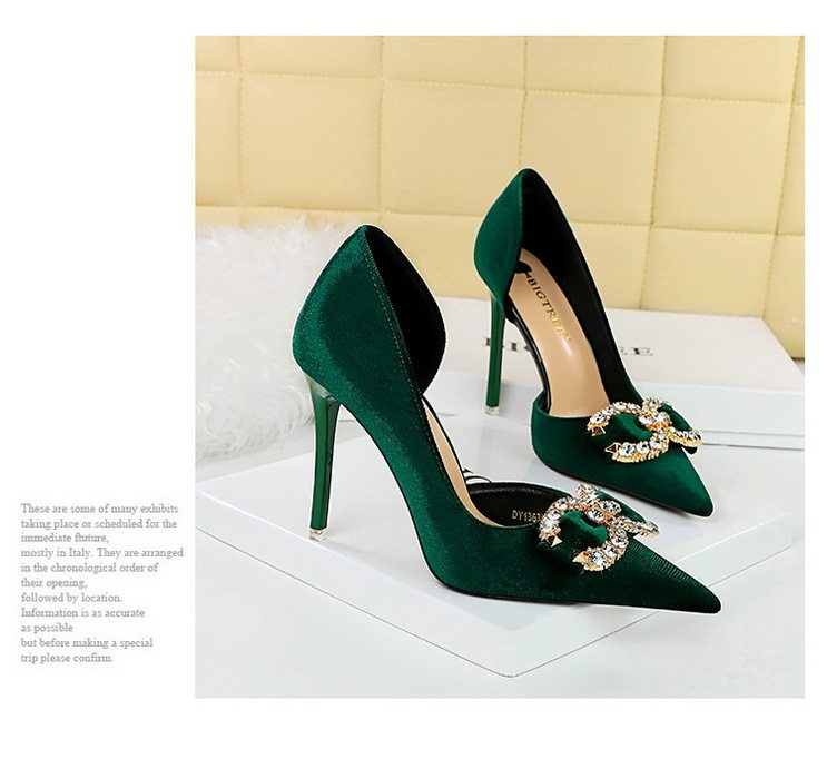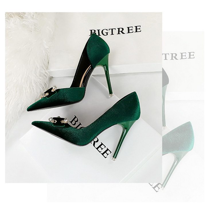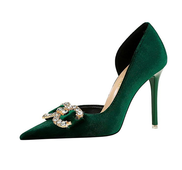 Giày cao gót nữ nỉ mũi nhọn là sản phẩm thuộc danh mục Giày dép Nữ, kiểu dáng giày cao gót Nữ thời trang. Sản phẩm được làm từ chất liệu nỉ mềm mại, thiết kế mũi nhọn thanh lịch, hở bên hông quyến rũ. Giày mũi nhọn Nữ này có chiều cao đế khoảng 7cm, giúp tôn dáng hiệu quả. Điểm nhấn là chi tiết đính đá lấp lánh hình nơ ở mũi giày, tạo vẻ sang trọng. Sản phẩm có các màu Đen, Hồng, Xanh Lá, Hồng Phấn. Đây là lựa chọn tuyệt vời trong phân khúc giày cao gót nữ cho các quý cô yêu thích phong cách thời trang. | Tên sản phẩm: Giày Cao Gót Nữ Nỉ Mũi Nhọn Hở Bên Hông Chiều Cao Đế Khoảng 7cm Đính Đá Màu Đen, Hồng, Xanh Lá, Hồng Phấn. | Mã sản phẩm: B0933 - Giá: 700000đ. | Mã nhà sản xuất: PITYIN - G02 | Danh mục sản phẩm: Giày cao gót Nữ - Giày mũi nhọn Nữ.Hình ảnh sản phẩm