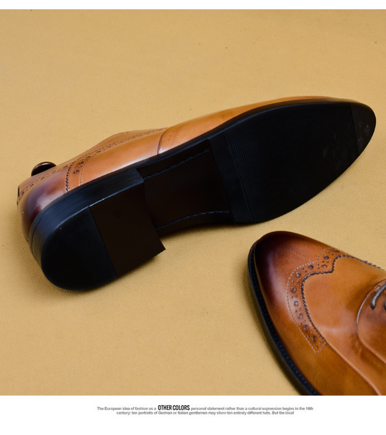 Giày da thật dành cho nam, kiểu dáng mũi nhọn phù hợp khi mặc cùng bộ đồ chỉnh tề. Trên mặt giày có các đường cắt trang trí tạo nên nét đẹp cổ điển. Đế giày được làm chắc chắn, ôm sát chân và tạo cảm giác thoải mái khi di chuyển. Sản phẩm dễ dàng phối cùng quần âu, vest trong các dịp làm việc hoặc sự kiện. Sử dụng khăn mềm vệ sinh bề mặt sau khi dùng để giữ giày luôn sáng bóng. | Tên sản phẩm: Giày Da Nam Chất Liệu Da Bò Mũi Nhọn Họa Tiết Hoa - Giày Dép Nam | Mã sản phẩm: L0386 - Giá: 2.020.000đ | Mã nhà sản xuất: SHERAW-G05Hình ảnh sản phẩm