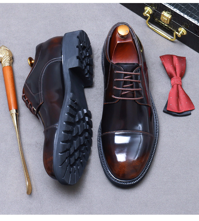 Giày Tây Buộc Dây Nam Da Bò là một sản phẩm thuộc dòng Giày dép Nam, kiểu dáng Giày tây Nam. Chất liệu da bò được sử dụng giúp sản phẩm bền đẹp và sang trọng. Thiết kế mũi tròn, buộc dây cổ điển tạo nên phong cách lịch lãm. Phần đế giày cao khoảng 3cm, chất liệu cao su có các rãnh giúp tăng độ bám. Giày da Nam này phù hợp với nhiều dịp, từ công sở đến các sự kiện trang trọng. Màu sắc nâu và đen dễ dàng phối đồ. Đây là lựa chọn tuyệt vời cho các quý ông yêu thích sự lịch lãm và thoải mái. | Tên sản phẩm: Giày Tây Buộc Dây Nam Da Bò Chiều Cao Đế Khoảng 3cm Màu Nâu, Đen. | Mã sản phẩm: B2941 - Giá: 2260000đ. | Mã nhà sản xuất: ASTYCH - G05 | Danh mục sản phẩm: Giày tây Nam - Giày da Nam.Hình ảnh sản phẩm