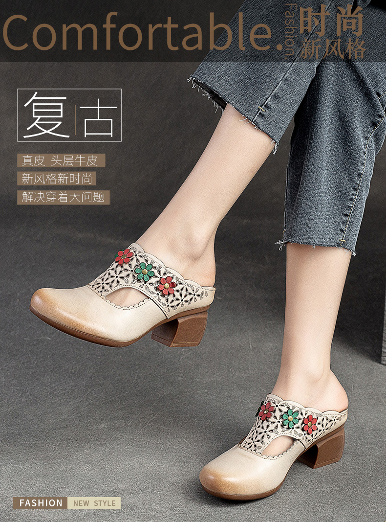 Đôi dép qu hờ mới dành cho mùa hè, mang phong cách dân tộc nhẹ nhàng với họa tiết hoa nhỏ xinh xắn. Thiết kế có mũi tròn ôm chân, phần đế cao vừa phải tôn dáng. Kiểu dáng cổ điển nhưng rất dễ phối đồ, phù hợp cho nhiều dịp khác nhau. Bạn có thể mang chúng khi dạo phố, gặp gỡ bạn bè hoặc trong các sinh hoạt thường ngày để tạo điểm nhấn nữ tính. | Tên sản phẩm: Giày Dép Lê Nữ Mũi Tròn Họa Tiết Hoa Hàng Mùa Hè Phục Cổ Cổ Điển - Giày Dép Nữ | Mã sản phẩm: B7333 - Giá: 1.380.000đ | Mã nhà sản xuất: SHDU-G04Hình ảnh sản phẩm