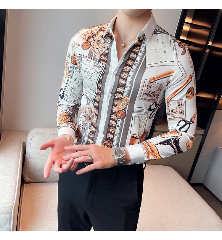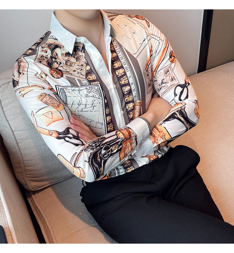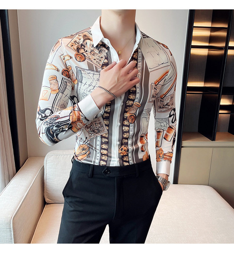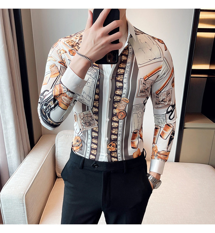 Áo Sơ Mi Nam Tay Dài In Họa Tiết là sản phẩm thời trang nam độc đáo. Áo thuộc danh mục áo sơ mi nam tay dài, mang phong cách Âu Mỹ kết hợp nét Hàn Quốc hiện đại. Thiết kế in họa tiết lạ mắt, tạo điểm nhấn ấn tượng cho người mặc. Áo sơ mi nam này phù hợp với nhiều hoàn cảnh khác nhau, từ đi làm đến đi chơi. Chất liệu vải mềm mại, thoáng mát, mang lại cảm giác thoải mái khi mặc. Với kiểu dáng thời trang và chất lượng vượt trội, đây là lựa chọn hoàn hảo cho các chàng trai yêu thích phong cách cá tính. | Tên sản phẩm: Áo Sơ Mi Nam Tay Dài In Họa Tiết Phong Cách Âu Mỹ Hàn Quốc. | Mã sản phẩm: A0181 - Giá: 610000đ. | Mã nhà sản xuất: HADRK - G02 | Danh mục sản phẩm: Áo sơ mi Nam - Áo sơ mi dài tay Nam.Hình ảnh sản phẩm