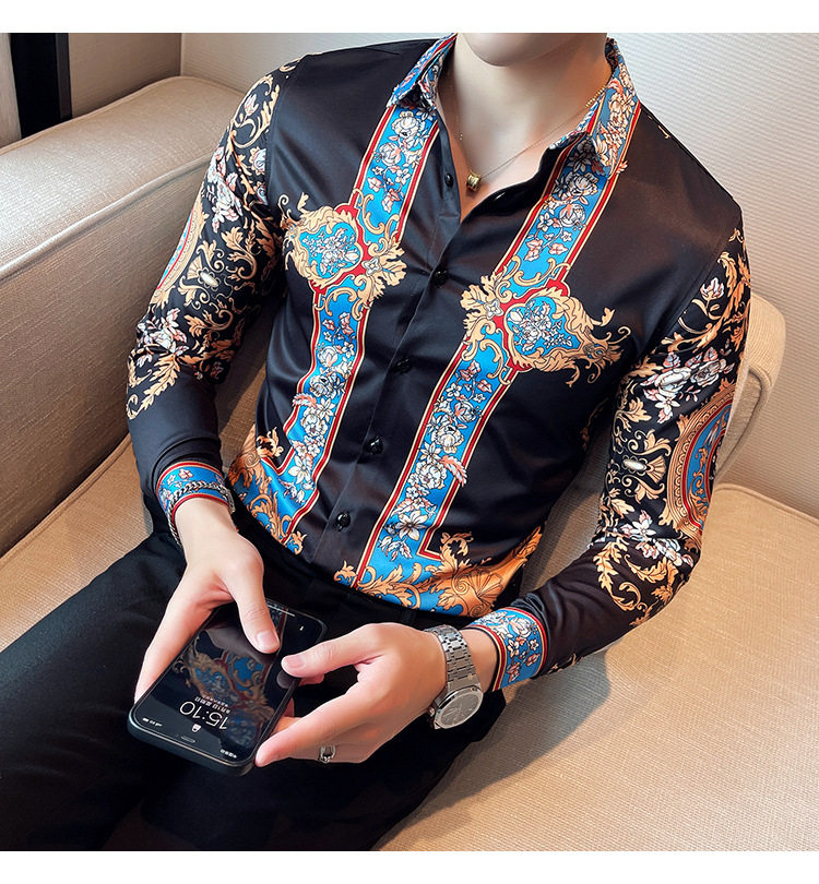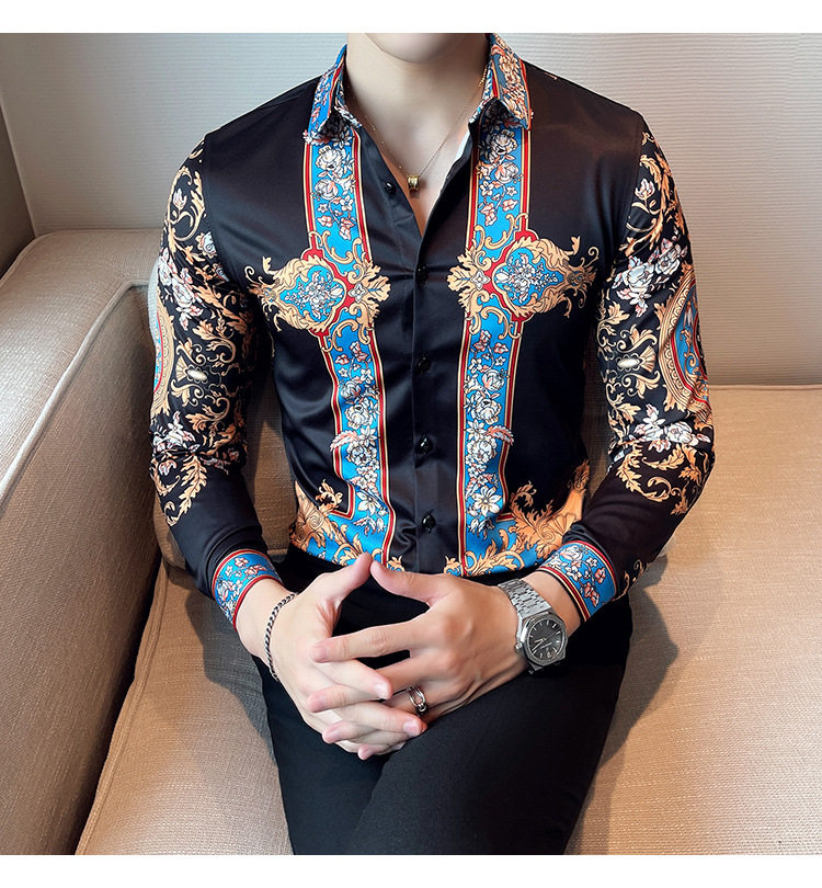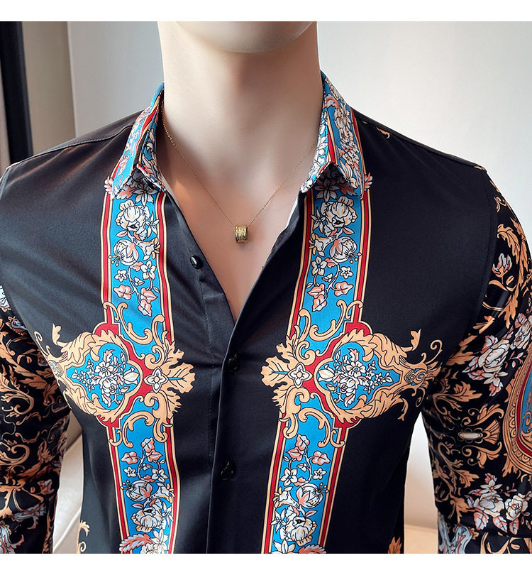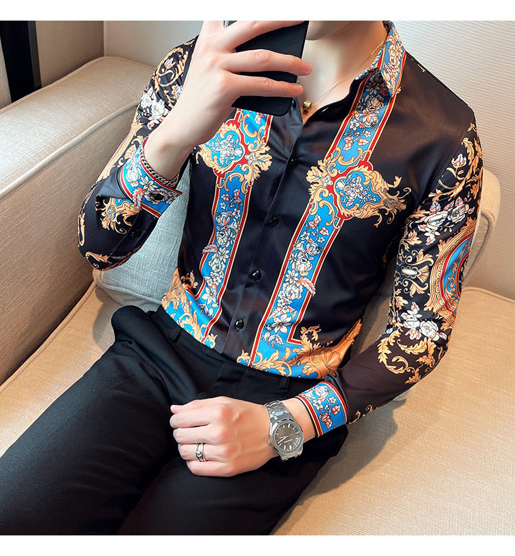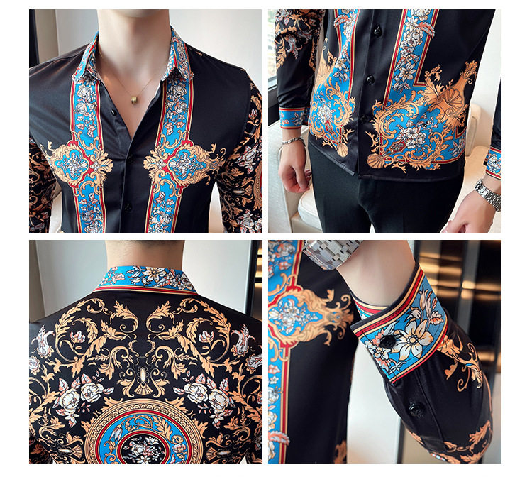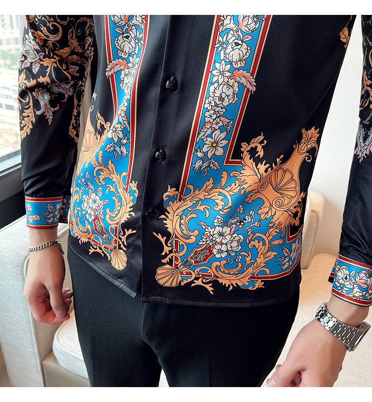 Áo sơ mi nam dài tay in họa tiết là sản phẩm thuộc danh mục thời trang nam, kiểu dáng áo sơ mi nam. Áo sơ mi dài tay nam này mang phong cách Âu Mỹ và Hàn Quốc với thiết kế in họa tiết độc đáo, tạo nên vẻ ngoài ấn tượng và thu hút. Màu sắc chủ đạo là đen kết hợp các chi tiết xanh dương nổi bật, phù hợp với nhiều phong cách khác nhau. Chiếc áo sơ mi nam này là lựa chọn hoàn hảo cho những ai muốn thể hiện cá tính và gu thời trang riêng. | Tên sản phẩm: Áo Sơ Mi Nam Dài Tay In Họa Tiết Phong Cách Âu Mỹ Hàn Quốc Màu Đen, Xanh Dương. | Mã sản phẩm: A0195 - Giá: 610000đ. | Mã nhà sản xuất: HADRK - G02 | Danh mục sản phẩm: Áo sơ mi Nam - Áo sơ mi dài tay Nam.Hình ảnh sản phẩm