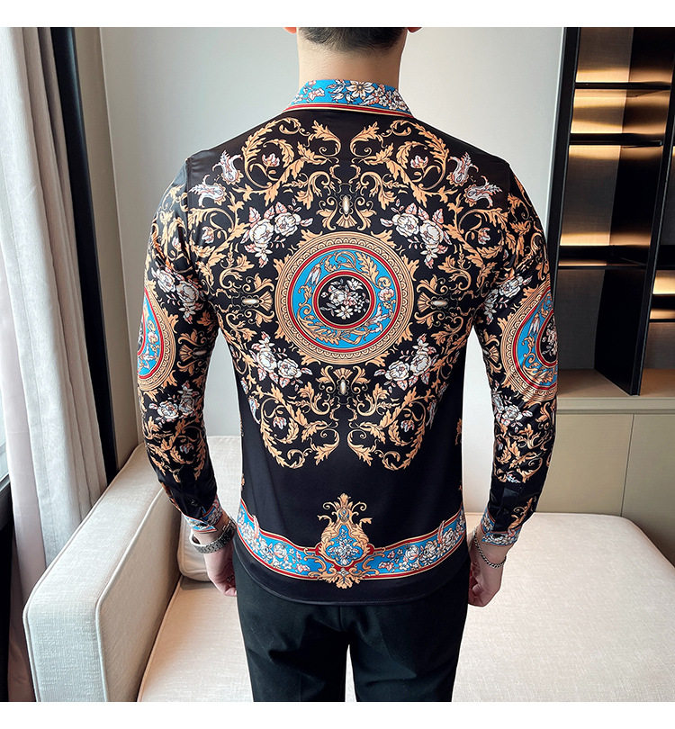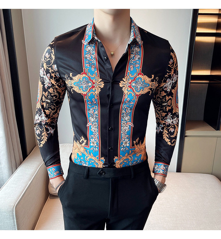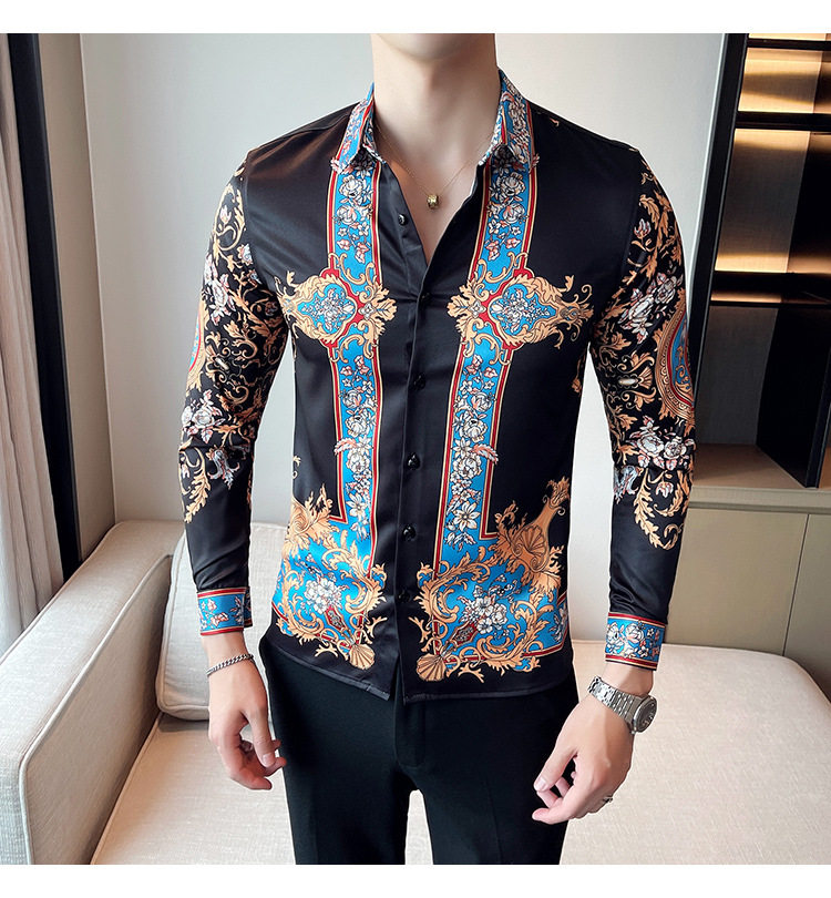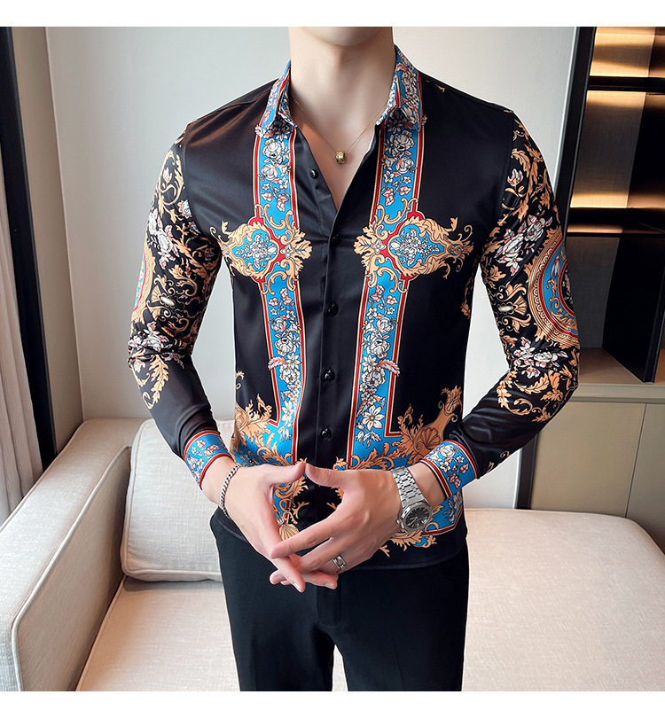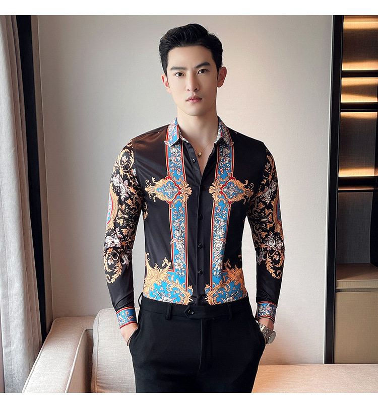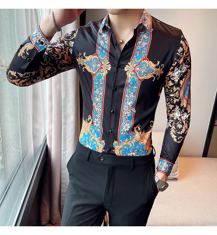 Áo sơ mi nam dài tay in họa tiết là sản phẩm thuộc danh mục thời trang nam, kiểu dáng áo sơ mi nam. Áo sơ mi dài tay nam này mang phong cách Âu Mỹ và Hàn Quốc với thiết kế in họa tiết độc đáo, tạo nên vẻ ngoài ấn tượng và thu hút. Màu sắc chủ đạo là đen kết hợp các chi tiết xanh dương nổi bật, phù hợp với nhiều phong cách khác nhau. Chiếc áo sơ mi nam này là lựa chọn hoàn hảo cho những ai muốn thể hiện cá tính và gu thời trang riêng. | Tên sản phẩm: Áo Sơ Mi Nam Dài Tay In Họa Tiết Phong Cách Âu Mỹ Hàn Quốc Màu Đen, Xanh Dương. | Mã sản phẩm: A0195 - Giá: 610000đ. | Mã nhà sản xuất: HADRK - G02 | Danh mục sản phẩm: Áo sơ mi Nam - Áo sơ mi dài tay Nam.Hình ảnh sản phẩm