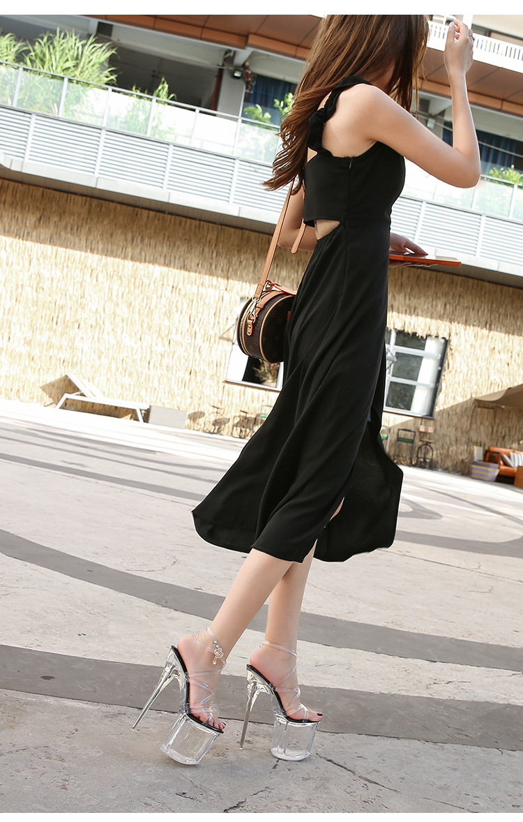 Sandal cao gót nữ quai trong suốt là sản phẩm thuộc danh mục Giày dép Nữ, kiểu dáng Sandal Nữ thời trang. Thiết kế sandal cao gót với phần quai trong suốt tạo vẻ ngoài thanh lịch, hiện đại. Đế xuồng cao khoảng 10cm giúp tôn dáng, phù hợp cho các buổi tiệc. Sandal cao gót này có hai màu đen và trắng cơ bản, dễ dàng phối đồ. Chất liệu trong suốt độc đáo, mang đến sự nổi bật cho đôi chân. Lựa chọn hoàn hảo cho phái đẹp yêu thích phong cách quyến rũ và tự tin trong các sự kiện. | Tên sản phẩm: Sandal Cao Gót Nữ Quai Trong Suốt Đế Xuồng 10cm Dự Tiệc Màu Đen, Trắng. | Mã sản phẩm: A4150 - Giá: 930000đ. | Mã nhà sản xuất: MATYAL - G03 | Danh mục sản phẩm: Sandal Nữ - Sandal cao gót.Hình ảnh sản phẩm