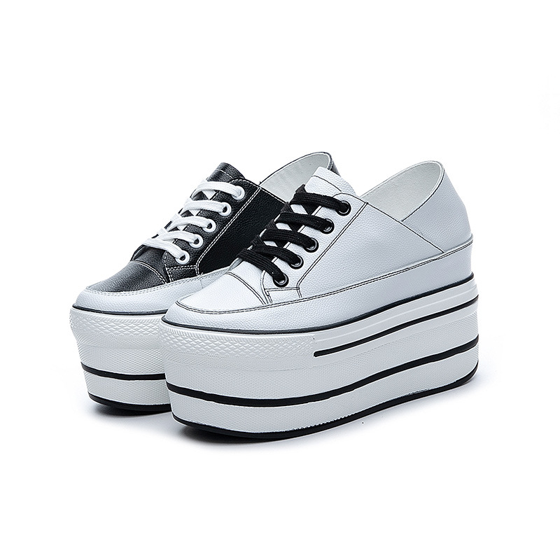 Giày Platform Nữ Da Thật là mẫu giày sneaker nữ đang được yêu thích. Sản phẩm thuộc danh mục Giày dép Nữ, kiểu dáng giày thể thao Nữ năng động, cá tính. Giày được làm từ chất liệu da thật cao cấp, bền đẹp. Phần đế cao 7.5cm giúp tăng chiều cao đáng kể. Mẫu giày sneaker Nữ này có hai màu đen và trắng cơ bản, dễ phối đồ. Đế giày làm bằng polyurethane, êm ái và có độ bám tốt, mang lại cảm giác thoải mái khi di chuyển. Đây là lựa chọn tuyệt vời cho các bạn nữ thích phong cách trẻ trung, hiện đại. | Tên sản phẩm: Giày Platform Nữ Da Thật Chiều Cao Đế 7.5cm Màu Đen, Trắng. | Mã sản phẩm: B0623 - Giá: 1030000đ. | Mã nhà sản xuất: WERYAN - G03 | Danh mục sản phẩm: Giày Sneaker Nữ - Giày thể thao Nữ.Hình ảnh sản phẩm