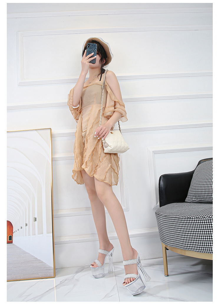 Dép quai ngang nữ gót trụ siêu cao trong suốt là sản phẩm thuộc danh mục Giày dép Nữ, kiểu dáng Dép Nữ thời trang. Thiết kế gót trụ trong suốt siêu cao 17cm tôn dáng. Phần quai đính đá và ngọc trai lấp lánh, tạo điểm nhấn nổi bật. Đế dép chắc chắn, chống trơn trượt. Mẫu dép cao gót Nữ này phù hợp với những cô nàng yêu thích phong cách quyến rũ, sang trọng. Dép quai ngang nữ gót trụ siêu cao là lựa chọn hoàn hảo để bạn tự tin khoe cá tính. | Tên sản phẩm: Dép Quai Ngang Nữ Gót Trụ Siêu Cao Trong Suốt Chiều Cao Đế 17cm Đính Đá, Ngọc Trai. | Mã sản phẩm: B1032 - Giá: 900000đ. | Mã nhà sản xuất: JIENNG - G03 | Danh mục sản phẩm: Dép Nữ - Dép cao gót Nữ.Hình ảnh sản phẩm