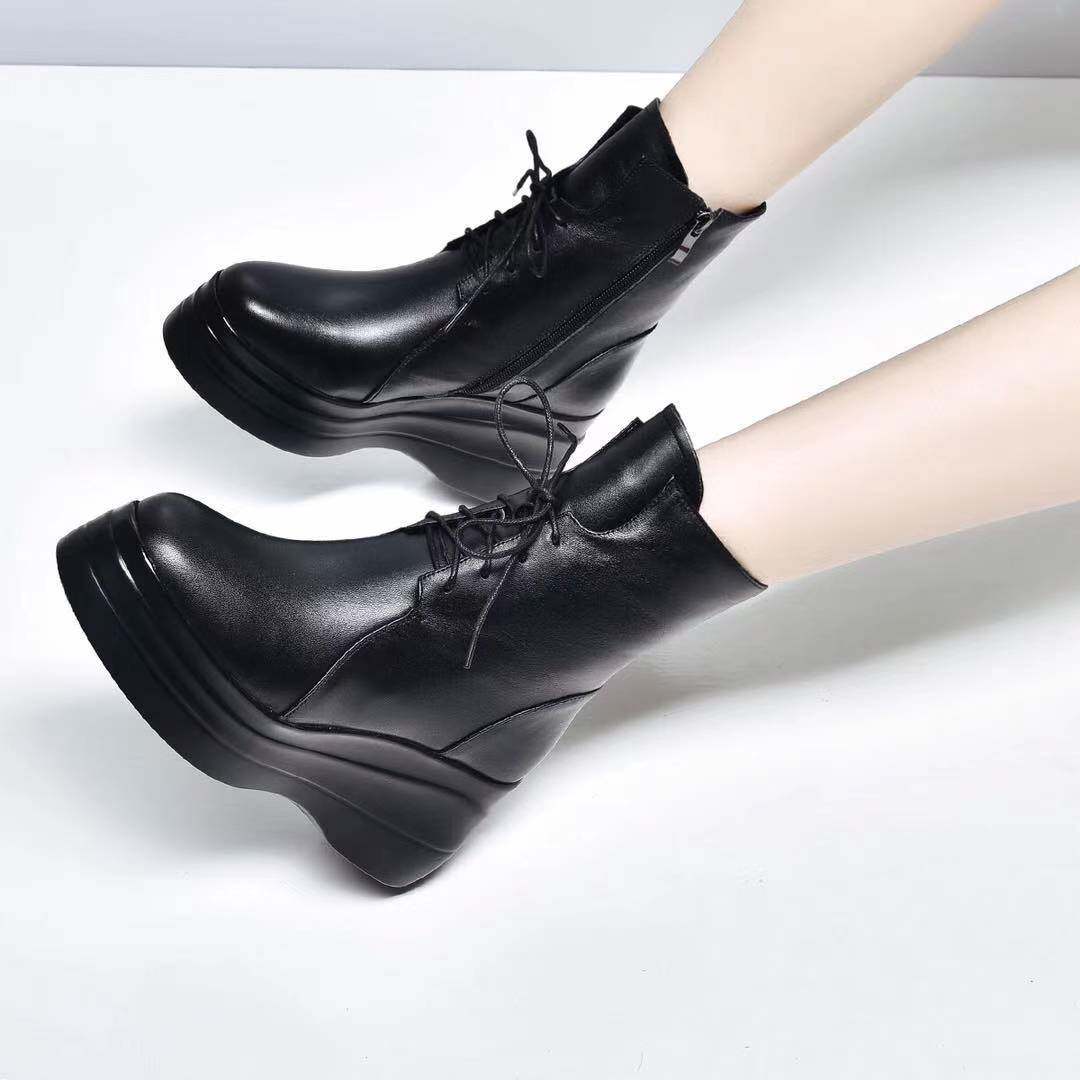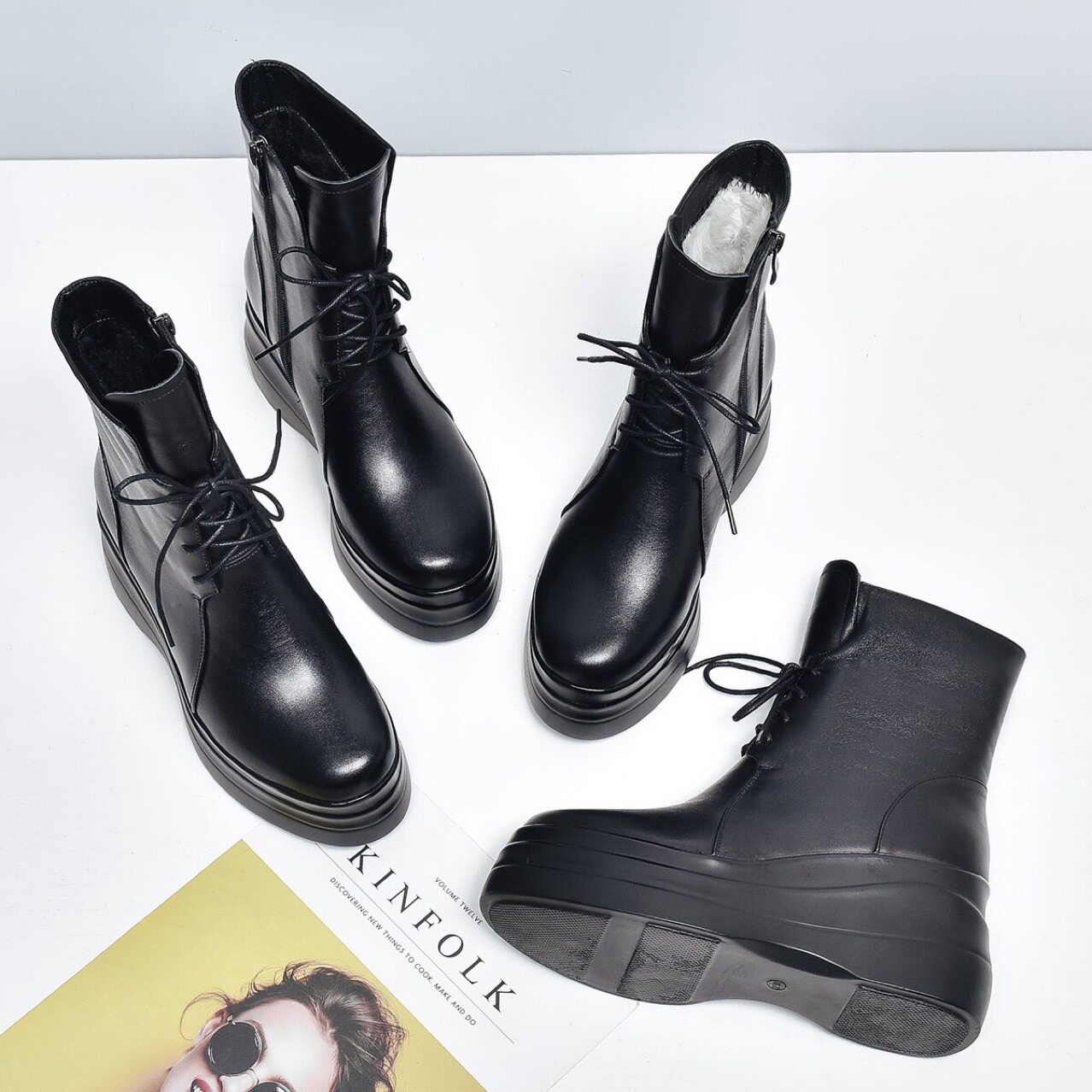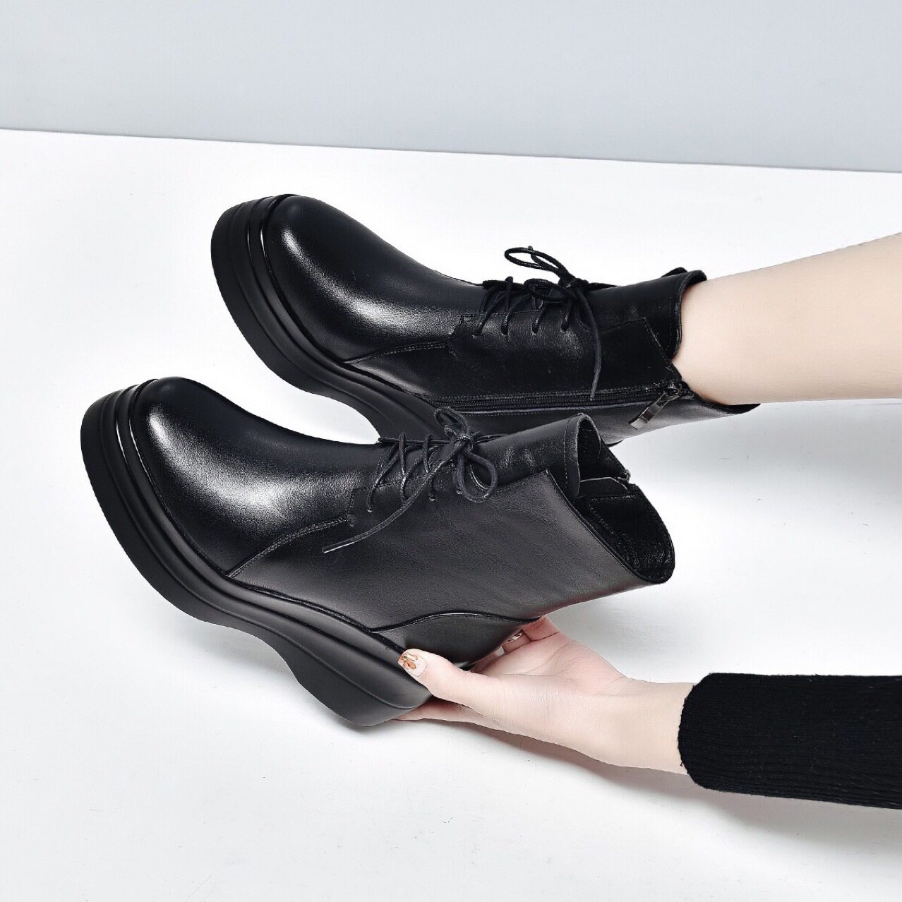 Boot Nữ Da Thật thuộc danh mục Giày dép Nữ, kiểu dáng Boot Nữ cổ ngắn thời trang. Sản phẩm được làm từ chất liệu da thật cao cấp, lót lông bên trong giữ ấm, phù hợp cho mùa đông. Thiết kế đế bánh mì độc đáo, chiều cao đế khoảng 5cm giúp tôn dáng. Boot cổ ngắn Nữ này có màu đen dễ phối đồ, kiểu dáng dây buộc cá tính. Chất liệu da thật mềm mại, thoải mái khi di chuyển. Đế giày có độ bám tốt, chống trơn trượt. Đây là mẫu boot da thật nữ lý tưởng cho các cô nàng yêu thích phong cách năng động. | Tên sản phẩm: Boot Nữ Da Thật Dây Buộc Đế Bánh Mì Chiều Cao Đế Khoảng 5cm Màu Đen. | Mã sản phẩm: D5453 - Giá: 1390000đ. | Mã nhà sản xuất: TOREHU - G04 | Danh mục sản phẩm: Boot Nữ - Boot cổ ngắn Nữ.Hình ảnh sản phẩm