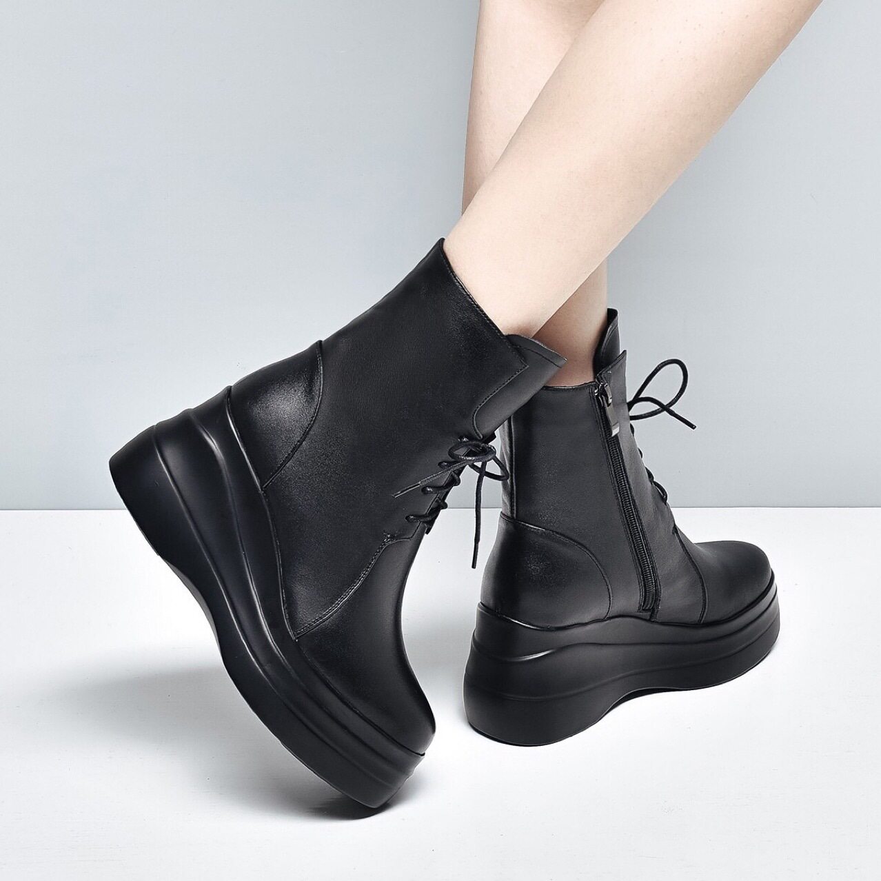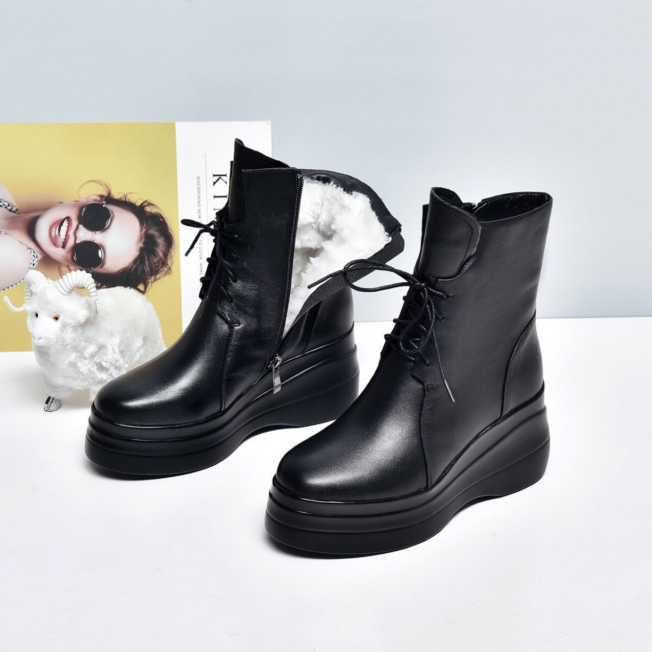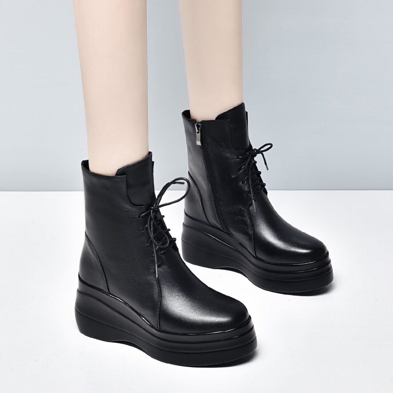 Boot Nữ Da Thật thuộc danh mục Giày dép Nữ, kiểu dáng Boot Nữ cổ ngắn thời trang. Sản phẩm được làm từ chất liệu da thật cao cấp, lót lông bên trong giữ ấm, phù hợp cho mùa đông. Thiết kế đế bánh mì độc đáo, chiều cao đế khoảng 5cm giúp tôn dáng. Boot cổ ngắn Nữ này có màu đen dễ phối đồ, kiểu dáng dây buộc cá tính. Chất liệu da thật mềm mại, thoải mái khi di chuyển. Đế giày có độ bám tốt, chống trơn trượt. Đây là mẫu boot da thật nữ lý tưởng cho các cô nàng yêu thích phong cách năng động. | Tên sản phẩm: Boot Nữ Da Thật Dây Buộc Đế Bánh Mì Chiều Cao Đế Khoảng 5cm Màu Đen. | Mã sản phẩm: D5453 - Giá: 1390000đ. | Mã nhà sản xuất: TOREHU - G04 | Danh mục sản phẩm: Boot Nữ - Boot cổ ngắn Nữ.Hình ảnh sản phẩm