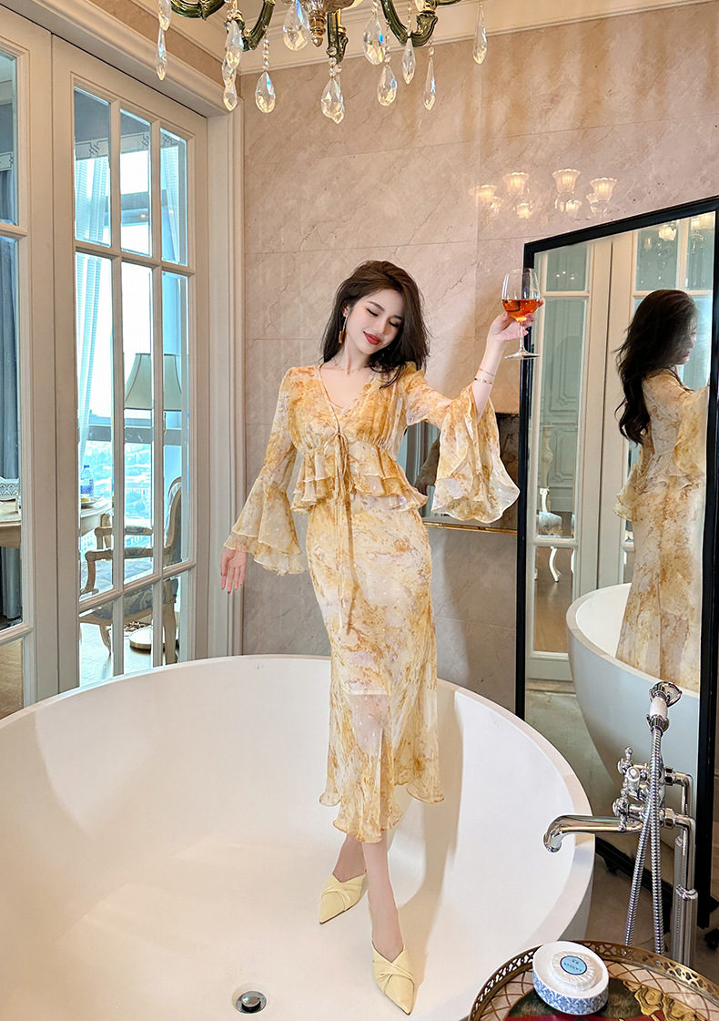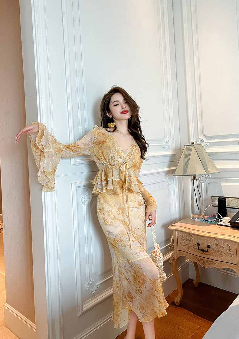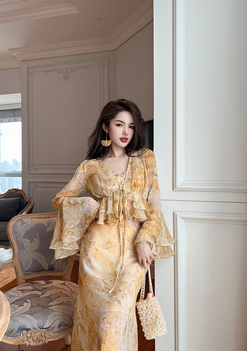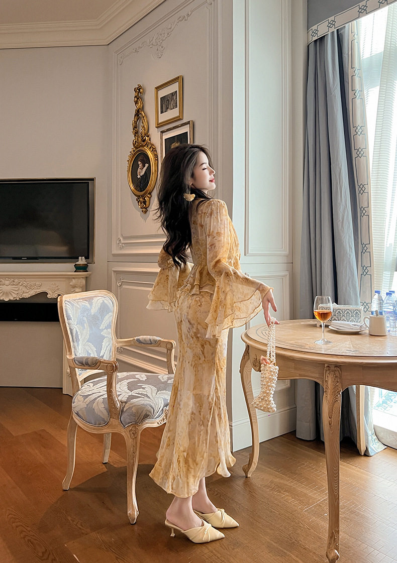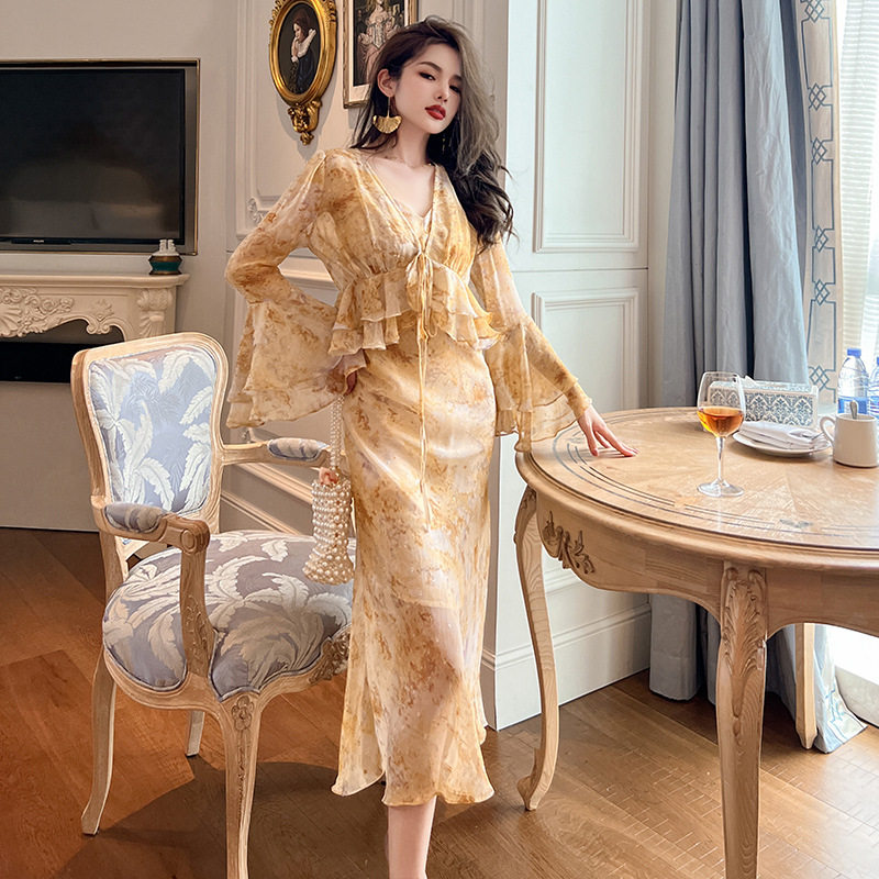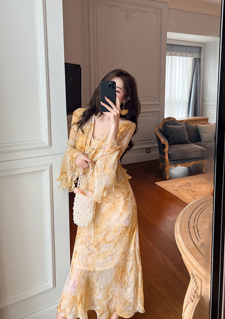 Váy hai dây đuôi cá kèm áo khoác chống nắng nằm trong bộ sưu tập Thời trang Nữ, thuộc dòng Váy đầm Nữ thanh lịch. Thiết kế Váy liền thân Nữ dáng ôm, đuôi cá nhẹ nhàng tôn dáng. Chất liệu mỏng nhẹ, thoáng mát, phù hợp cho mùa hè. Áo khoác ngoài dáng ngắn, tay loe điệu đà, có khả năng chống nắng tốt. Váy hai dây có thể điều chỉnh độ dài, tạo vẻ gợi cảm. Màu vàng nhã nhặn, họa tiết tinh tế. Đây là bộ váy lý tưởng cho những cô nàng yêu thích phong cách nữ tính, quyến rũ. | Tên sản phẩm: Váy Hai Dây Nữ Đuôi Cá Kèm Áo Khoác Chống Nắng Mỏng Tay Loe Phong Cách Gợi Cảm Màu Vàng. | Mã sản phẩm: A0526 - Giá: 1620000đ. | Mã nhà sản xuất: CHDG - G05 | Danh mục sản phẩm: Váy đầm Nữ - Váy liền thân Nữ.Hình ảnh sản phẩm