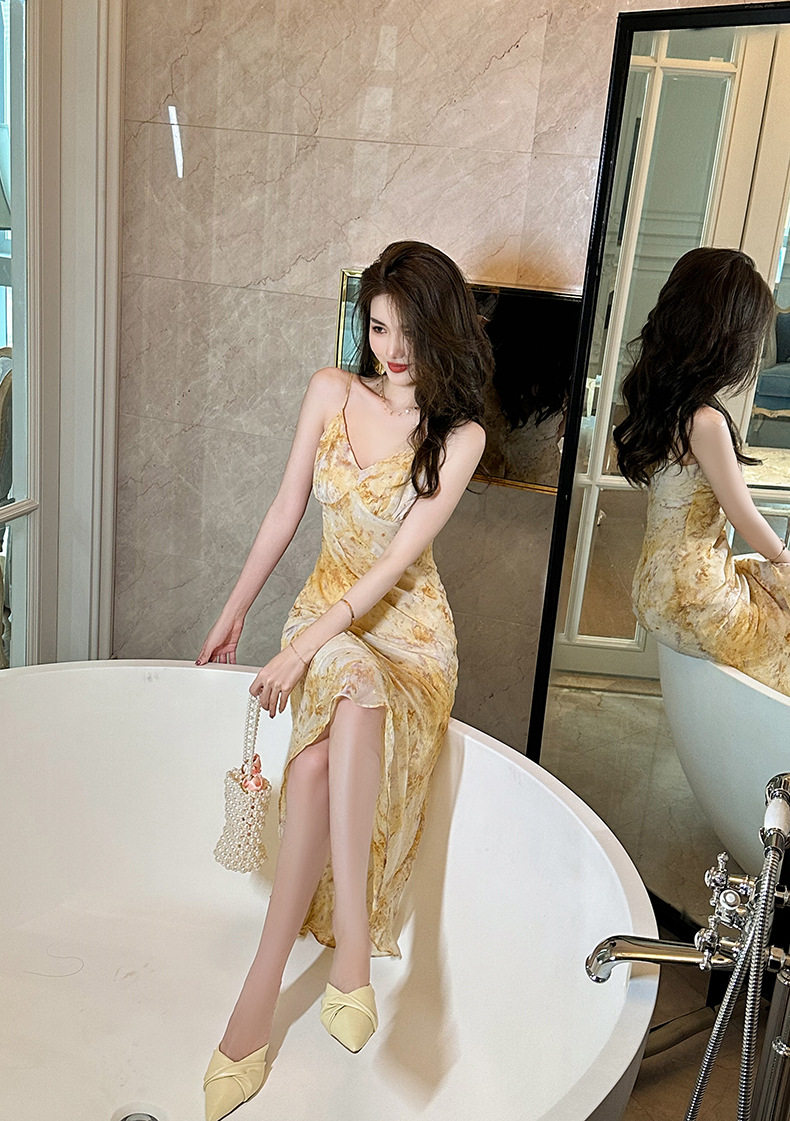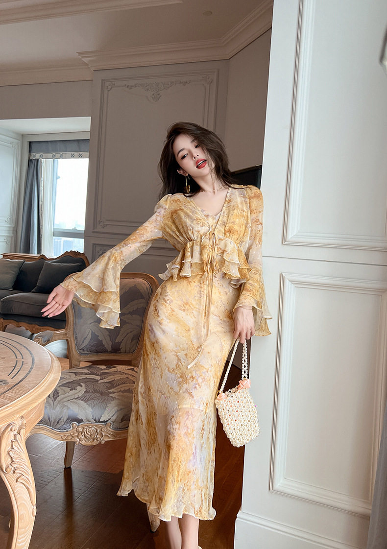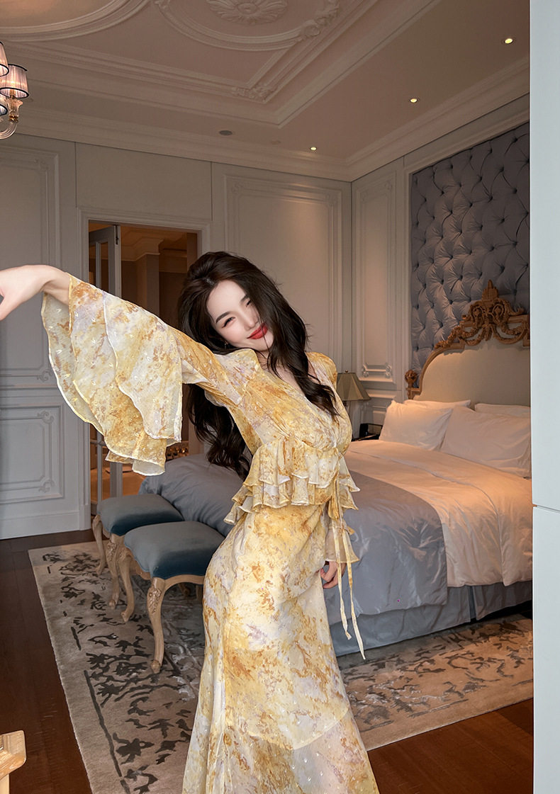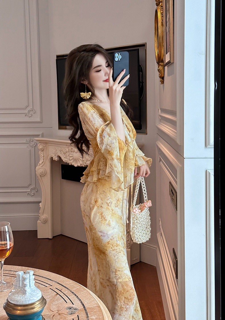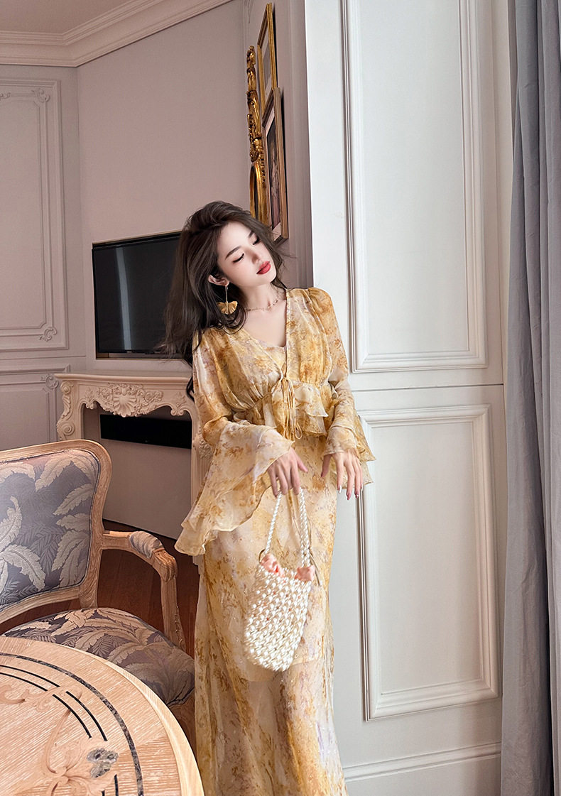 Váy hai dây đuôi cá kèm áo khoác chống nắng nằm trong bộ sưu tập Thời trang Nữ, thuộc dòng Váy đầm Nữ thanh lịch. Thiết kế Váy liền thân Nữ dáng ôm, đuôi cá nhẹ nhàng tôn dáng. Chất liệu mỏng nhẹ, thoáng mát, phù hợp cho mùa hè. Áo khoác ngoài dáng ngắn, tay loe điệu đà, có khả năng chống nắng tốt. Váy hai dây có thể điều chỉnh độ dài, tạo vẻ gợi cảm. Màu vàng nhã nhặn, họa tiết tinh tế. Đây là bộ váy lý tưởng cho những cô nàng yêu thích phong cách nữ tính, quyến rũ. | Tên sản phẩm: Váy Hai Dây Nữ Đuôi Cá Kèm Áo Khoác Chống Nắng Mỏng Tay Loe Phong Cách Gợi Cảm Màu Vàng. | Mã sản phẩm: A0526 - Giá: 1620000đ. | Mã nhà sản xuất: CHDG - G05 | Danh mục sản phẩm: Váy đầm Nữ - Váy liền thân Nữ.Hình ảnh sản phẩm