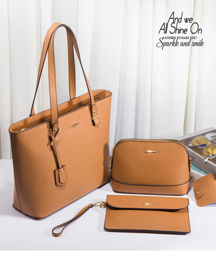 Set Túi Xách Nữ Da Bóng 4 Món là sản phẩm thuộc danh mục Túi xách Nữ, kiểu dáng túi tote Nữ công sở thanh lịch. Set sản phẩm gồm 1 túi lớn đeo vai, 1 túi đeo chéo, 1 ví cầm tay và 1 ví nhỏ đựng thẻ. Túi da Nữ được làm từ chất liệu da bóng, thiết kế đơn giản, hiện đại. Túi lớn có kích thước rộng rãi, đựng được nhiều đồ dùng cá nhân. Set túi có nhiều màu sắc khác nhau như đen, nâu, xanh dương, xám và đỏ. Đây là lựa chọn hoàn hảo cho các cô nàng công sở yêu thích phong cách thời trang tối giản. | Tên sản phẩm: Set Túi Xách Nữ Công Sở Da Bóng 4 Món Lớn Đeo Vai, Túi Đeo Chéo, Ví Cầm Tay Màu Đen, Nâu, Xanh Dương, Xám.... | Mã sản phẩm: A0657 - Giá: 590000đ. | Mã nhà sản xuất: SHRYIN - G01 | Danh mục sản phẩm: Túi tote Nữ - Túi da Nữ.Hình ảnh sản phẩm