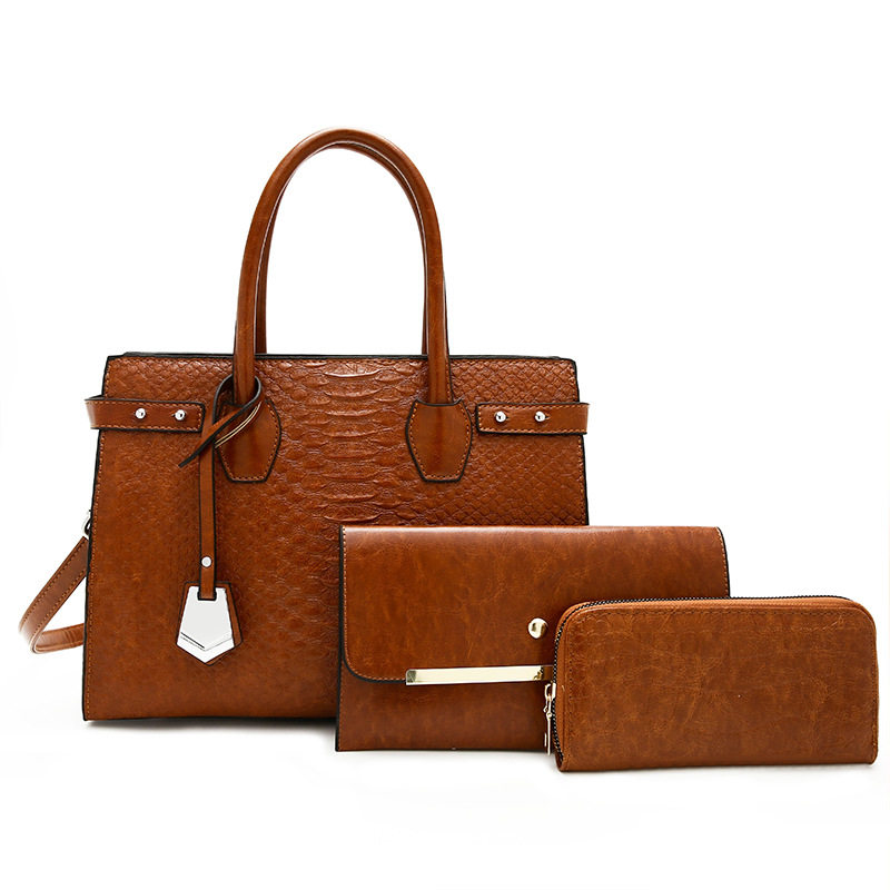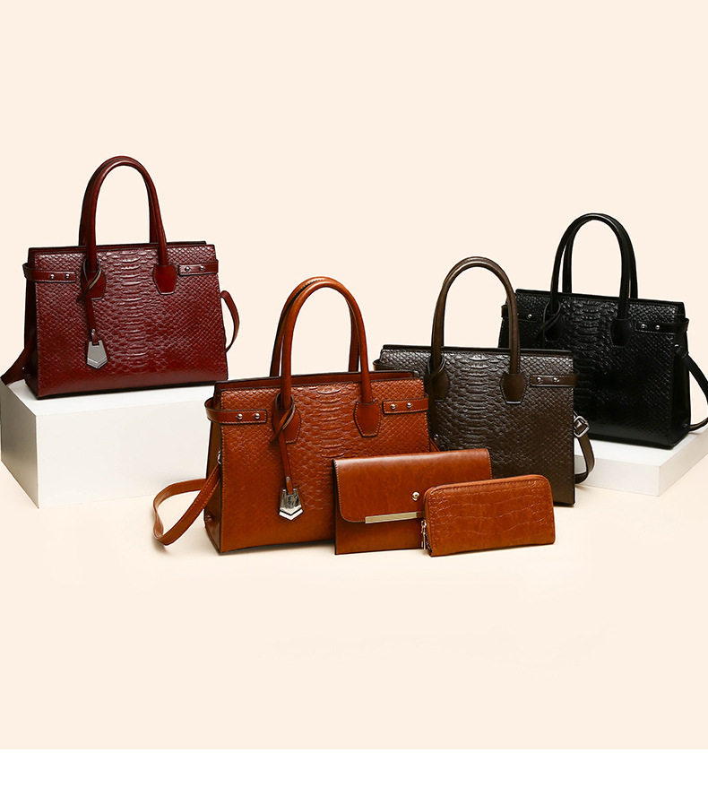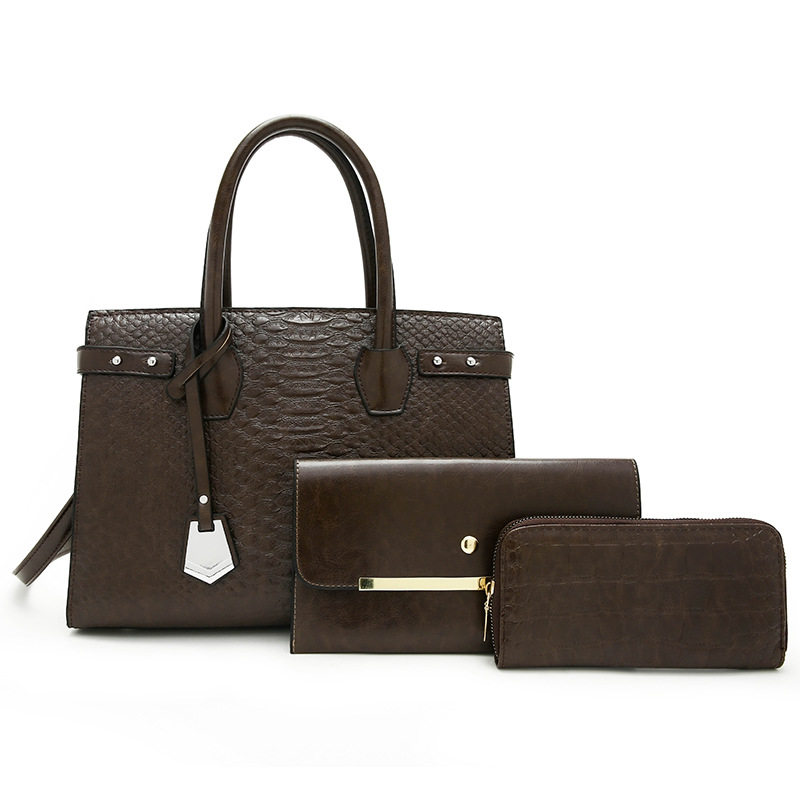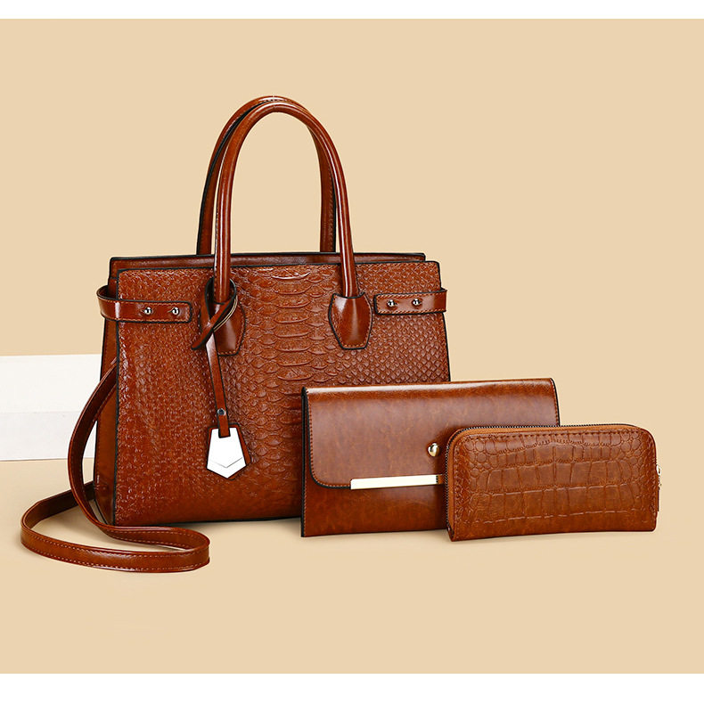 Bộ túi xách nữ 3 món vân cá sấu là sự lựa chọn hoàn hảo cho phái đẹp. Sản phẩm thuộc danh mục Túi xách Nữ, kiểu dáng túi xách tay nữ sang trọng. Bộ túi xách nữ gồm 3 món tiện lợi: túi lớn xách tay, túi đeo vai và ví cầm tay, tất cả đều có vân cá sấu độc đáo. Thiết kế tinh tế với chất liệu da vân cá sấu bền đẹp, đường may tỉ mỉ. Túi có nhiều màu sắc thời trang như đen, nâu, cam, đỏ. Bộ túi xách này không chỉ là phụ kiện thời trang mà còn thể hiện phong cách cá nhân của bạn. | Tên sản phẩm: Bộ Túi Xách Nữ 3 Món Vân Cá Sấu Đeo Vai, Xách Tay Màu Đen, Nâu, Cam, Đỏ. | Mã sản phẩm: A0800 - Giá: 610000đ. | Mã nhà sản xuất: SHRYIN - G02 | Danh mục sản phẩm: Túi xách tay Nữ - Bộ túi xách Nữ.Hình ảnh sản phẩm