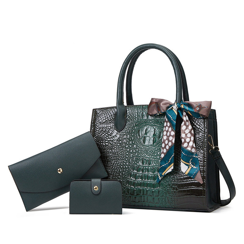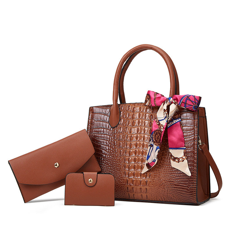 Túi xách nữ vân cá sấu bộ 3 chiếc là sản phẩm thuộc danh mục túi xách nữ, kiểu dáng túi xách tay nữ thời trang. Với thiết kế vân cá sấu độc đáo, chiếc túi tote nữ này mang đến vẻ ngoài sang trọng và cá tính. Bộ sản phẩm gồm 3 chiếc túi với kích thước khác nhau, phù hợp với nhiều mục đích sử dụng. Túi được làm từ chất liệu da bóng cao cấp, bền đẹp và dễ dàng vệ sinh. Túi có nhiều màu sắc lựa chọn như nâu, xanh lá, đỏ, đen. Đây là phụ kiện hoàn hảo cho các cô nàng yêu thích phong cách thời trang. | Tên sản phẩm: Túi Xách Nữ Vân Cá Sấu Bộ 3 Chiếc Da Bóng Đeo Vai, Xách Tay Màu Nâu, Xanh Lá, Đỏ, Đen.... | Mã sản phẩm: A0838 - Giá: 570000đ. | Mã nhà sản xuất: SHRYIN - G01 | Danh mục sản phẩm: Túi xách tay Nữ - Túi Tote Nữ.Hình ảnh sản phẩm