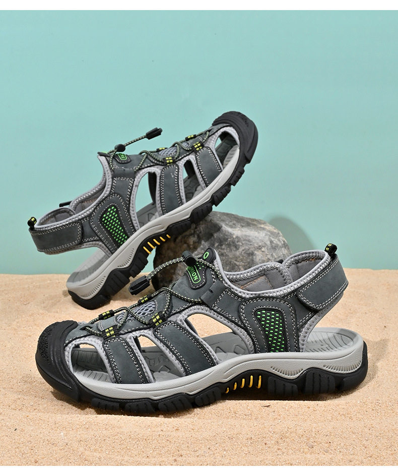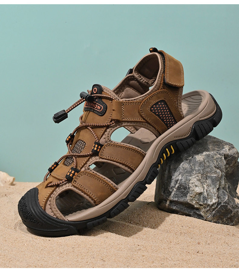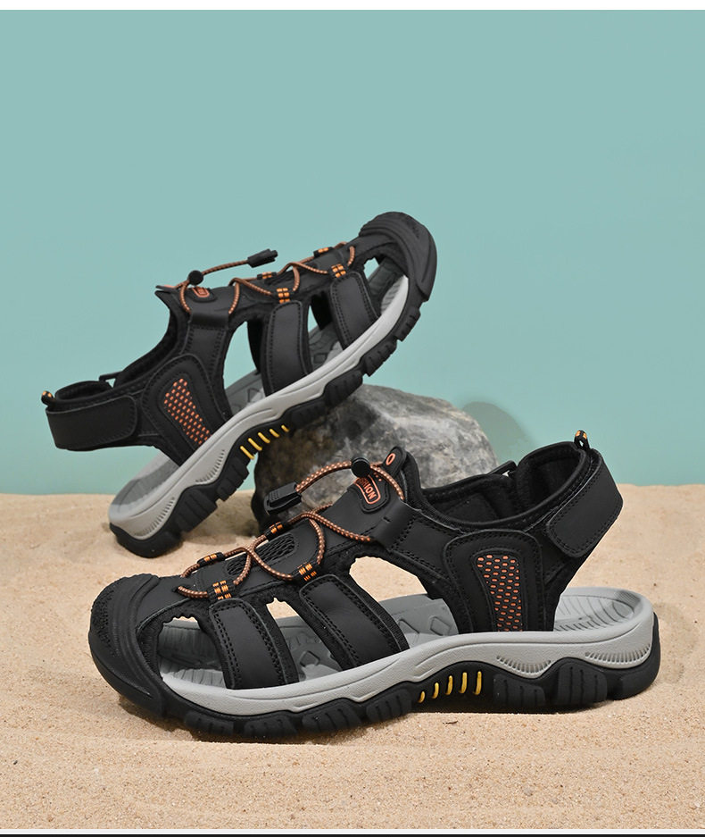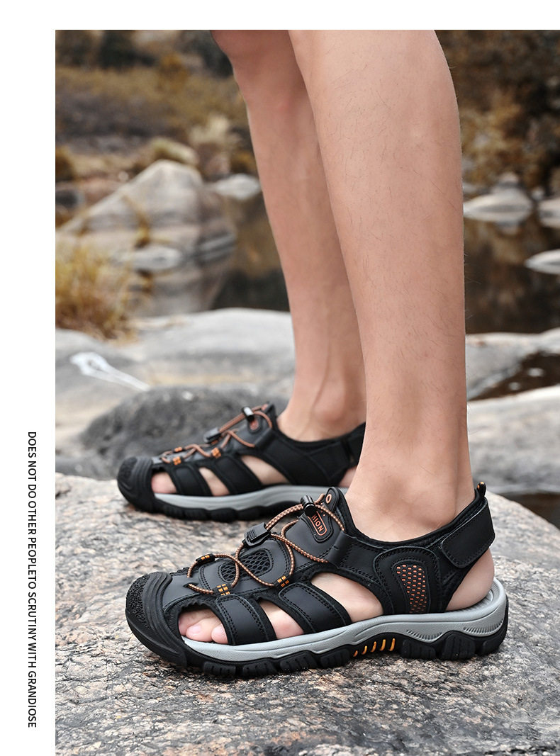 Sandal Nam Da Bò là sản phẩm thuộc danh mục Giày dép Nam với kiểu dáng Sandal Nam thời trang. Sản phẩm được làm từ chất liệu da bò cao cấp, phần mũi bọc kín bảo vệ ngón chân, thoáng khí phù hợp đi biển và hoạt động thể thao. Sandal da Nam này có thiết kế dây rút tiện lợi, đế cao khoảng 3cm bằng cao su chống trơn trượt. Màu sắc đa dạng Đen, Nâu, Xám dễ dàng phối đồ. Đây là lựa chọn hoàn hảo trong phân khúc Sandal Nam cho nam giới yêu thích sự thoải mái và năng động. | Tên sản phẩm: Sandal Nam Da Bò Mũi Bọc Dây Rút Đi Biển Thể Thao Thoáng Khí Chiều Cao Đế Khoảng 3cm Màu Đen, Nâu, Xám. | Mã sản phẩm: A0971 - Giá: 690000đ. | Mã nhà sản xuất: TUNEZH - G02 | Danh mục sản phẩm: Sandal Nam - Sandal da Nam.Hình ảnh sản phẩm