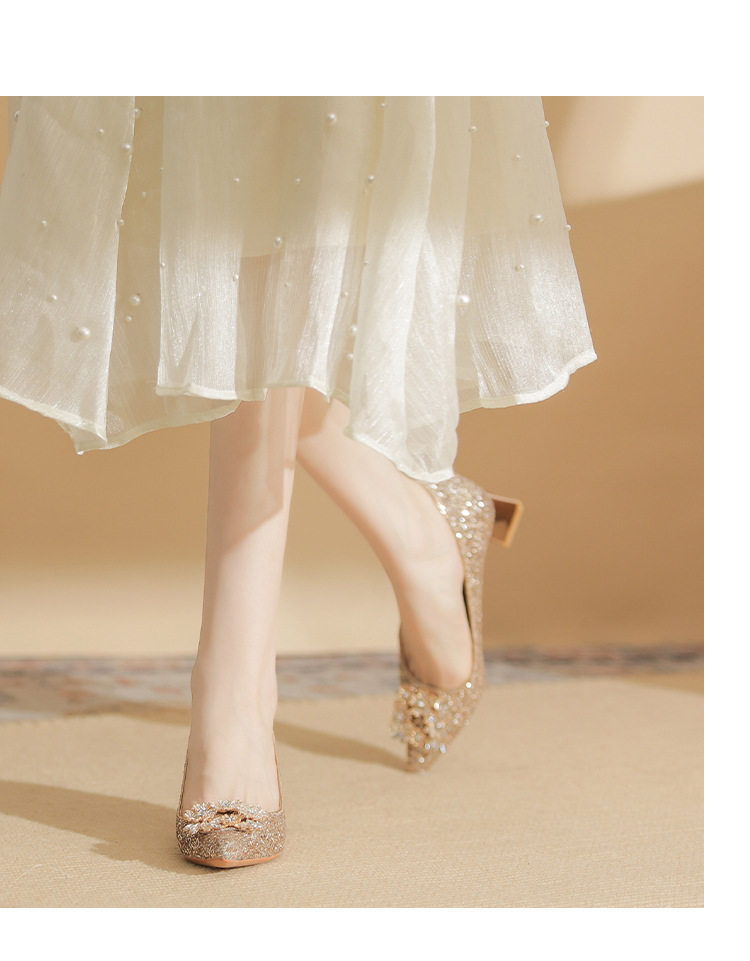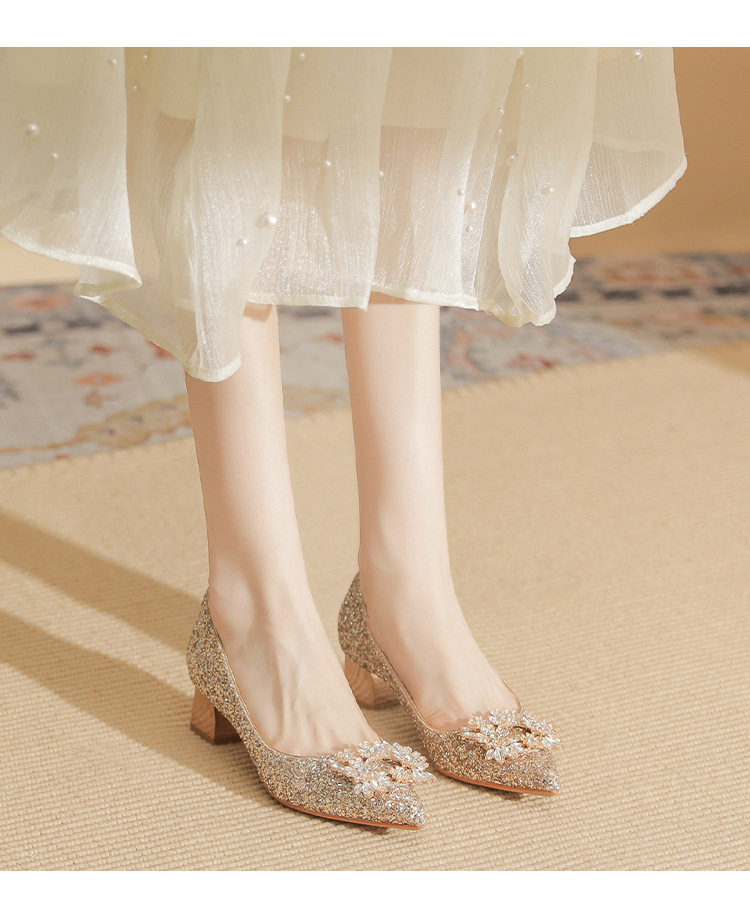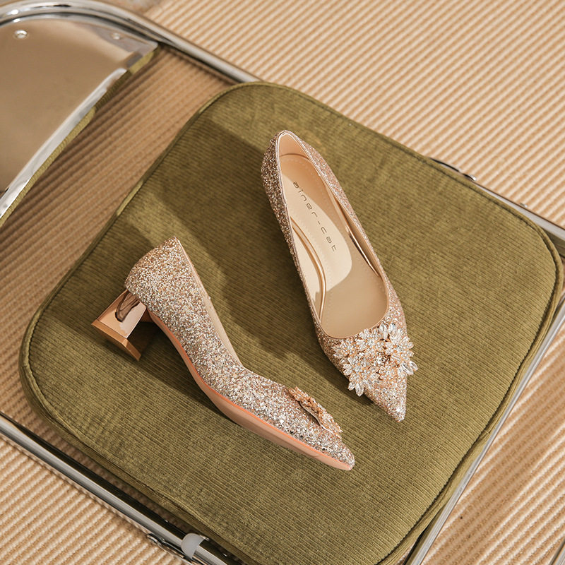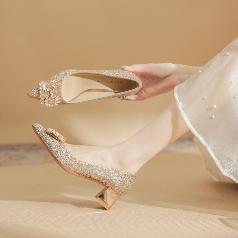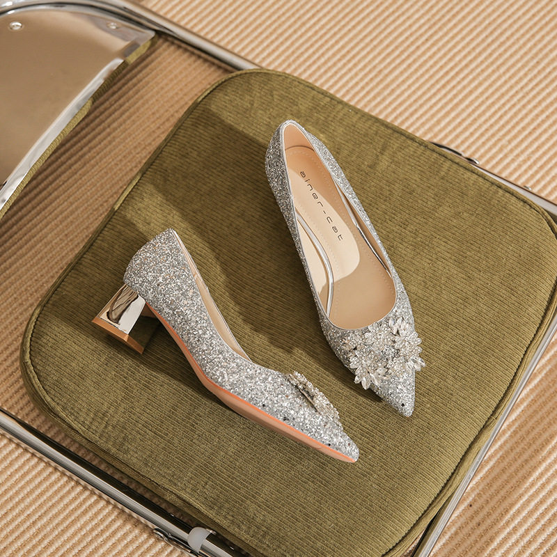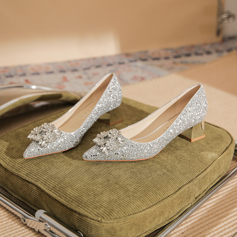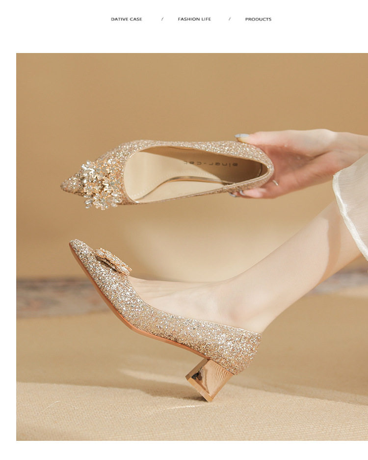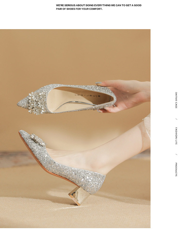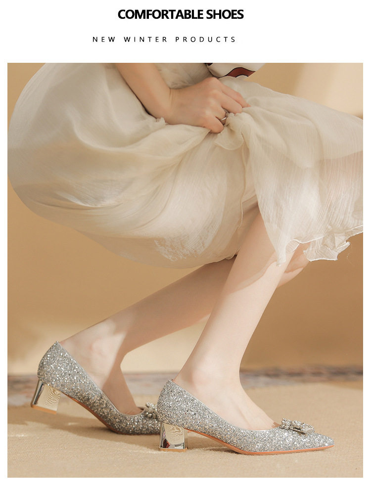 Giày cao gót nữ mũi nhọn kim tuyến là một lựa chọn tuyệt vời cho những ai yêu thích phong cách sang trọng và quyến rũ. Sản phẩm thuộc danh mục giày dép nữ, đặc biệt là giày cao gót nữ mũi nhọn. Thiết kế đính đá lấp lánh tạo điểm nhấn nổi bật, thu hút mọi ánh nhìn. Với chiều cao đế khoảng 5cm, đôi giày này mang lại sự tự tin và thoải mái khi di chuyển. Màu sắc bạc và vàng kim tuyến giúp dễ dàng kết hợp với nhiều loại trang phục khác nhau. Đây là mẫu giày cao gót nữ hoàn hảo cho những dịp đặc biệt. | Tên sản phẩm: Giày Cao Gót Nữ Mũi Nhọn Kim Tuyến Đính Đá Chiều Cao Đế Khoảng 5cm Màu Bạc, Vàng. | Mã sản phẩm: A1200 - Giá: 890000đ. | Mã nhà sản xuất: HUDS - G03 | Danh mục sản phẩm: Giày cao gót Nữ - Giày mũi nhọn Nữ.Hình ảnh sản phẩm