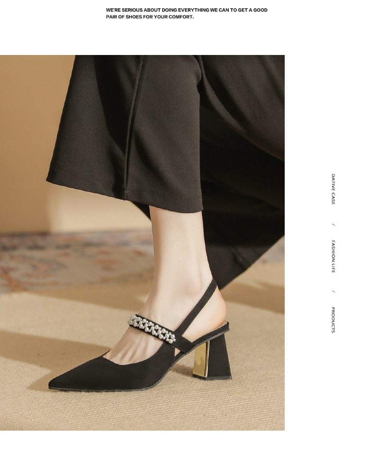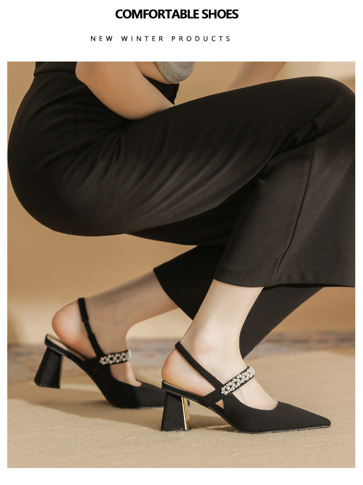 Giày Cao Gót Nữ Da Cừu Mũi Nhọn là mẫu sandal cao gót nữ mới nhất, thuộc bộ sưu tập giày dép nữ thời trang. Thiết kế mũi nhọn thanh lịch, quai hậu chắc chắn, đính hạt ngọc trai tinh tế tạo điểm nhấn. Chất liệu da cừu mềm mại, mang lại cảm giác thoải mái khi di chuyển. Chiều cao đế khoảng 6cm giúp tôn dáng, phù hợp với nhiều dịp khác nhau. Sandal cao gót nữ này có hai màu đen và kem cơ bản, dễ dàng phối đồ. Đây là lựa chọn hoàn hảo cho phái đẹp yêu thích phong cách thanh lịch và quyến rũ. | Tên sản phẩm: Giày Cao Gót Nữ Da Cừu Mũi Nhọn Quai Hậu Chiều Cao Đế Khoảng 6cm Đính Hạt Màu Đen, Kem. | Mã sản phẩm: A1228 - Giá: 910000đ. | Mã nhà sản xuất: HUDS - G03 | Danh mục sản phẩm: Giày cao gót Nữ - Sandal cao gót Nữ.Hình ảnh sản phẩm