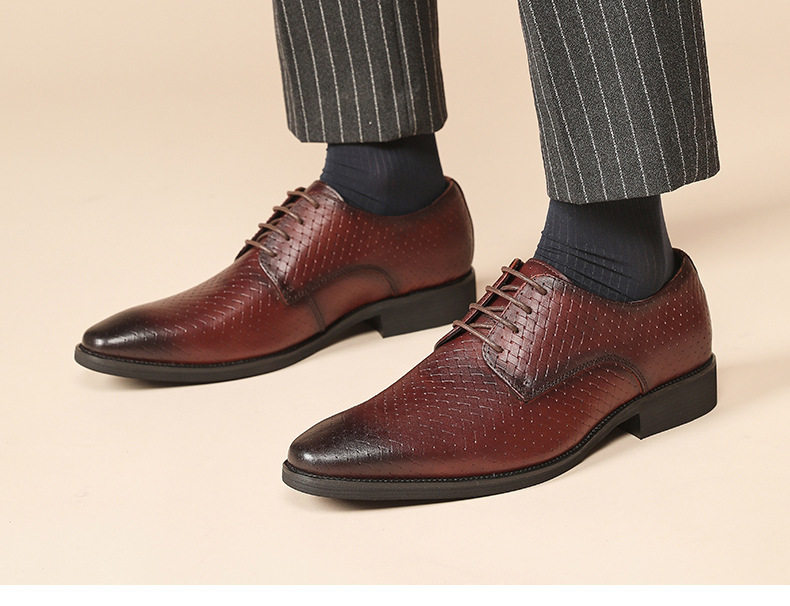 Giày Tây Buộc Dây Nam Da Bò Dập Vân là sự lựa chọn hoàn hảo thuộc dòng Giày dép Nam, đặc biệt là Giày tây Nam. Được chế tác từ chất liệu da bò cao cấp với thiết kế dập vân độc đáo, đôi giày này mang đến vẻ ngoài lịch lãm và sang trọng. Chiều cao đế khoảng 3cm giúp tôn dáng. Với kiểu dáng Giày da Nam buộc dây cổ điển, sản phẩm có hai màu đen và nâu dễ dàng phối đồ. Đây là mẫu giày tây nam không thể thiếu trong tủ đồ của quý ông thành đạt. | Tên sản phẩm: Giày Tây Buộc Dây Nam Da Bò Dập Vân Chiều Cao Đế Khoảng 3cm Màu Đen, Nâu. | Mã sản phẩm: A1750 - Giá: 1350000đ. | Mã nhà sản xuất: WEDSH - G04 | Danh mục sản phẩm: Giày tây Nam - Giày da Nam.Hình ảnh sản phẩm