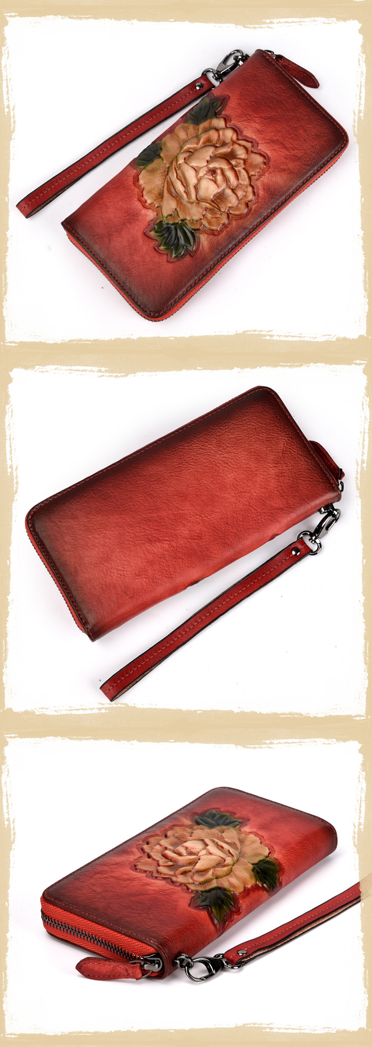 Chiếc ví da thật dáng dài khóa kéo này là một phụ kiện thời trang không thể thiếu cho phái đẹp. Thuộc danh mục Ví & Phụ kiện Nữ, chiếc ví nữ này có thiết kế dáng dài, nhiều ngăn đựng tiền và thẻ tiện lợi. Ví cầm tay Nữ với chất liệu da thật cao cấp, bề mặt da mềm mại cùng đường may tỉ mỉ. Thiết kế hoa văn độc đáo mang đậm phong cách Âu Mỹ. Ví có hai màu Nâu đỏ và đen. Đây là chiếc ví lý tưởng cho các cô nàng yêu thích sự sang trọng và tiện dụng. | Tên sản phẩm: Ví Da Thật Dáng Dài Khóa Kéo Đựng Tiền Card Thiết Kế Hoa Văn Phong Cách Âu Mỹ Màu Nâu Đỏ, Đen. | Mã sản phẩm: A3656 - Giá: 720000đ. | Mã nhà sản xuất: GUDNG - G02 | Danh mục sản phẩm: Ví Nữ - Ví cầm tay Nữ.Hình ảnh sản phẩm