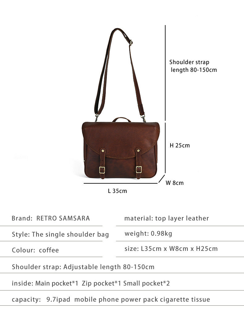 Túi Đeo Chéo/Đeo Vai Nam Da Thật phong cách cổ điển là một sản phẩm túi xách nam độc đáo và chất lượng. Chiếc túi đeo chéo nam này được làm từ da thật nguyên miếng, mang đến vẻ đẹp cổ điển và độ bền cao. Thiết kế túi da nam tỉ mỉ với các chi tiết khóa cài chắc chắn. Túi có thể đeo chéo hoặc đeo vai, rất tiện lợi cho việc di chuyển. Túi đeo chéo nam da thật có màu nâu trầm ấm, dễ dàng phối đồ. Sản phẩm thuộc danh mục túi đeo chéo nam và túi da nam, phù hợp với nhiều phong cách thời trang khác nhau. | Tên sản phẩm: Túi Đeo Chéo/Đeo Vai Nam Da Thật Phong Cách Cổ Điển Màu Nâu. | Mã sản phẩm: A4560 - Giá: 1780000đ. | Mã nhà sản xuất: GUDEA - G05 | Danh mục sản phẩm: Túi đeo chéo Nam - Túi da Nam.Hình ảnh sản phẩm