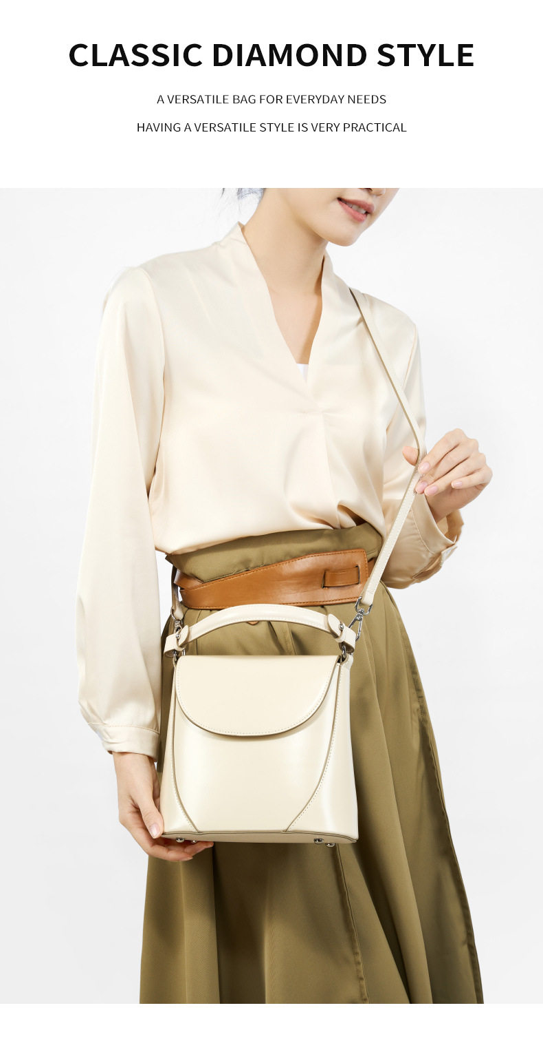 Túi Đeo Chéo Nữ Da Thật là một sản phẩm thuộc danh mục Túi xách Nữ, đặc biệt là dòng Túi đeo chéo Nữ với thiết kế hình trụ tối giản, mang đến vẻ ngoài thanh lịch và hiện đại. Túi được làm từ chất liệu da thật cao cấp, đảm bảo độ bền và vẻ đẹp sang trọng. Chiếc túi da Nữ này có hai màu trắng và nâu. Túi đeo chéo nữ này không chỉ là một phụ kiện thời trang mà còn là người bạn đồng hành lý tưởng, giúp bạn tự tin thể hiện phong cách riêng. Thiết kế đơn giản giúp chiếc túi dễ dàng phù hợp với nhiều trang phục khác nhau. | Tên sản phẩm: Túi Đeo Chéo Nữ Da Thật Thiết Kế Tối Giản Hình Trụ Màu Trắng, Nâu. | Mã sản phẩm: A6845 - Giá: 1220000đ. | Mã nhà sản xuất: GUDEA - G04 | Danh mục sản phẩm: Túi đeo chéo Nữ - Túi da Nữ.