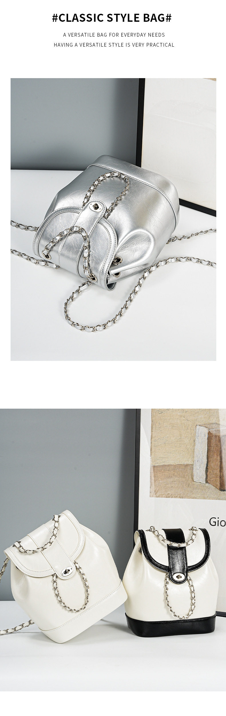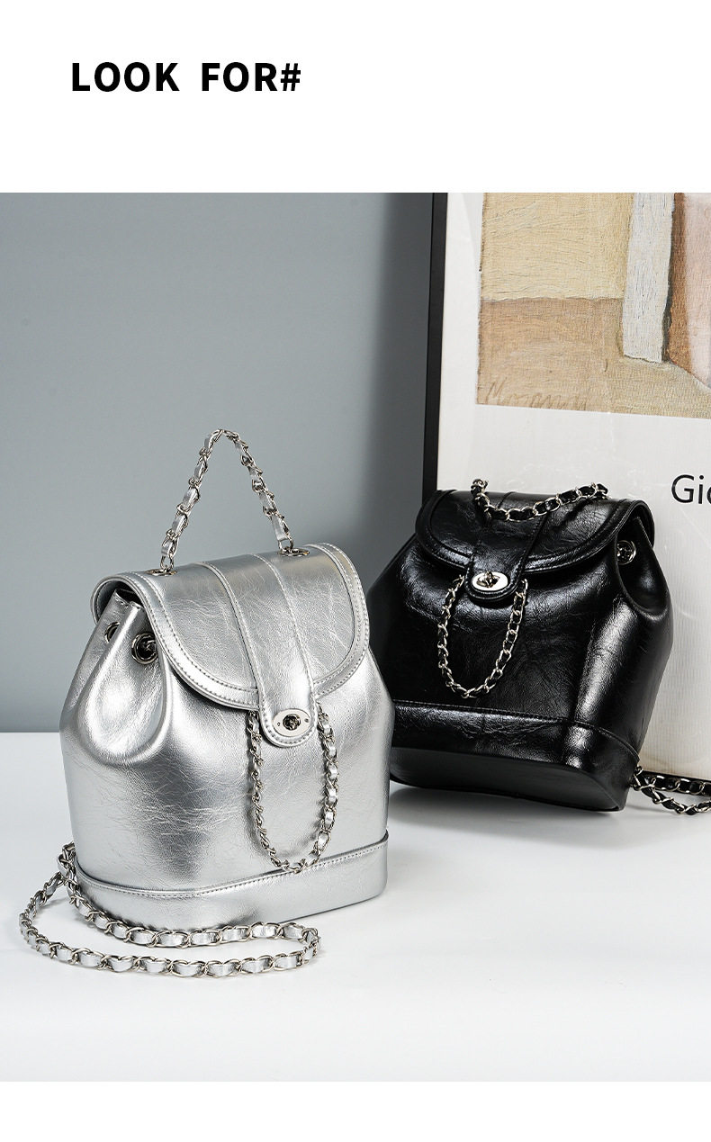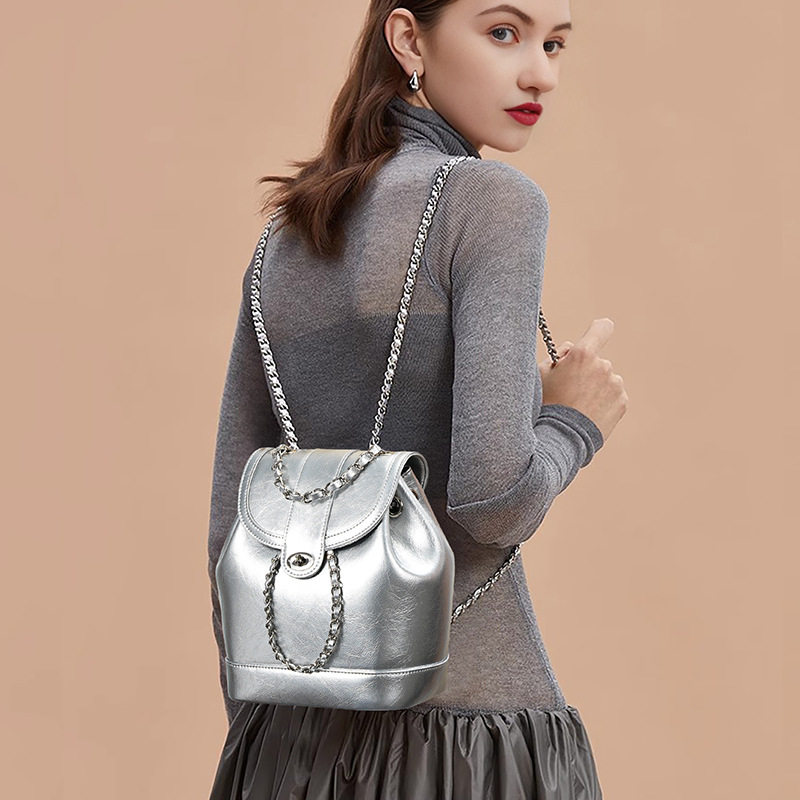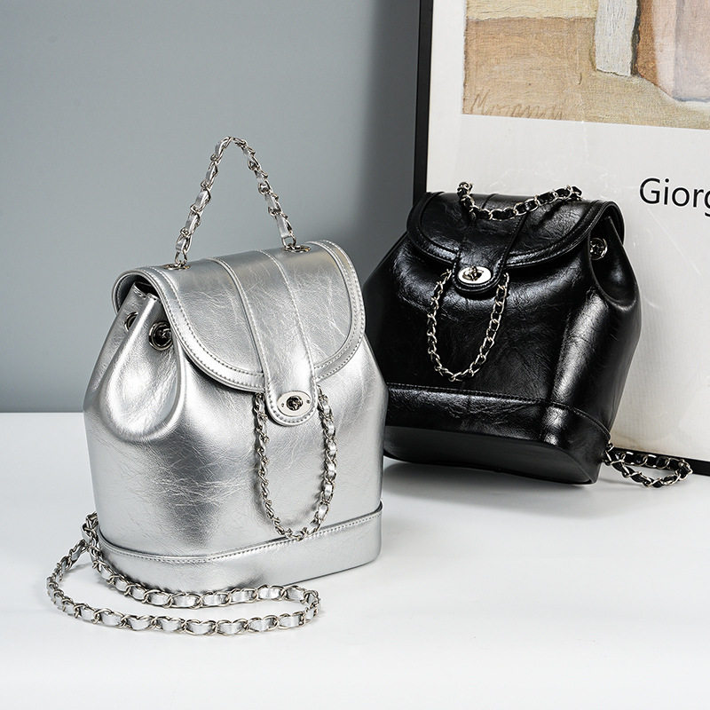 Balo Nữ thiết kế nhỏ gọn da bóng là một phụ kiện thời trang đa năng, thuộc danh mục Túi xách Nữ và Balo Nữ. Với thiết kế độc đáo, chiếc balo thời trang Nữ này mang đến vẻ ngoài thanh lịch và sang trọng. Chất liệu da bóng cao cấp tạo nên sự nổi bật, kết hợp cùng dây xích tinh tế, mang đậm phong cách tiểu thư. Balo có kích thước nhỏ gọn, tiện lợi để mang theo khi đi du lịch hoặc dạo phố. Sản phẩm có hai màu Bạc và Đen. | Tên sản phẩm: Balo Nữ Thiết Kế Nhỏ Gọn Da Bóng Đa Năng Dây Xích Phong Cách Tiểu Thư Màu Bạc, Đen. | Mã sản phẩm: A7014 - Giá: 1590000đ. | Mã nhà sản xuất: GUDLE - G04 | Danh mục sản phẩm: Balo Nữ - Balo thời trang Nữ.Hình ảnh sản phẩm