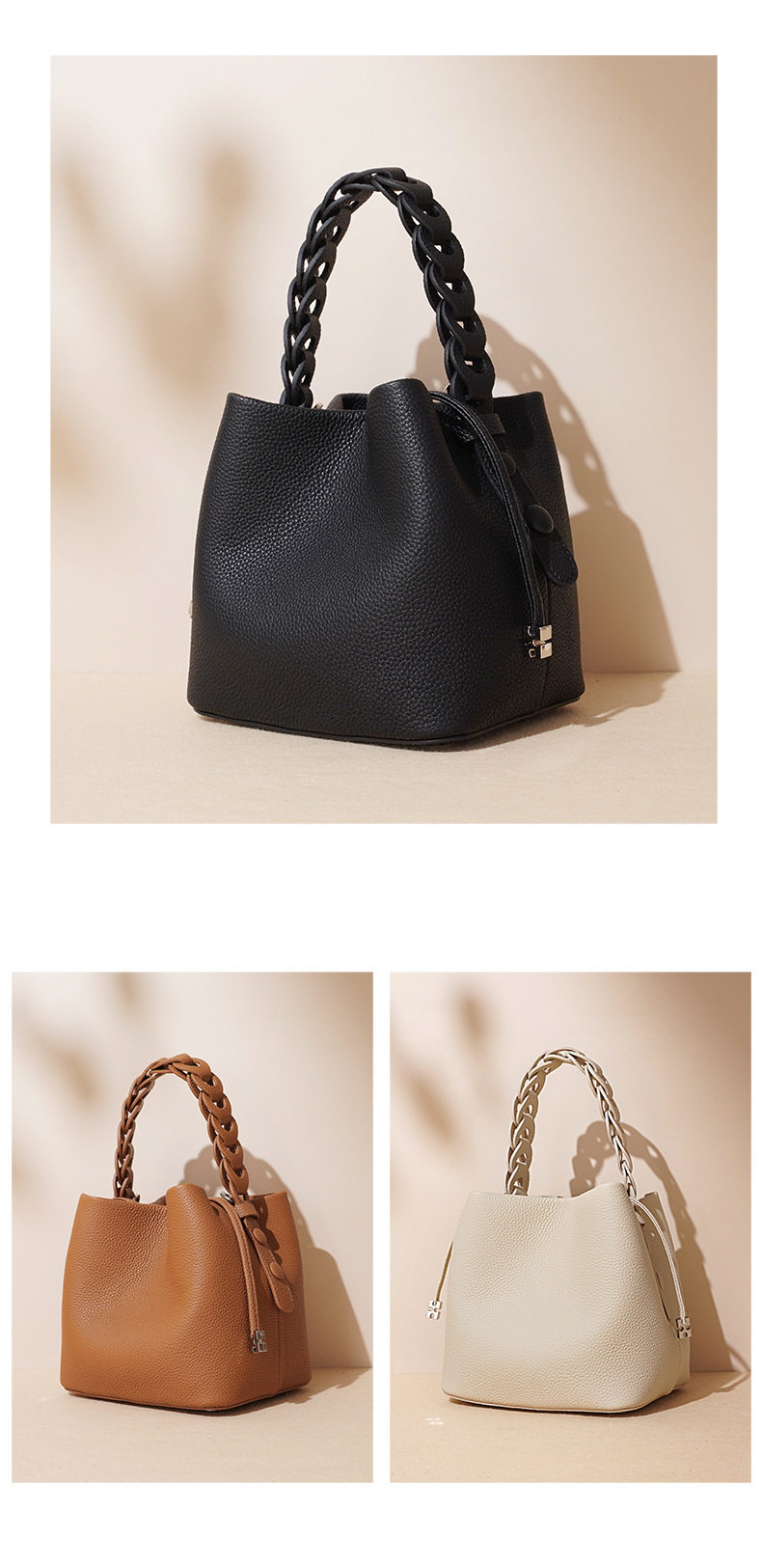 Túi Xách Tay Nữ Da Bò Quai Xách Bện Dáng Bucket Đeo Chéo là một sản phẩm thuộc danh mục Túi xách Nữ, kiểu dáng túi xách tay Nữ thời trang. Chiếc túi bucket Nữ này được làm từ chất liệu da bò cao cấp, mềm mại. Thiết kế quai xách bện độc đáo, tạo điểm nhấn thanh lịch. Túi có dáng bucket rộng rãi, đựng được nhiều đồ dùng cá nhân. Màu sắc đa dạng như xám, tím, xanh và nâu dễ dàng phối đồ. Túi xách tay nữ da bò là phụ kiện không thể thiếu cho các cô nàng yêu thích phong cách thời trang thanh lịch và sang trọng. | Tên sản phẩm: Túi Xách Tay Nữ Da Bò Quai Xách Bện Dáng Bucket Đeo Chéo Màu Xám, Tím, Xanh, Nâu. | Mã sản phẩm: A7095 - Giá: 1390000đ. | Mã nhà sản xuất: GUDEA - G04 | Danh mục sản phẩm: Túi xách tay Nữ - Túi bucket Nữ.Hình ảnh sản phẩm