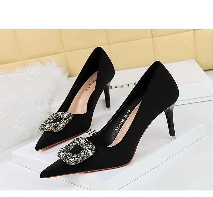 Giày Cao Gót Nữ Mũi Nhọn là sản phẩm thuộc danh mục Giày dép Nữ, kiểu dáng giày cao gót Nữ mũi nhọn thời trang. Thiết kế quai kim loại đính đá nổi bật, tạo điểm nhấn sang trọng và quý phái. Sản phẩm phù hợp với nhiều dịp khác nhau, từ đi làm, đi tiệc đến dạo phố. Giày cao gót nữ có chiều cao đế 7.5cm giúp tôn dáng, mang lại vẻ quyến rũ cho phái đẹp. Chất liệu bề mặt mềm mại, thoải mái khi mang. Đây là lựa chọn hoàn hảo cho những cô nàng yêu thích phong cách thanh lịch, hiện đại trong thế giới giày dép nữ. | Tên sản phẩm: Giày Cao Gót Nữ Mũi Nhọn Quai Kim Loại Đính Đá Chiều Cao Đế 7.5cm Màu Đen. | Mã sản phẩm: A9136 - Giá: 710000đ. | Mã nhà sản xuất: PITYIN - G02 | Danh mục sản phẩm: Giày cao gót Nữ - Giày mũi nhọn Nữ.Hình ảnh sản phẩm