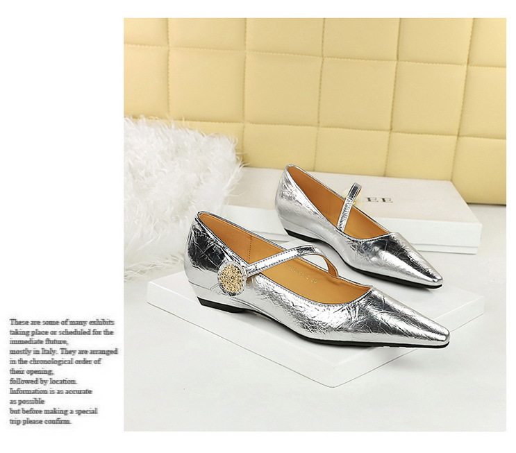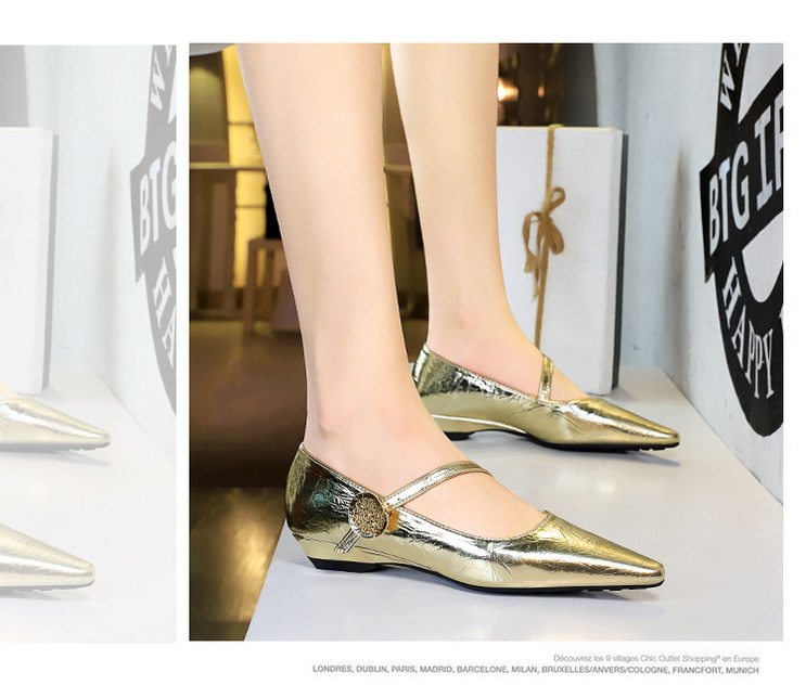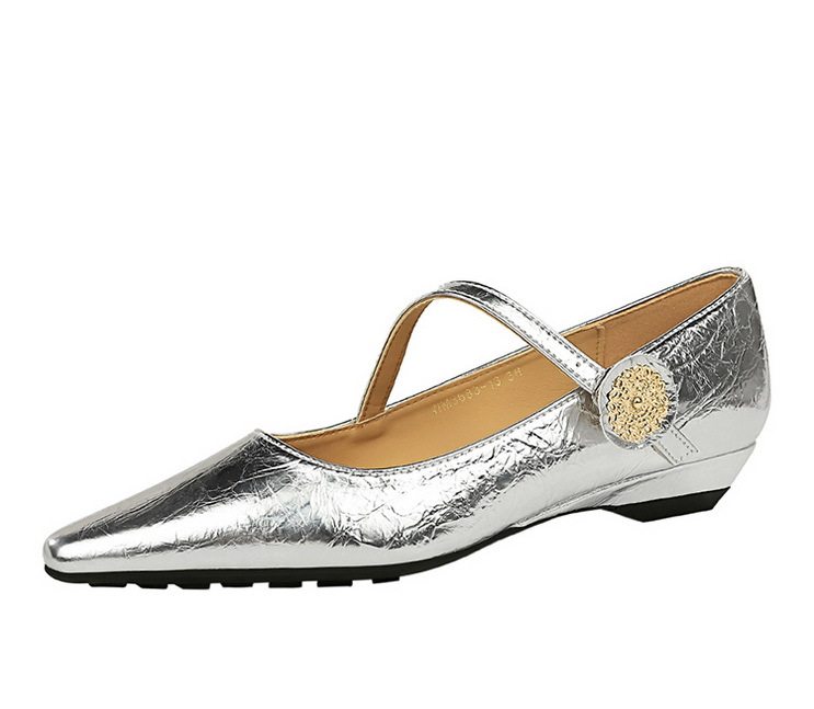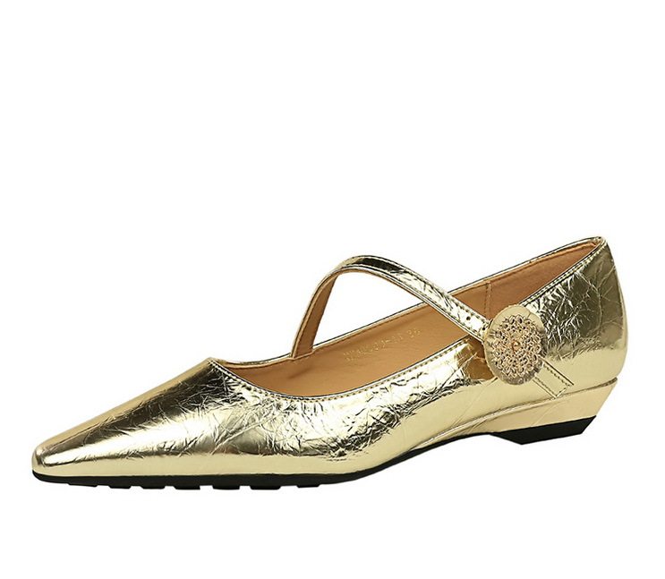 Giày búp bê nữ da bóng mũi nhọn là sản phẩm thuộc danh mục giày dép nữ với kiểu dáng giày búp bê nữ thời trang. Sản phẩm có thiết kế mũi nhọn thanh lịch, quai ngang duyên dáng. Chất liệu da bóng tạo vẻ ngoài sang trọng. Chiều cao đế khoảng 3cm mang lại sự thoải mái khi di chuyển. Giày búp bê nữ này có các màu đen, vàng và bạc dễ phối đồ. Đây là lựa chọn hoàn hảo trong phân khúc giày da nữ cho phái đẹp. | Tên sản phẩm: Giày Búp Bê Nữ Da Bóng Mũi Nhọn Quai Ngang Chiều Cao Đế Khoảng 3cm Màu Đen, Vàng, Bạc. | Mã sản phẩm: A9311 - Giá: 640000đ. | Mã nhà sản xuất: PITYIN - G02 | Danh mục sản phẩm: Giày búp bê Nữ - Giày da Nữ.Hình ảnh sản phẩm