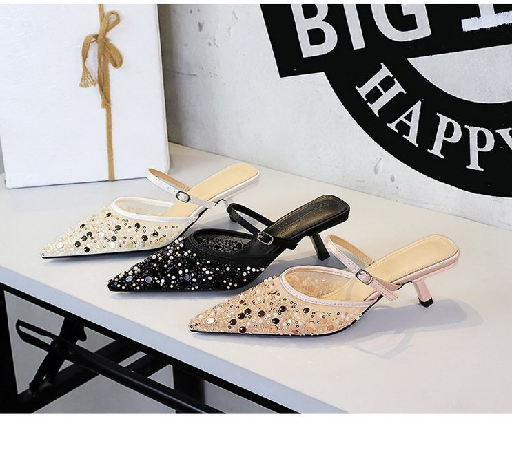 Giày Sandal Cao Gót Nữ Mũi Nhọn Lưới Đính Kim Sa Gót Cao 5cm - 6cm là mẫu giày dép nữ thời trang, thuộc danh mục giày sandal cao gót nữ. Thiết kế mũi nhọn thanh lịch, chất liệu lưới thoáng khí, đính kim sa lấp lánh tạo điểm nhấn nổi bật. Gót cao vừa phải giúp tôn dáng, dễ dàng di chuyển. Sản phẩm có các màu be, đen, trắng dễ phối đồ. Mẫu sandal mũi nhọn nữ này phù hợp cho các buổi tiệc, sự kiện hoặc đi làm, mang đến vẻ ngoài sang trọng và quyến rũ cho phái đẹp. | Tên sản phẩm: Giày Sandal Cao Gót Nữ Mũi Nhọn Lưới Đính Kim Sa Gót Cao 5cm - 6cm Màu Be, Đen, Trắng. | Mã sản phẩm: A9320 - Giá: 640000đ. | Mã nhà sản xuất: PITYIN - G02 | Danh mục sản phẩm: sandal mũi nhọn nữ - giày sandal cao gót nữ.Hình ảnh sản phẩm