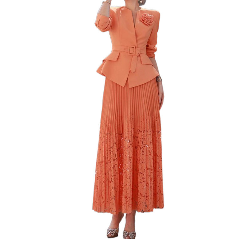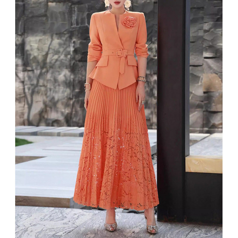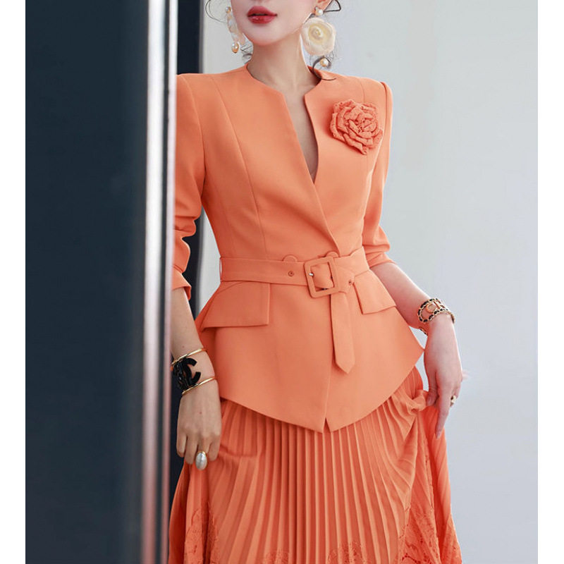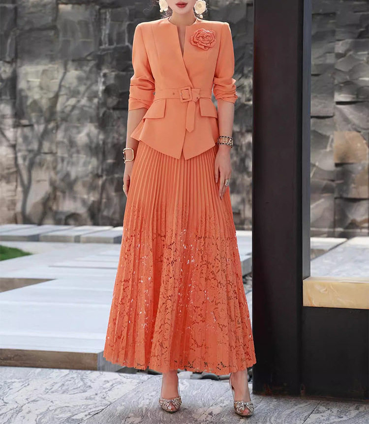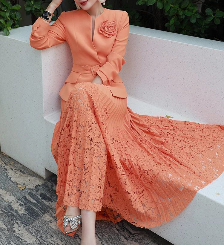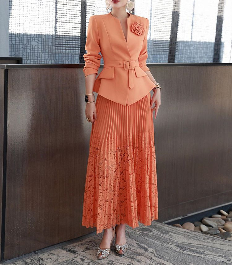 Set Áo Vest Công Sở Nữ Thắt Eo Hoa và Chân Váy Ren Xếp Ly là sản phẩm thuộc danh mục Thời trang Nữ, kiểu dáng Váy đầm Nữ. Set bộ Nữ này bao gồm áo vest công sở thiết kế thắt eo tôn dáng, điểm nhấn là bông hoa cài áo tinh tế. Chân váy ren xếp ly duyên dáng, tạo nên tổng thể thanh lịch và chuyên nghiệp. Màu cam tươi tắn, chất liệu thoáng mát, phù hợp với thời tiết mùa xuân hè. Set bộ này là lựa chọn hoàn hảo cho các quý cô công sở. | Tên sản phẩm: Set Áo Vest Công Sở Nữ Thắt Eo Hoa + Chân Váy Ren Xếp Ly Màu Cam. | Mã sản phẩm: A9554 - Giá: 3650000đ. | Mã nhà sản xuất: CHTYAI - G06 | Danh mục sản phẩm: Váy đầm Nữ - Set bộ Nữ.Hình ảnh sản phẩm