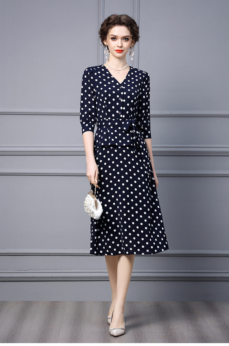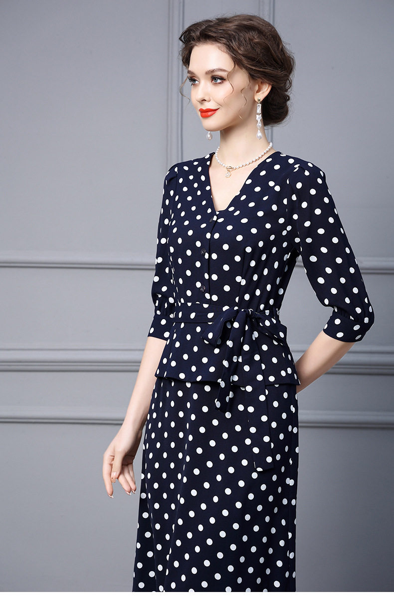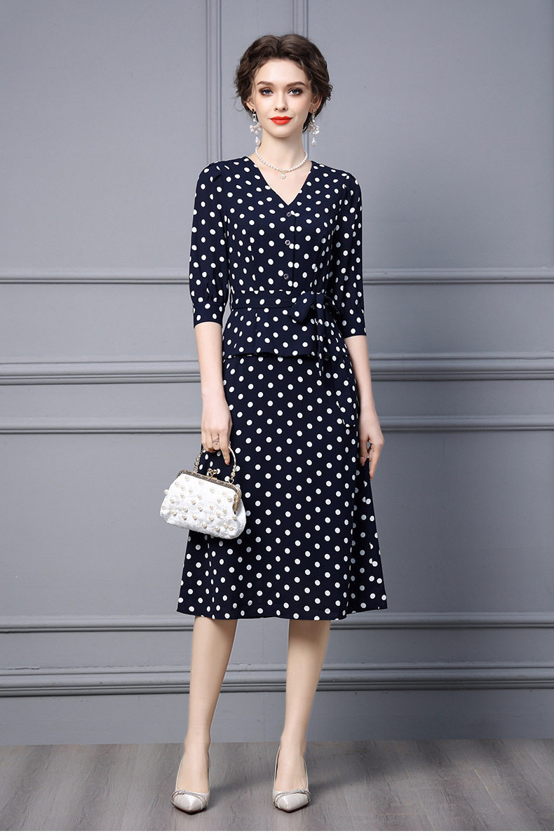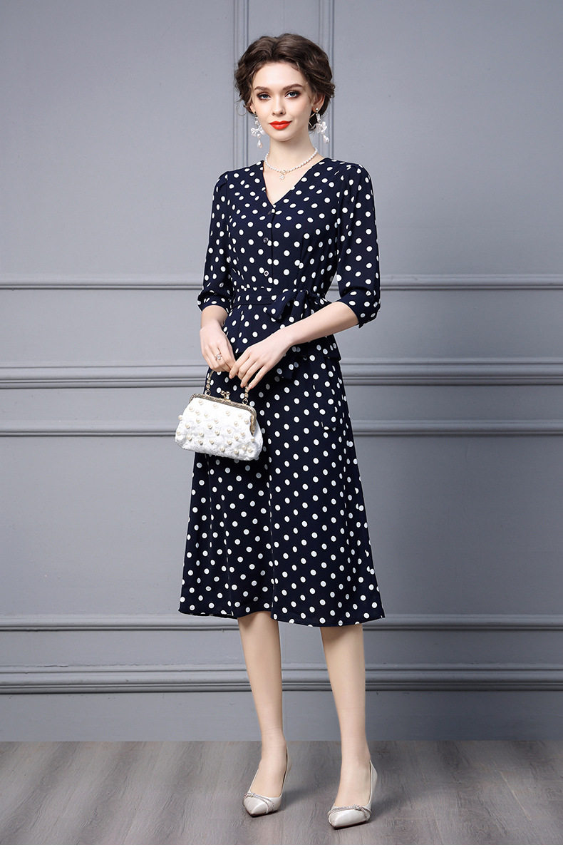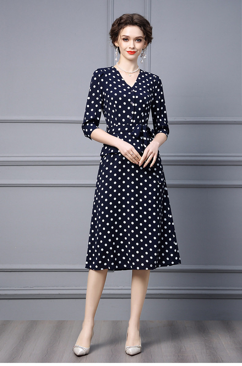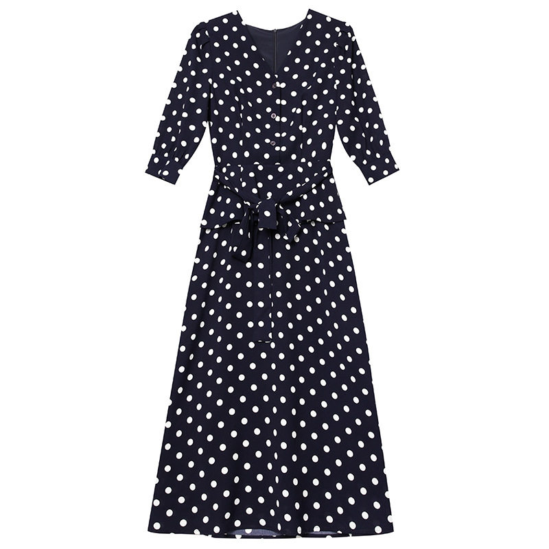 Váy liền thân nữ thu đông dáng dài tay lỡ họa tiết chấm bi là sản phẩm thuộc danh mục thời trang nữ, kiểu dáng váy đầm nữ. Mẫu Váy liền thân Nữ này có thiết kế Cổ chữ V thanh lịch, tay lỡ phù hợp thời tiết thu đông. Điểm nhấn của chiếc váy là họa tiết chấm bi trẻ trung và phần thắt eo giúp tôn dáng. Chiếc váy dáng dài này phù hợp với nhiều hoàn cảnh khác nhau, từ đi làm đến dạo phố. Đây là lựa chọn tuyệt vời cho các quý cô yêu thích phong cách thanh lịch và nữ tính. | Tên sản phẩm: Váy Liền Thân Nữ Thu Đông Dáng Dài Tay Lỡ Họa Tiết Chấm Bi Cổ chữ V Thắt Eo Màu Xanh Navy. | Mã sản phẩm: A9770 - Giá: 2410000đ. | Mã nhà sản xuất: SHDAP - G05 | Danh mục sản phẩm: Váy đầm Nữ - Váy liền thân Nữ.Hình ảnh sản phẩm