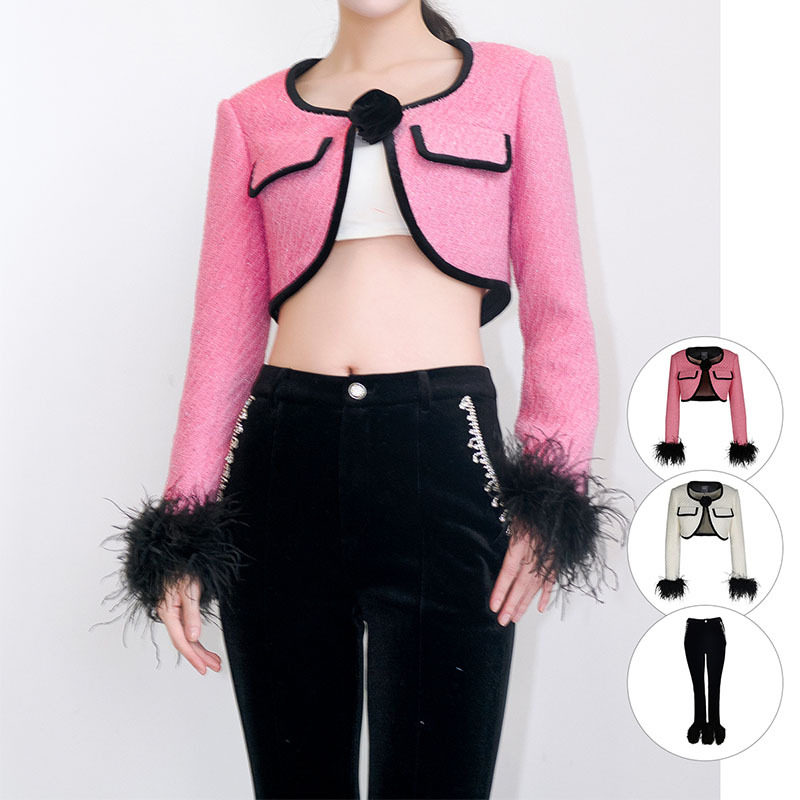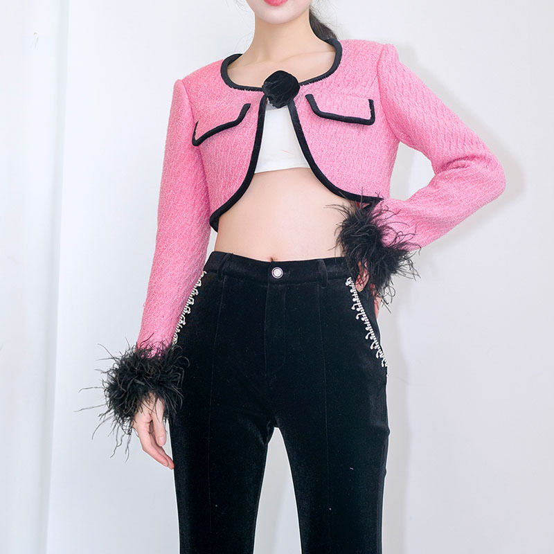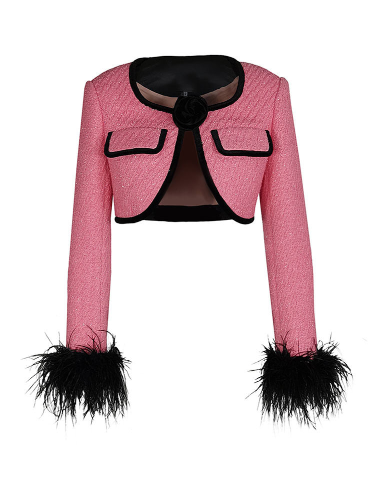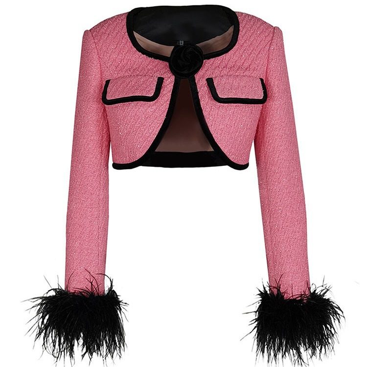 Áo khoác lửng tay lông đà điểu là sản phẩm mới nhất trong bộ sưu tập thời trang nữ. Thiết kế áo khoác nữ độc đáo với tay áo trang trí bằng lông đà điểu mềm mại, tạo điểm nhấn khác biệt. Viền áo được làm từ nhung sang trọng, kết hợp cùng chi tiết túi giả hoa hồng tinh tế. Áo khoác lửng nữ này có màu hồng chủ đạo, kết hợp viền đen nổi bật. Đây là chiếc áo khoác lửng nữ hoàn hảo cho những ai yêu thích phong cách thời trang độc đáo và quyến rũ. | Tên sản phẩm: Áo Khoác Lửng Tay Lông Đà Điểu Viền Nhung Túi Giả Hoa Hồng Thiết Kế Mới Màu Hồng, Đen. | Mã sản phẩm: B0384 - Giá: 1910000đ. | Mã nhà sản xuất: DODN - G05 | Danh mục sản phẩm: Áo khoác Nữ - Áo khoác lửng Nữ.Hình ảnh sản phẩm