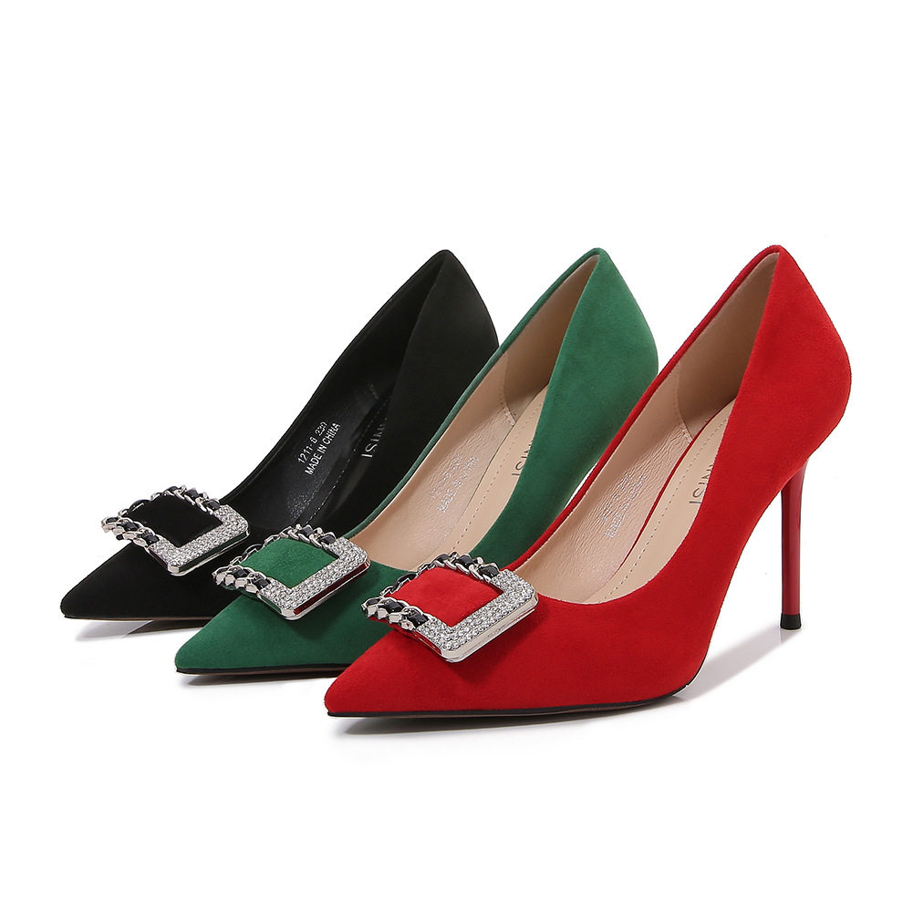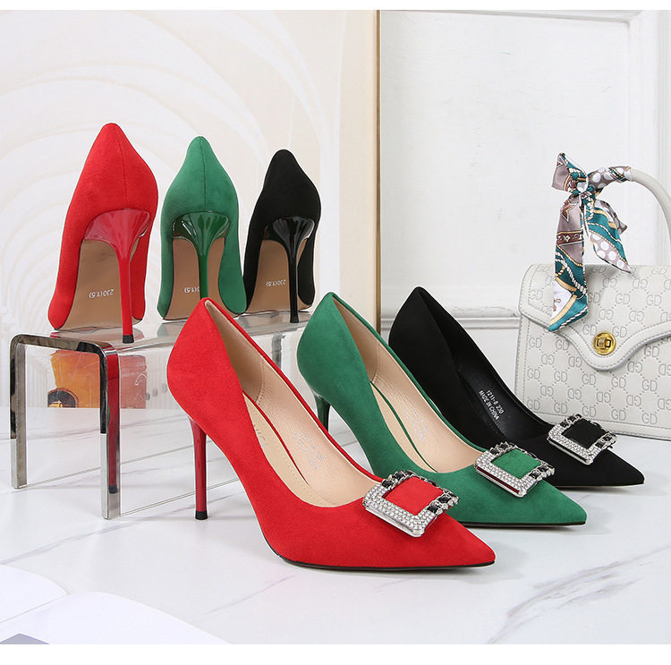 Giày cao gót nữ mũi nhọn là một sản phẩm thuộc danh mục Giày dép Nữ, kiểu dáng giày cao gót Nữ thời trang. Thiết kế mũi nhọn thanh lịch, gót nhọn tôn dáng với chiều cao đế khoảng 7cm. Điểm nhấn của đôi giày là phần quai ngang đính đá lấp lánh, tạo vẻ ngoài quyến rũ. Mẫu giày mũi nhọn Nữ này phù hợp với nhiều dịp, từ đi làm đến dự tiệc. Giày có các màu Đỏ, Đen, Xanh lá dễ phối đồ. Chắc chắn đây sẽ là một item không thể thiếu trong tủ giày của phái đẹp yêu thích sự sang trọng và quyến rũ. | Tên sản phẩm: Giày Cao Gót Nữ Mũi Nhọn Gót Nhọn Chiều Cao Đế Khoảng 7cm Đính Đá Quai Ngang Màu Đỏ, Đen, Xanh Lá. | Mã sản phẩm: B0478 - Giá: 690000đ. | Mã nhà sản xuất: MATYAL - G02 | Danh mục sản phẩm: Giày cao gót Nữ - Giày mũi nhọn Nữ.Hình ảnh sản phẩm