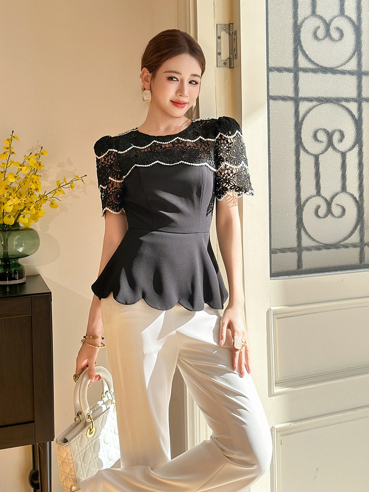 Áo kiểu nữ cổ tròn tay ngắn là sản phẩm thuộc danh mục thời trang nữ, kiểu dáng áo nữ tính và thanh lịch. Áo kiểu nữ này có thiết kế cổ tròn, tay ngắn phối ren điệu đà. Phần thân áo ôm eo, tạo dáng peplum duyên dáng. Chất liệu mềm mại, thoáng mát, mang lại cảm giác thoải mái khi mặc. Màu đen dễ phối đồ, phù hợp với nhiều phong cách khác nhau. Đây là mẫu áo kiểu nữ lý tưởng cho các cô nàng yêu thích vẻ đẹp dịu dàng. | Tên sản phẩm: Áo Kiểu Nữ Cổ Tròn Tay Ngắn Phối Ren Eo Ôm Dáng Peplum Màu Đen. | Mã sản phẩm: B0766 - Giá: 1090000đ. | Mã nhà sản xuất: CHDG - G03 | Danh mục sản phẩm: Áo Nữ - Áo kiểu Nữ.Hình ảnh sản phẩm