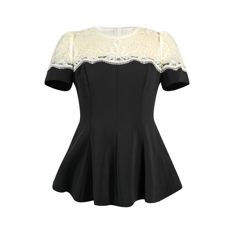 Áo kiểu nữ tay ngắn cổ tròn phối ren là sản phẩm thuộc danh mục Thời trang Nữ, kiểu dáng áo kiểu Nữ thanh lịch. Thiết kế áo cổ tròn, tay ngắn, phần thân trên phối ren trắng tinh tế, thân dưới màu đen dáng peplum giúp tôn eo. Áo kiểu nữ này phù hợp để đi làm, đi chơi, mang đến vẻ ngoài thanh lịch và sang trọng. Chất liệu vải mềm mại, thoáng mát, tạo cảm giác thoải mái khi mặc. Đây là mẫu áo kiểu nữ đáng sở hữu trong tủ đồ của bạn. | Tên sản phẩm: Áo Kiểu Nữ Tay Ngắn Cổ Tròn Phối Ren Eo Ôm Dáng Peplum Màu Đen, Trắng. | Mã sản phẩm: B0769 - Giá: 1060000đ. | Mã nhà sản xuất: CHDG - G03 | Danh mục sản phẩm: Áo Nữ - Áo kiểu Nữ.Hình ảnh sản phẩm