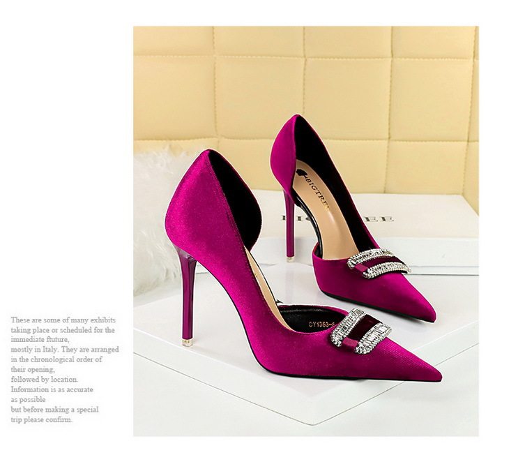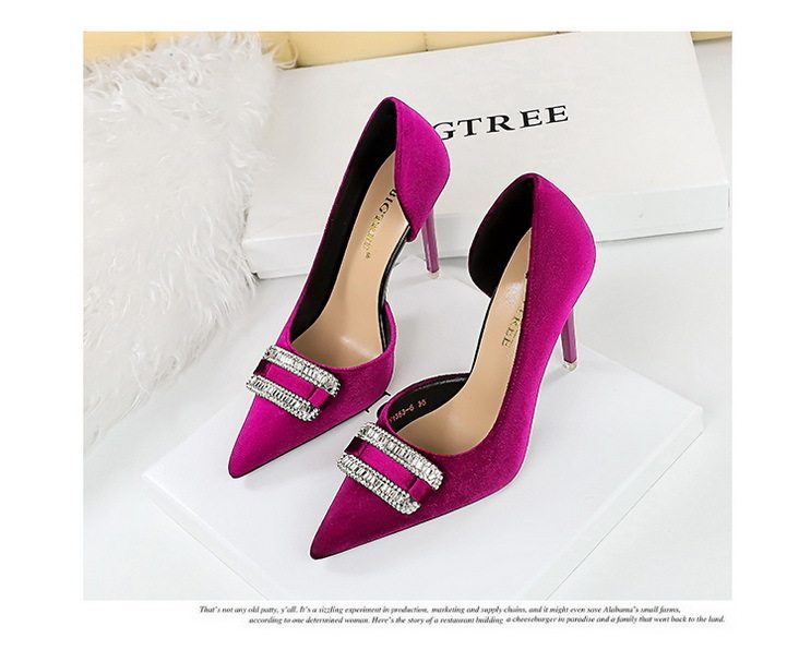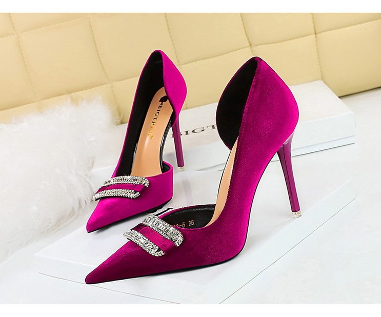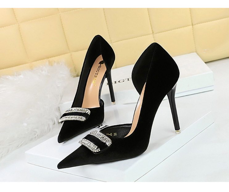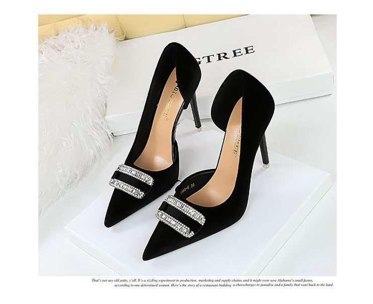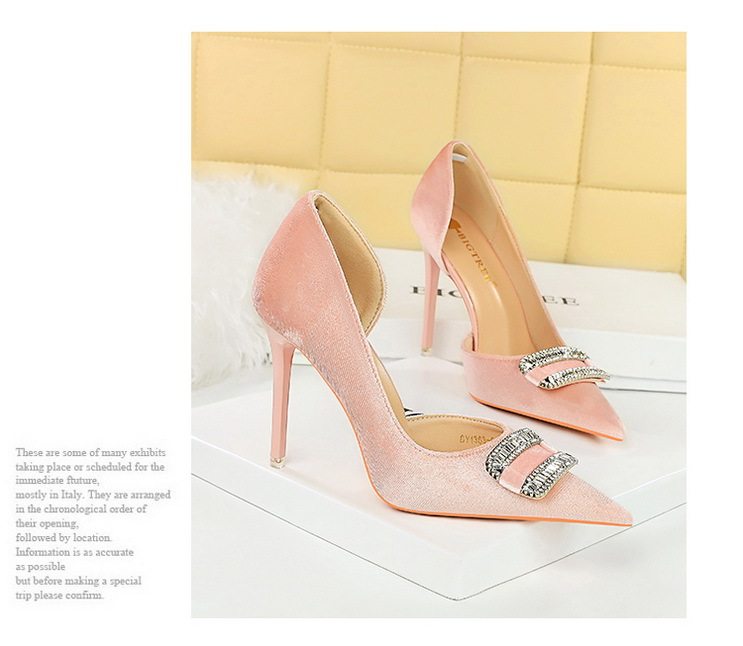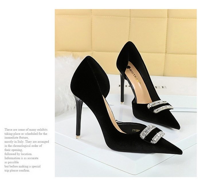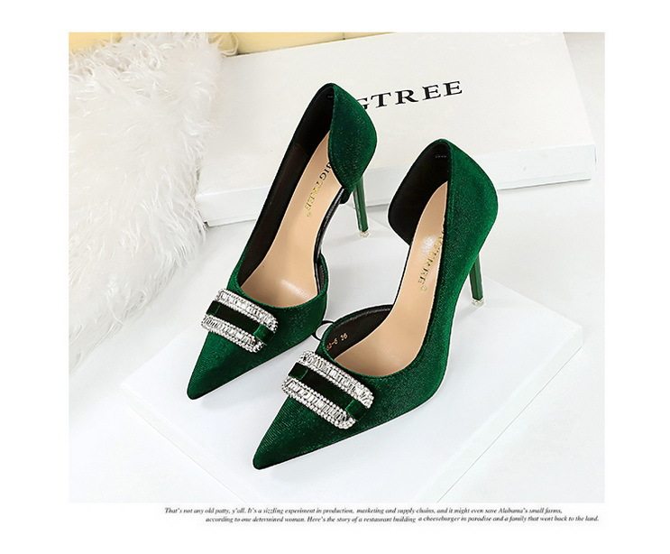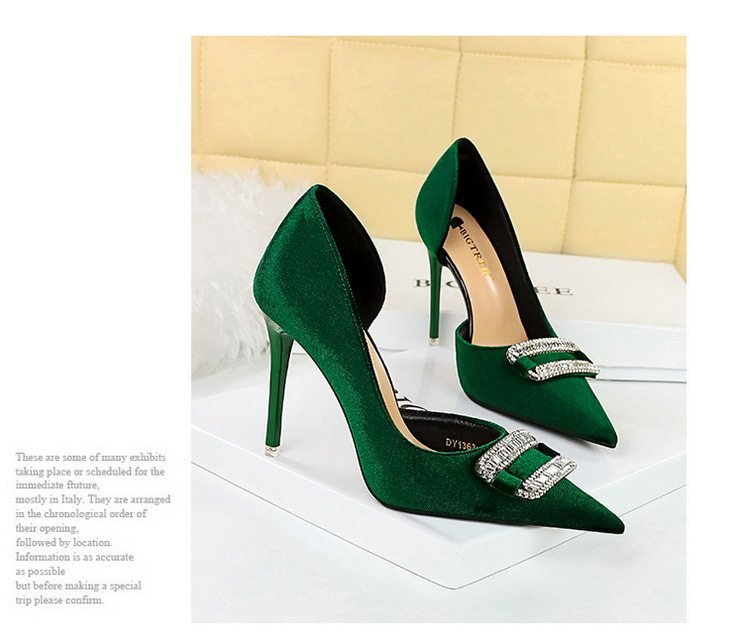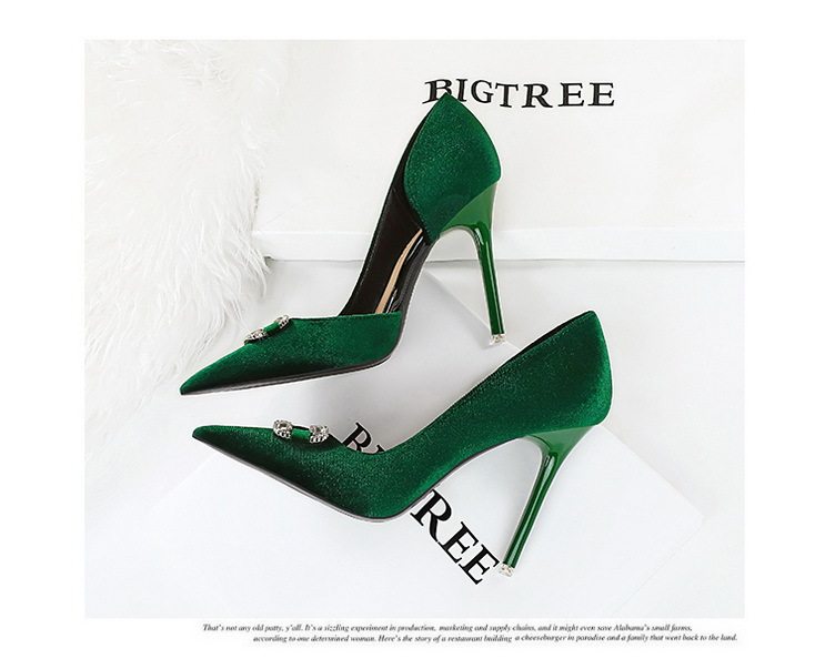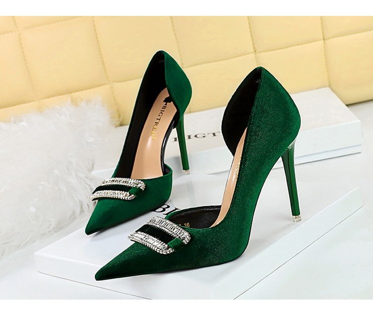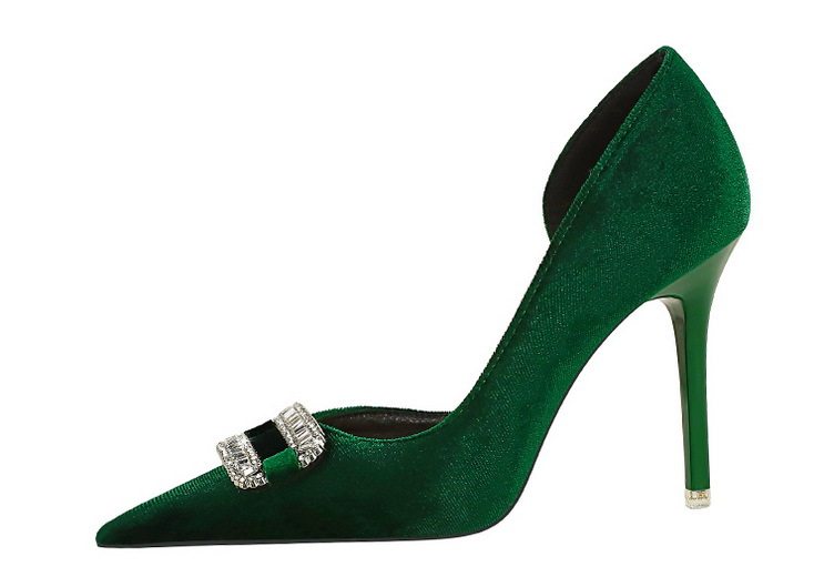 Giày Cao Gót Nữ Nỉ Mũi Nhọn Hở Bên Hông Đính Đá là sản phẩm thuộc danh mục Giày dép Nữ, kiểu dáng Giày cao gót Nữ thời trang. Sản phẩm có thiết kế mũi nhọn thanh lịch và phần hở bên hông tạo sự quyến rũ. Chất liệu nỉ mềm mại, tạo cảm giác thoải mái khi mang. Chi tiết đính đá lấp lánh tăng thêm vẻ sang trọng cho đôi giày cao gót Nữ này. Chiều cao đế khoảng 8cm giúp tôn dáng. Sản phẩm có nhiều màu sắc để lựa chọn. Đây là mẫu giày mũi nhọn Nữ lý tưởng cho những buổi tiệc hoặc sự kiện quan trọng. | Tên sản phẩm: Giày Cao Gót Nữ Nỉ Mũi Nhọn Hở Bên Hông Đính Đá Chiều Cao Đế Khoảng 8cm Màu Đen, Hồng, Xanh Lá, Tím. | Mã sản phẩm: B0923 - Giá: 700000đ. | Mã nhà sản xuất: PITYIN - G02 | Danh mục sản phẩm: Giày cao gót Nữ - Giày mũi nhọn Nữ.Hình ảnh sản phẩm