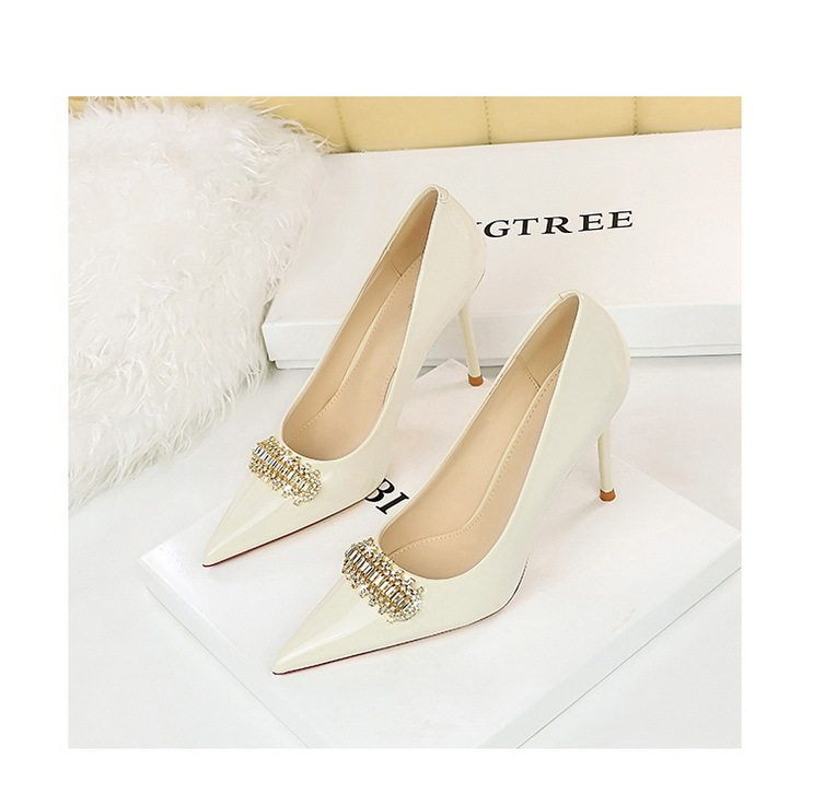 Giày Cao Gót Nữ Da Bóng Mũi Nhọn là sản phẩm thuộc danh mục Giày dép Nữ, kiểu dáng Giày cao gót Nữ quyến rũ. Thiết kế mũi nhọn giúp tôn dáng, tạo vẻ thanh lịch. Chất liệu da bóng cao cấp, dễ dàng vệ sinh và bảo quản. Chiều cao đế khoảng 8cm giúp tăng chiều cao đáng kể. Giày cao gót Nữ này có đính đá lấp lánh, tạo điểm nhấn nổi bật. Màu sắc đa dạng như đen, kem, xanh navy, trắng... phù hợp nhiều phong cách. Sản phẩm thích hợp để đi tiệc, đi làm hoặc đi chơi. Đây là một lựa chọn tuyệt vời cho những cô nàng yêu thích sự sang trọng và quyến rũ trong phân khúc Giày mũi nhọn Nữ. | Tên sản phẩm: Giày Cao Gót Nữ Da Bóng Mũi Nhọn Đính Đá Chiều Cao Đế Khoảng 8cm Màu Đen, Kem, Xanh Navy, Trắng.... | Mã sản phẩm: B0931 - Giá: 750000đ. | Mã nhà sản xuất: PITYIN - G02 | Danh mục sản phẩm: Giày cao gót Nữ - Giày mũi nhọn Nữ.Hình ảnh sản phẩm