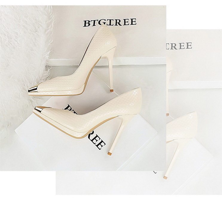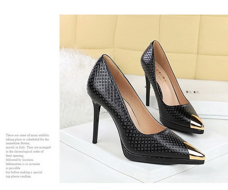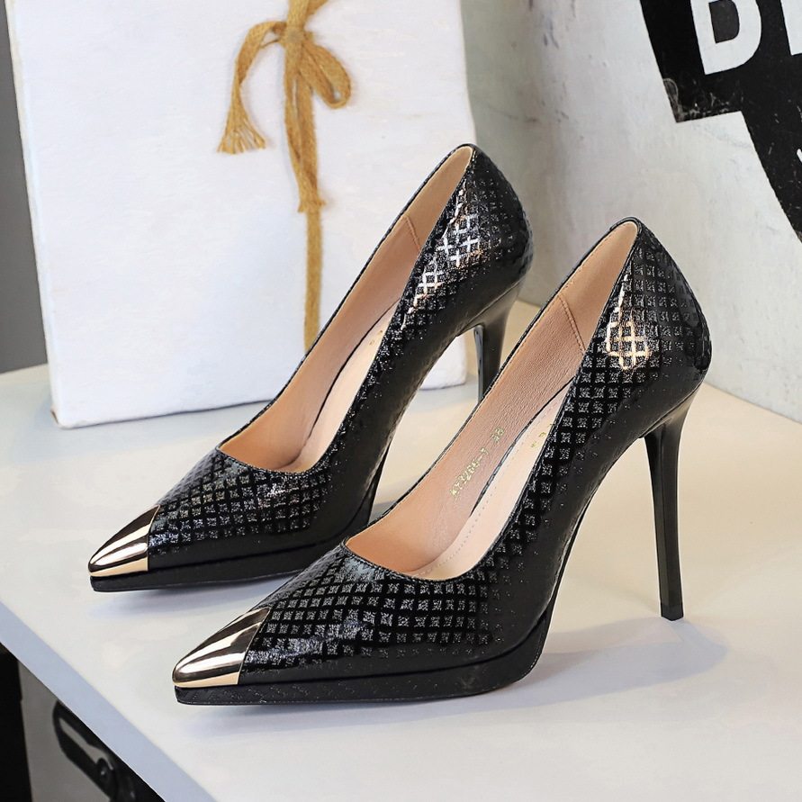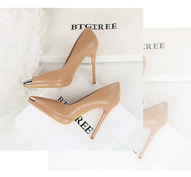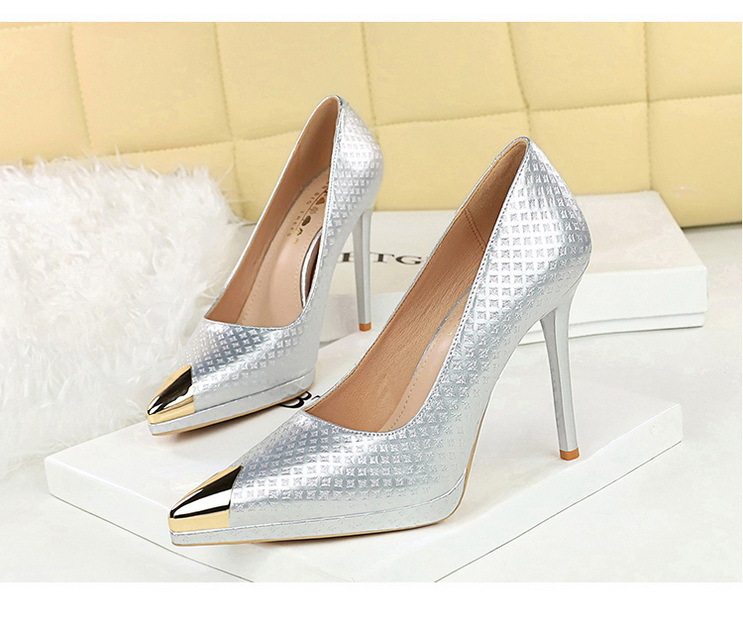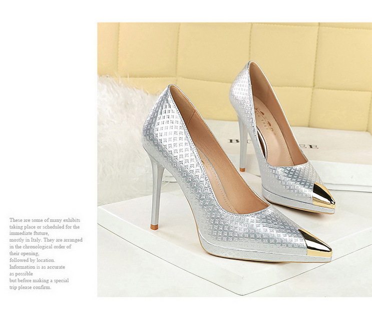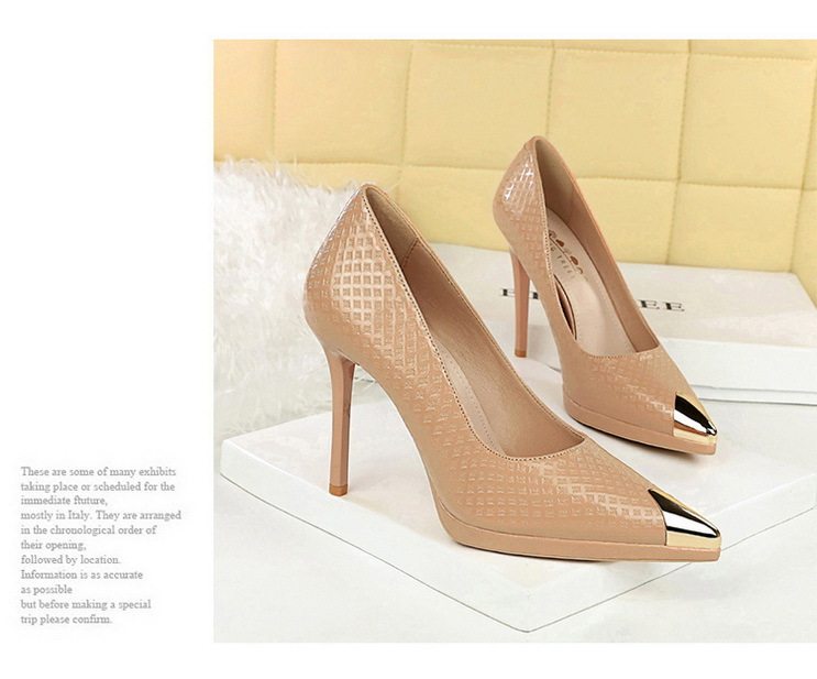 Giày cao gót nữ mũi nhọn là sản phẩm thuộc danh mục giày dép nữ, kiểu dáng giày cao gót nữ thời trang. Sản phẩm có thiết kế mũi nhọn thanh lịch, phần mũi được bọc kim loại tạo điểm nhấn. Chất liệu da bóng với họa tiết dập nổi tinh tế. Chiều cao đế khoảng 8cm, giúp tôn dáng và tạo vẻ quyến rũ. Giày cao gót nữ này phù hợp với nhiều dịp khác nhau, từ công sở đến các buổi tiệc. Sản phẩm có các màu sắc Nude, Đen, Trắng, Bạc giúp bạn dễ dàng phối đồ. Đế giày chắc chắn, đảm bảo an toàn khi di chuyển. Đây là lựa chọn hoàn hảo cho phái đẹp yêu thích phong cách sang trọng và hiện đại. | Tên sản phẩm: Giày Cao Gót Nữ Mũi Nhọn Da Bóng Chiều Cao Đế Khoảng 8cm Màu Nude, Đen, Trắng, Bạc. | Mã sản phẩm: B1089 - Giá: 710000đ. | Mã nhà sản xuất: PITYIN - G02 | Danh mục sản phẩm: Giày cao gót Nữ - Giày mũi nhọn Nữ.Hình ảnh sản phẩm