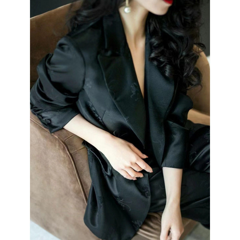 Bộ Vest Nữ Phong Cách Old Money là sản phẩm thời trang nữ cao cấp, thuộc danh mục áo vest nữ và bộ vest nữ. Bộ sản phẩm bao gồm áo blazer dáng rộng và quần ống rộng, mang đến vẻ ngoài thanh lịch và sang trọng. Chất liệu giả vải axetat jacquard tạo nên bề mặt độc đáo và bắt mắt. Với thiết kế dáng rộng thoải mái, bộ vest này phù hợp với nhiều dáng người khác nhau. Màu đen cổ điển giúp bạn dễ dàng phối đồ và tạo nên phong cách riêng. Đây là lựa chọn hoàn hảo cho những quý cô yêu thích phong cách old money. | Tên sản phẩm: Bộ Vest Nữ Phong Cách Old Money Áo Blazer Dáng Rộng Quần Ống Rộng Chất Liệu Giả Vải Axetat Jacquard Màu Đen. | Mã sản phẩm: B1134 - Giá: 3280000đ. | Mã nhà sản xuất: CHTYAI - G06 | Danh mục sản phẩm: Áo vest Nữ - Bộ vest Nữ.Hình ảnh sản phẩm