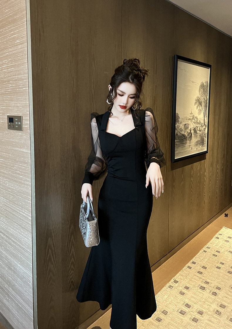 Váy Đầm Dài Nữ Cổ chữ Vuông Tay Lưới Bồng là một thiết kế Váy liền thân Nữ thanh lịch, thuộc dòng thời trang Nữ. Chiếc váy có kiểu dáng đuôi cá duyên dáng, tay áo voan lưới bồng bềnh tạo nên vẻ đẹp nữ tính và quyến rũ. Thiết kế Cổ chữ Vuông tôn lên bờ vai thon thả. Màu đen quý phái mang đến phong cách Hepburn cổ điển. Đây là mẫu Váy liền thân Nữ lý tưởng cho những buổi tiệc sang trọng hoặc các sự kiện đặc biệt. Chắc chắn đây là sự lựa chọn hoàn hảo để phái đẹp tự tin khoe vẻ đẹp của mình trong những dịp quan trọng. | Tên sản phẩm: Váy Đầm Dài Nữ Cổ chữ Vuông Tay Lưới Bồng Phong Cách Hepburn Kiểu Dáng Đuôi Cá Màu Đen. | Mã sản phẩm: B1224 - Giá: 1130000đ. | Mã nhà sản xuất: CHDG - G04 | Danh mục sản phẩm: Váy đầm Nữ - Váy liền thân Nữ.Hình ảnh sản phẩm