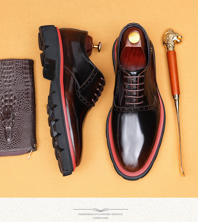 Giày Tây Buộc Dây Nam Da Bóng Brogue là sự lựa chọn hoàn hảo cho quý ông yêu thích phong cách lịch lãm. Sản phẩm thuộc dòng Giày dép Nam, đặc biệt là Giày tây Nam với thiết kế Brogue tinh tế. Chất liệu da bóng mang đến vẻ ngoài sang trọng, kết hợp cùng đường nét tỉ mỉ tạo nên đôi Giày da Nam đẳng cấp. Chiều cao đế khoảng 4cm, chất liệu đế chắc chắn giúp tăng thêm sự tự tin cho người mang. Màu sắc đen và nâu đỏ dễ dàng phối hợp với nhiều loại trang phục. Sản phẩm thể hiện gu thời trang tinh tế của phái mạnh. | Tên sản phẩm: Giày Tây Buộc Dây Nam Da Bóng Brogue Chiều Cao Đế Khoảng 4cm Màu Đen, Nâu Đỏ. | Mã sản phẩm: B1440 - Giá: 2410000đ. | Mã nhà sản xuất: SHDAP - G05 | Danh mục sản phẩm: Giày tây Nam - Giày da Nam.Hình ảnh sản phẩm
