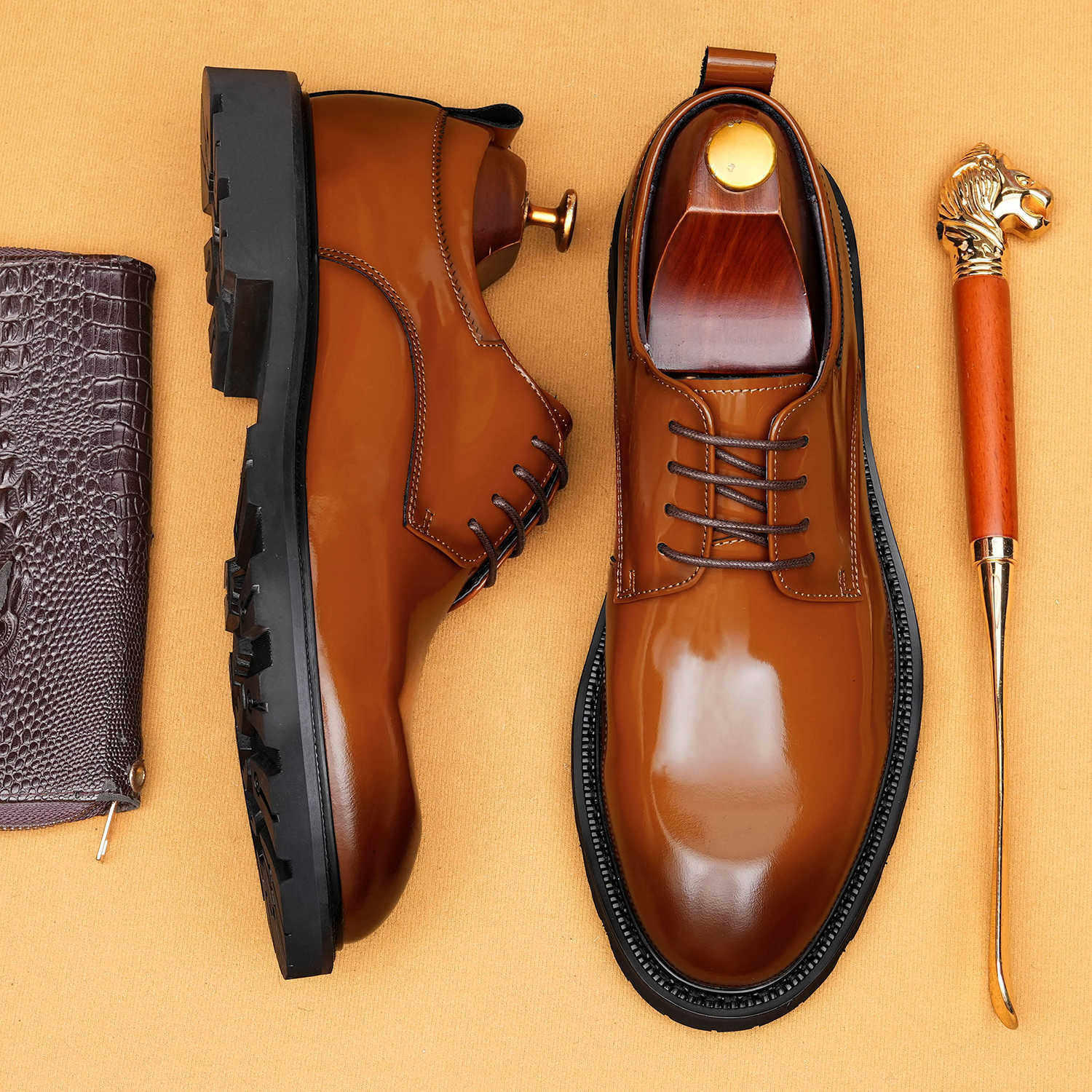 Giày Tây Buộc Dây Nam Da Bóng là sản phẩm thuộc danh mục Giày dép Nam, kiểu dáng Giày tây Nam lịch lãm. Sản phẩm làm từ da bóng, đế cao khoảng 3cm bằng cao su bền bỉ. Giày da Nam có thiết kế đơn giản, hiện đại, phù hợp với nhiều dịp khác nhau. Màu sắc Đen và Nâu dễ phối đồ. Form giày ôm chân, mang lại cảm giác thoải mái. Đây là lựa chọn tuyệt vời trong dòng Giày tây Nam, tôn lên vẻ nam tính cho phái mạnh. | Tên sản phẩm: Giày Tây Buộc Dây Nam Da Bóng Chiều Cao Đế Khoảng 3cm Màu Đen, Nâu. | Mã sản phẩm: B1569 - Giá: 2410000đ. | Mã nhà sản xuất: SHERAW - G05 | Danh mục sản phẩm: Giày tây Nam - Giày da Nam.Hình ảnh sản phẩm