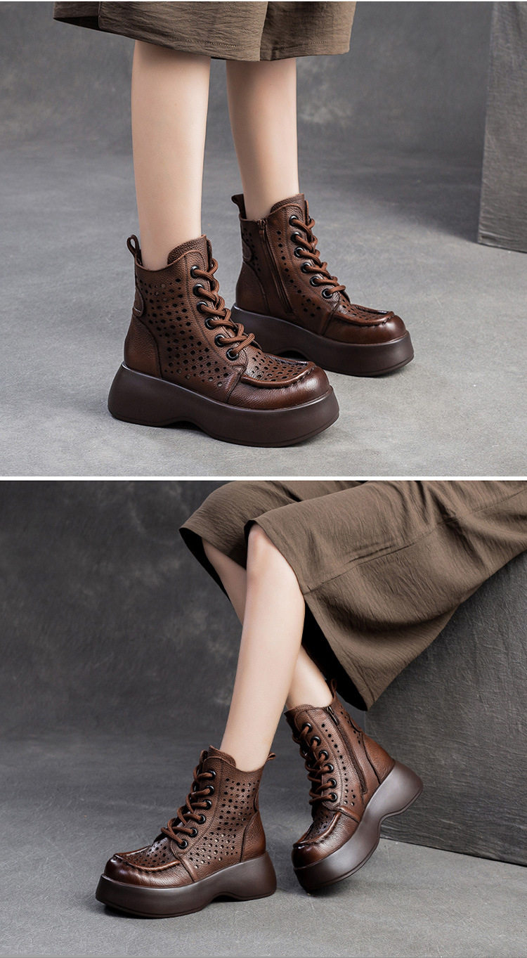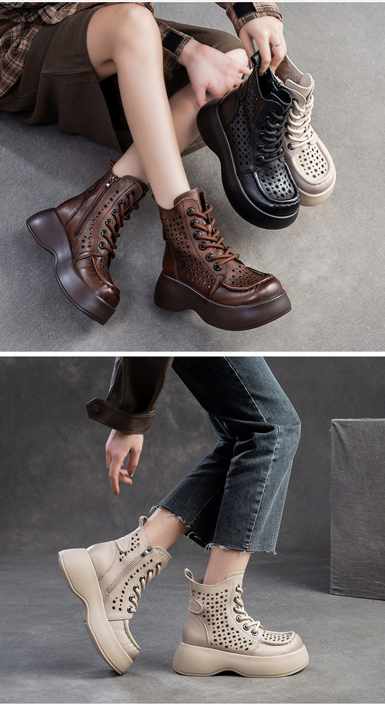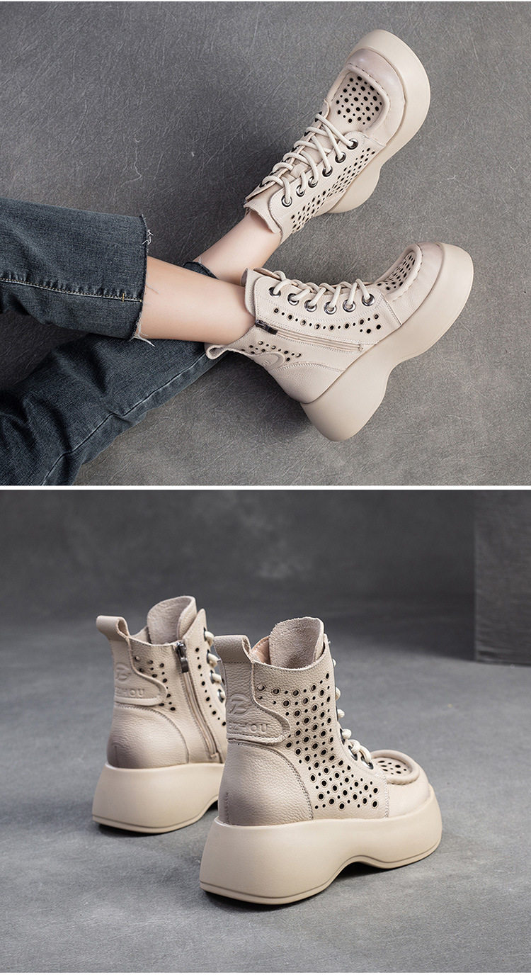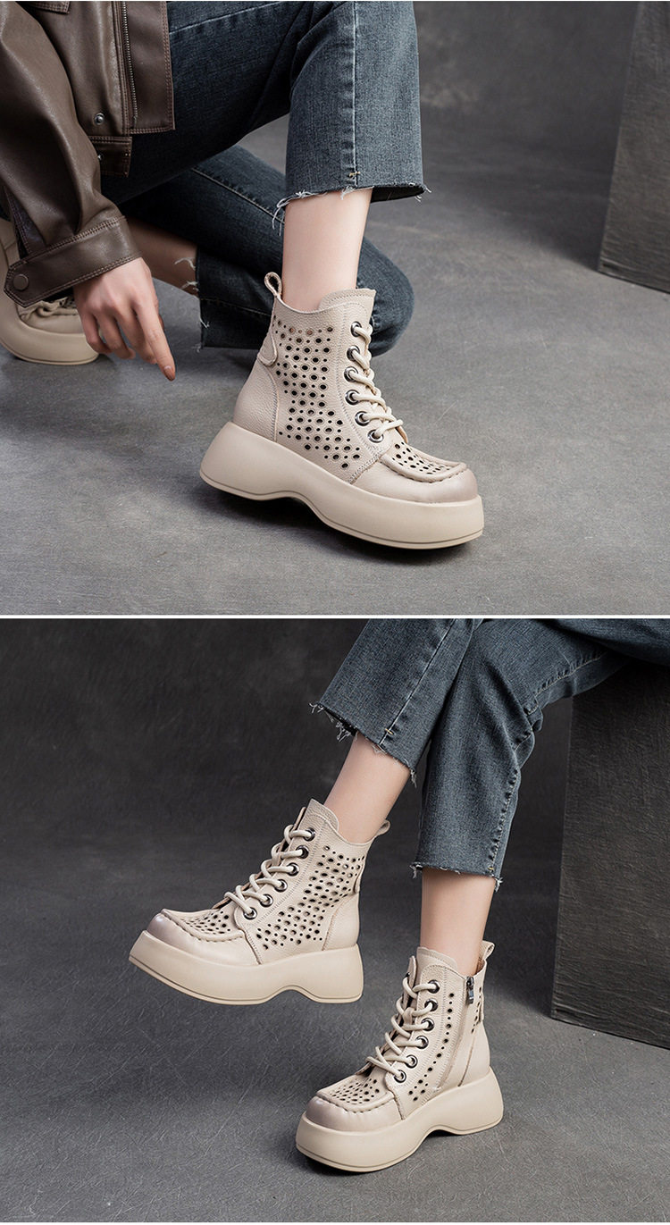 Boot Nữ cổ cao họa tiết lỗ thoáng khí là sản phẩm thuộc danh mục Giày dép Nữ, kiểu dáng Boot Nữ thời trang. Thiết kế cổ cao với họa tiết lỗ tạo sự thoáng khí, mang đến vẻ ngoài thanh lịch và hiện đại. Mẫu Boot Cổ Cao Nữ này có chiều cao đế khoảng 5cm, phù hợp với nhiều phong cách khác nhau. Chất liệu bề mặt mềm mại, đế giày chắc chắn. Sản phẩm có các màu Nâu, Đen, Kem dễ phối đồ. Boot Nữ cổ cao họa tiết lỗ thoáng khí là lựa chọn hoàn hảo cho các nàng yêu thích sự thoải mái và phong cách. | Tên sản phẩm: Boot Nữ Cổ Cao Họa Tiết Lỗ Thoáng Khí Chiều Cao Đế Khoảng 5cm Màu Nâu, Đen, Kem. | Mã sản phẩm: B2042 - Giá: 1710000đ. | Mã nhà sản xuất: SHDU - G05 | Danh mục sản phẩm: Boot Nữ - Boot Cổ Cao Nữ.Hình ảnh sản phẩm
