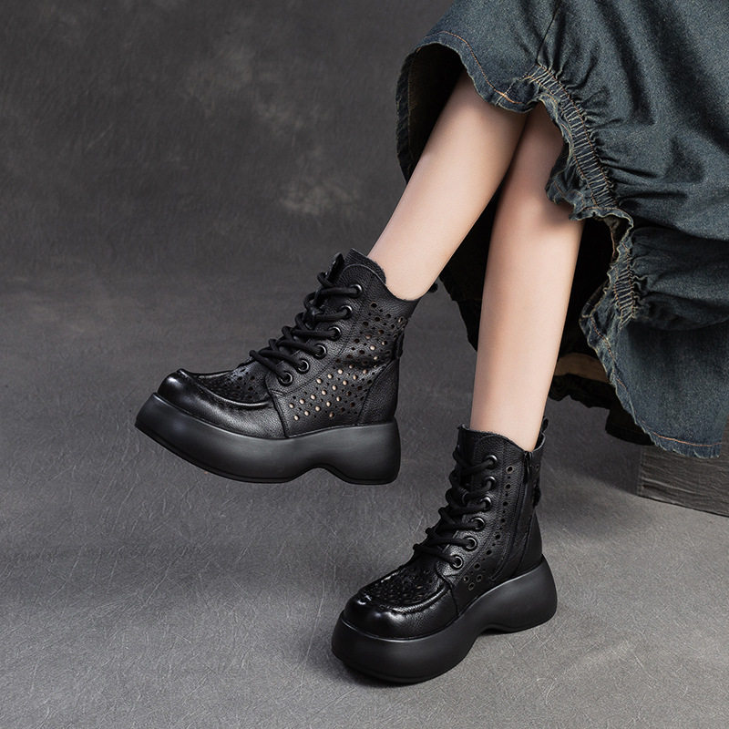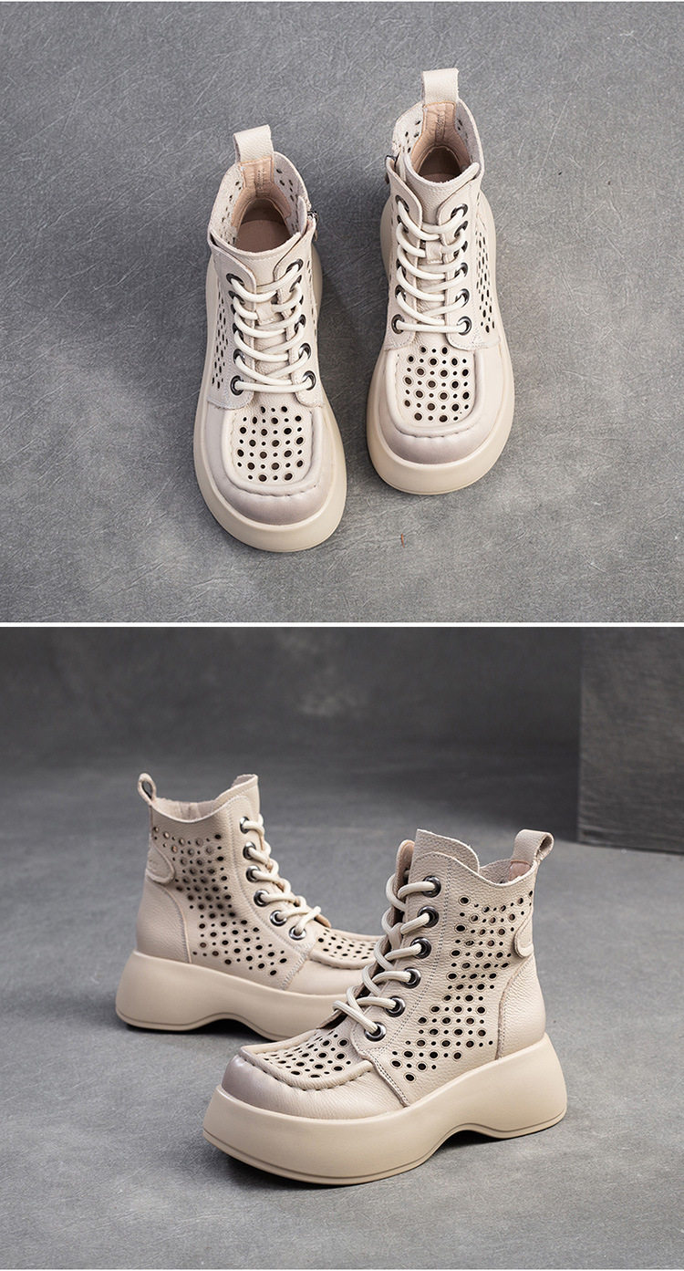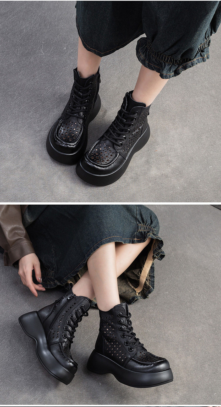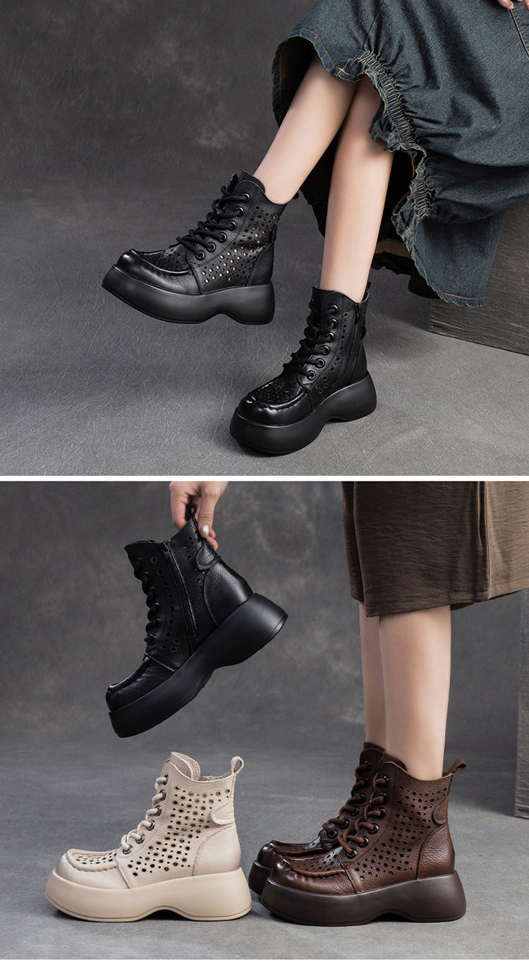 Boot Nữ cổ cao họa tiết lỗ thoáng khí là sản phẩm thuộc danh mục Giày dép Nữ, kiểu dáng Boot Nữ thời trang. Thiết kế cổ cao với họa tiết lỗ tạo sự thoáng khí, mang đến vẻ ngoài thanh lịch và hiện đại. Mẫu Boot Cổ Cao Nữ này có chiều cao đế khoảng 5cm, phù hợp với nhiều phong cách khác nhau. Chất liệu bề mặt mềm mại, đế giày chắc chắn. Sản phẩm có các màu Nâu, Đen, Kem dễ phối đồ. Boot Nữ cổ cao họa tiết lỗ thoáng khí là lựa chọn hoàn hảo cho các nàng yêu thích sự thoải mái và phong cách. | Tên sản phẩm: Boot Nữ Cổ Cao Họa Tiết Lỗ Thoáng Khí Chiều Cao Đế Khoảng 5cm Màu Nâu, Đen, Kem. | Mã sản phẩm: B2042 - Giá: 1710000đ. | Mã nhà sản xuất: SHDU - G05 | Danh mục sản phẩm: Boot Nữ - Boot Cổ Cao Nữ.Hình ảnh sản phẩm