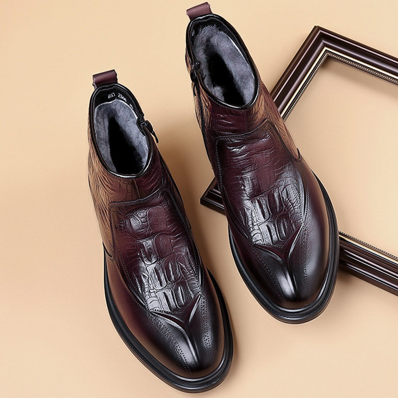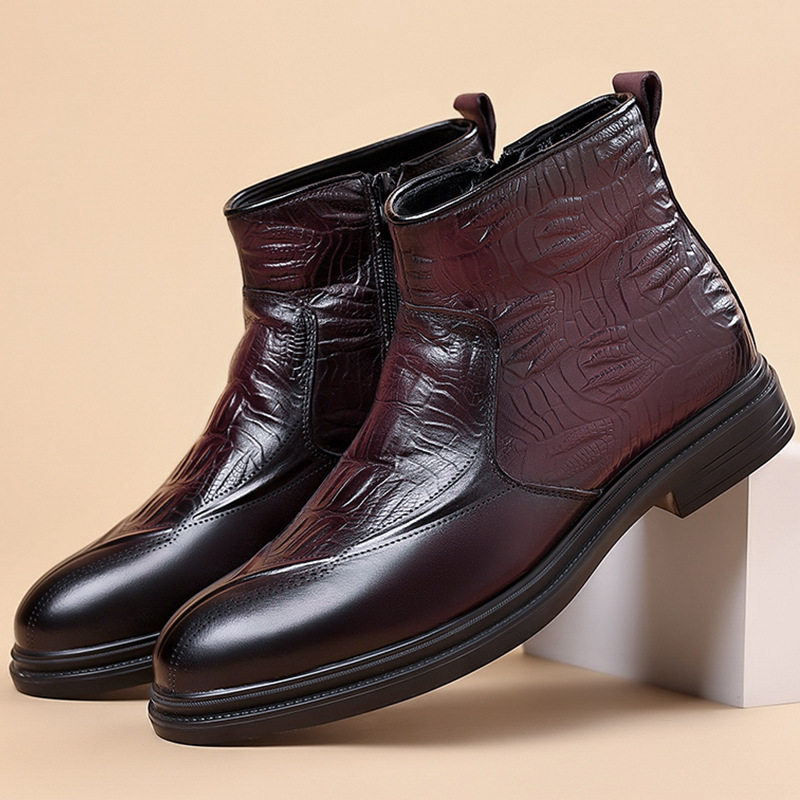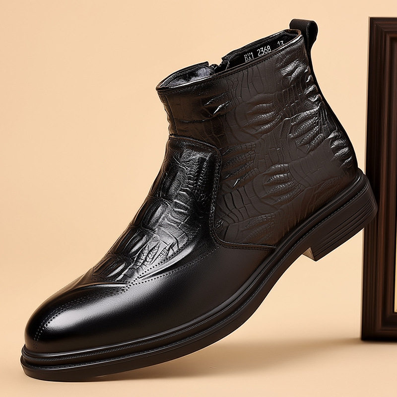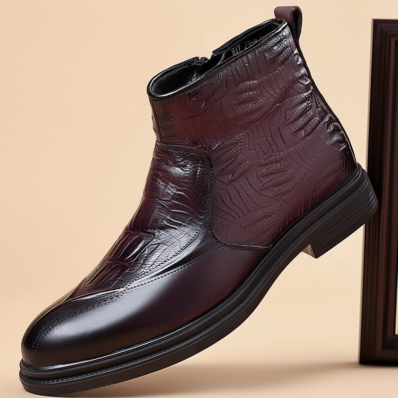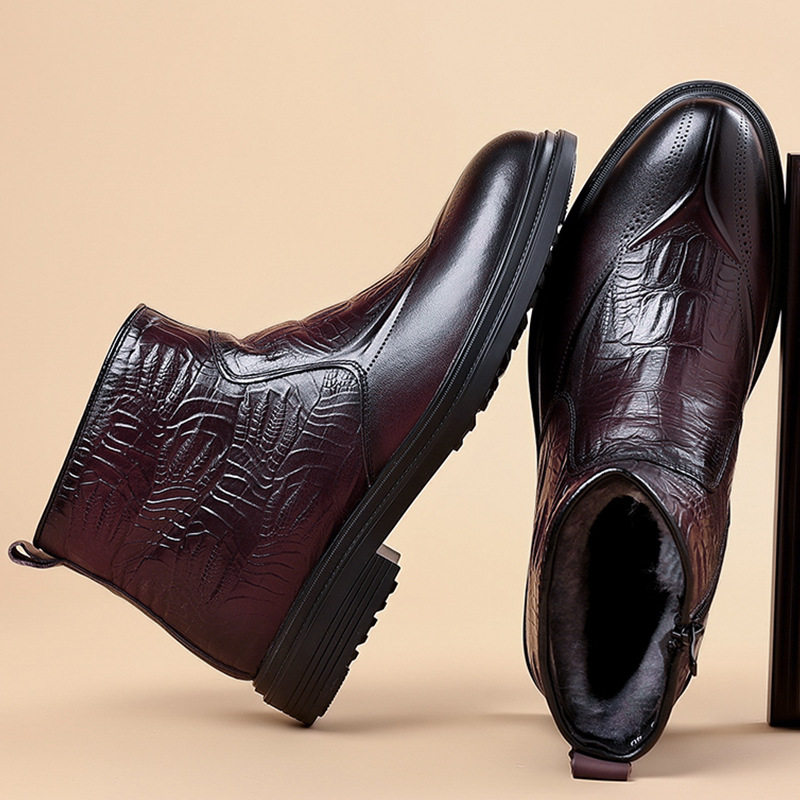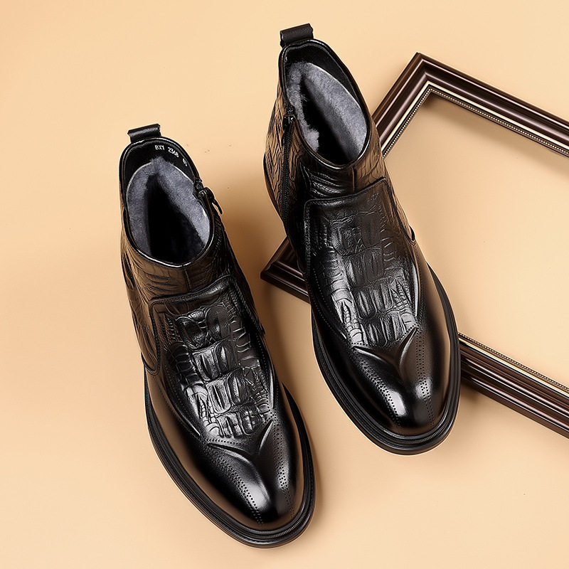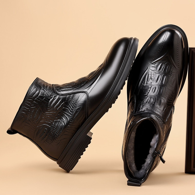Boot Martin Nam Da Bò Lớp Đầu là sản phẩm thuộc danh mục Giày dép Nam, kiểu dáng Boot Nam cao cổ thời trang. Sản phẩm được làm từ da bò lớp đầu chất lượng cao, lót lông cừu giữ ấm. Mẫu boot da Nam này có thiết kế khóa kéo bên hông tiện lợi, chiều cao cổ 16cm, chiều cao đế khoảng 3cm. Boot da nam có hai màu Đen và Đỏ rượu sang trọng, phù hợp với nhiều phong cách khác nhau. Đây là lựa chọn tuyệt vời trong phân khúc boot nam cho những ai yêu thích sự thoải mái và ấm áp. | Tên sản phẩm: Boot Martin Nam Da Bò Lớp Đầu Lót Lông Cừu Cao Cổ Chiều Cao Đế Khoảng 3cm Màu Đen, Đỏ Rượu. | Mã sản phẩm: B2562 - Giá: 1350000đ. | Mã nhà sản xuất: WED-C - G04 | Danh mục sản phẩm: Boot Nam - Boot da Nam.Hình ảnh sản phẩm