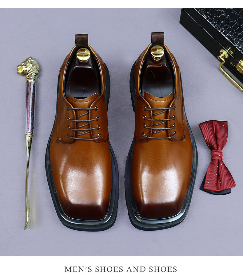 Giày Tây Buộc Dây Nam Da Thật là lựa chọn hoàn hảo cho các quý ông yêu thích phong cách lịch lãm. Sản phẩm thuộc danh mục Giày dép Nam, kiểu dáng Giày tây Nam với thiết kế đậm chất Anh Quốc. Giày da Nam được làm từ da thật cao cấp, bề mặt da bóng sang trọng. Chiều cao đế khoảng 4cm giúp tăng thêm sự tự tin cho người mang. Màu sắc Nâu và Đen dễ dàng phối hợp với nhiều loại trang phục. Đế giày làm từ cao su chống trơn trượt, mang lại cảm giác thoải mái khi di chuyển. Sản phẩm không thể thiếu trong tủ đồ của phái mạnh. | Tên sản phẩm: Giày Tây Buộc Dây Nam Da Thật Chiều Cao Đế Khoảng 4cm Phong Cách Anh Quốc Màu Nâu, Đen. | Mã sản phẩm: B2870 - Giá: 2450000đ. | Mã nhà sản xuất: ASTYCH - G05 | Danh mục sản phẩm: Giày tây Nam - Giày da Nam.Hình ảnh sản phẩm